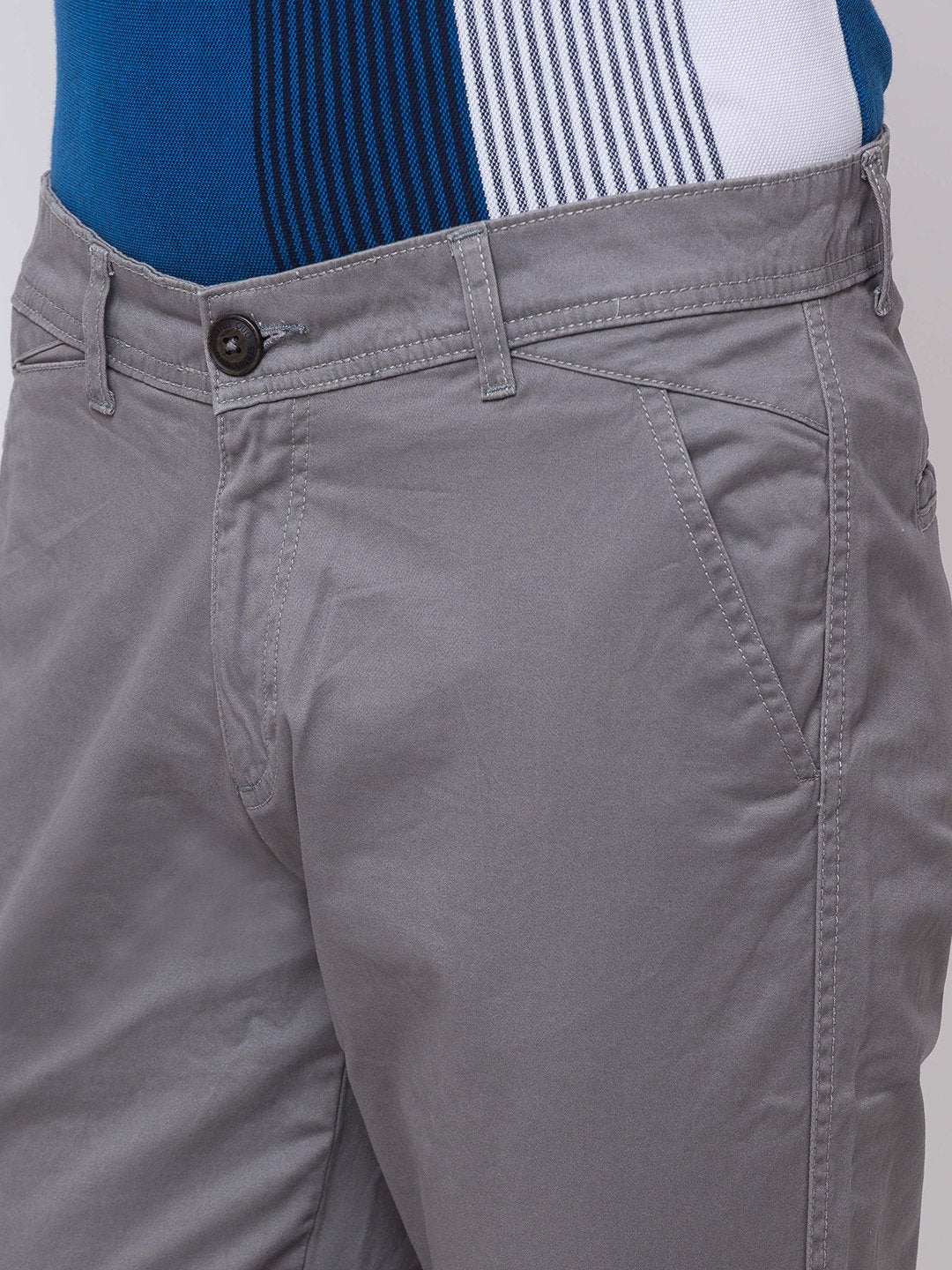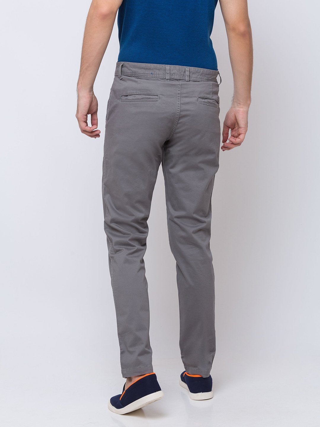 Grey Solid Open Bottom Trousers has a Cross Pockets On Both Sides, Button Opening With Zipper .