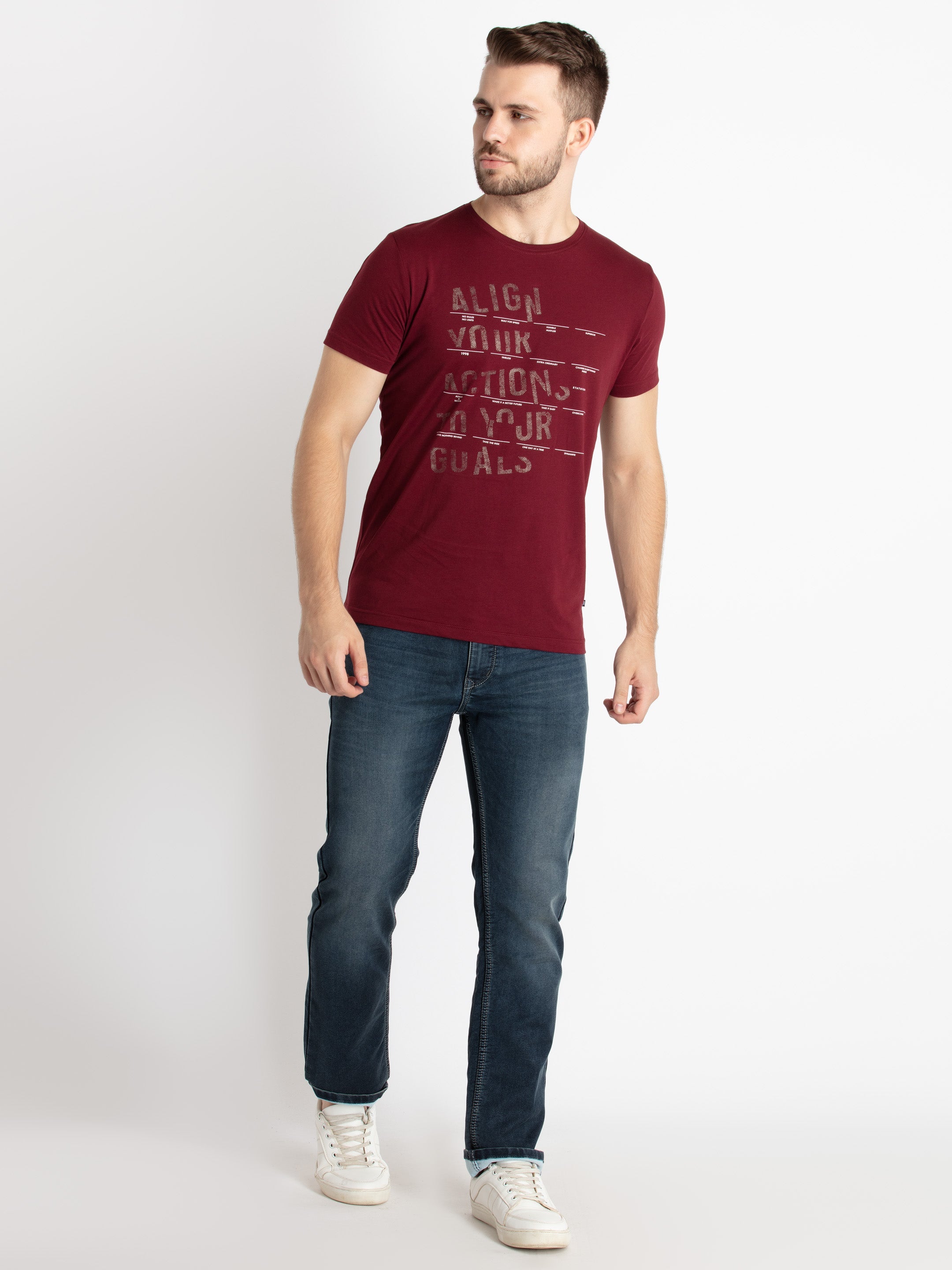 WINE Printed T-Shirt Has Round Neck, Half Sleeves