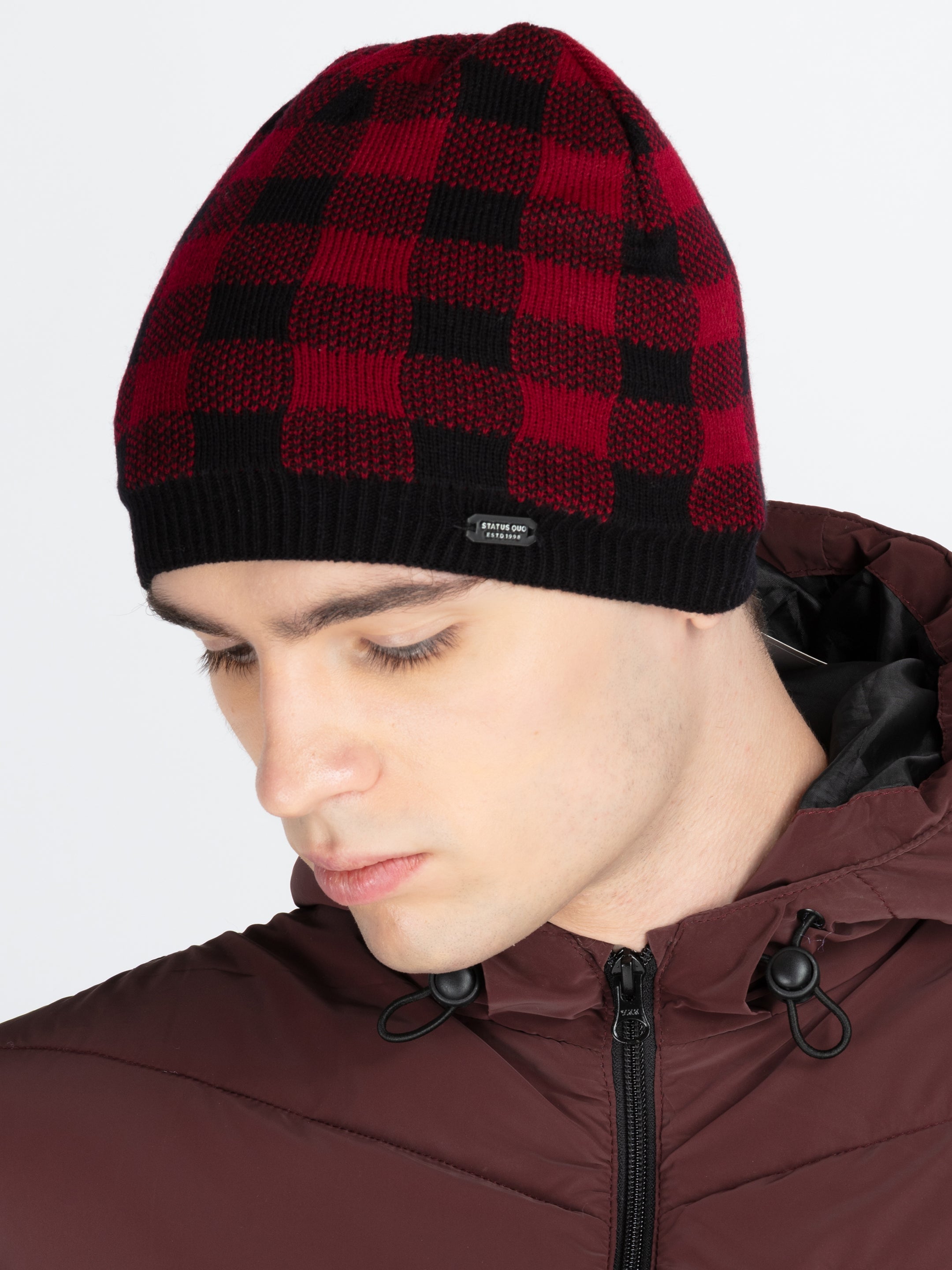 Red/Black Mens Acrylic Winter Caps