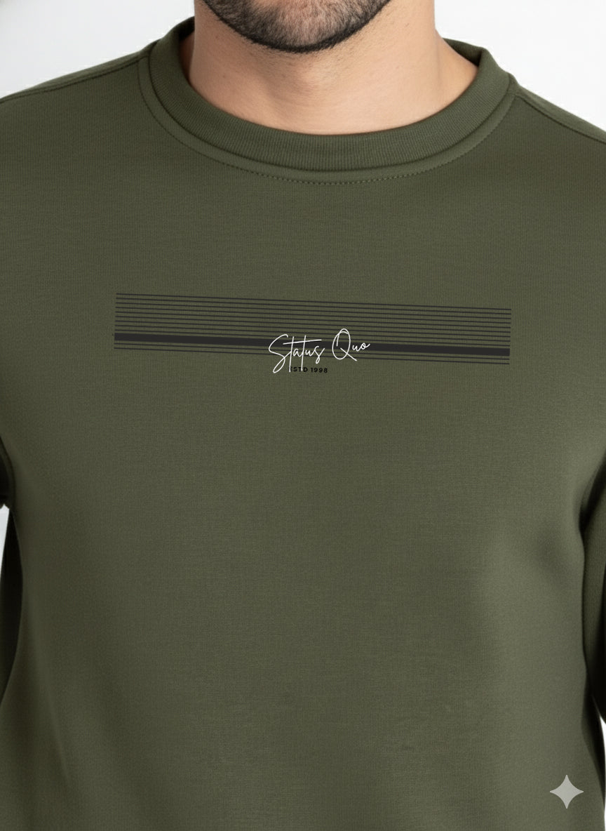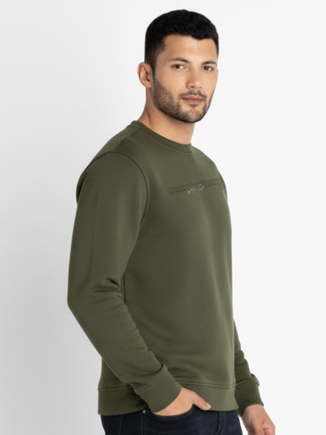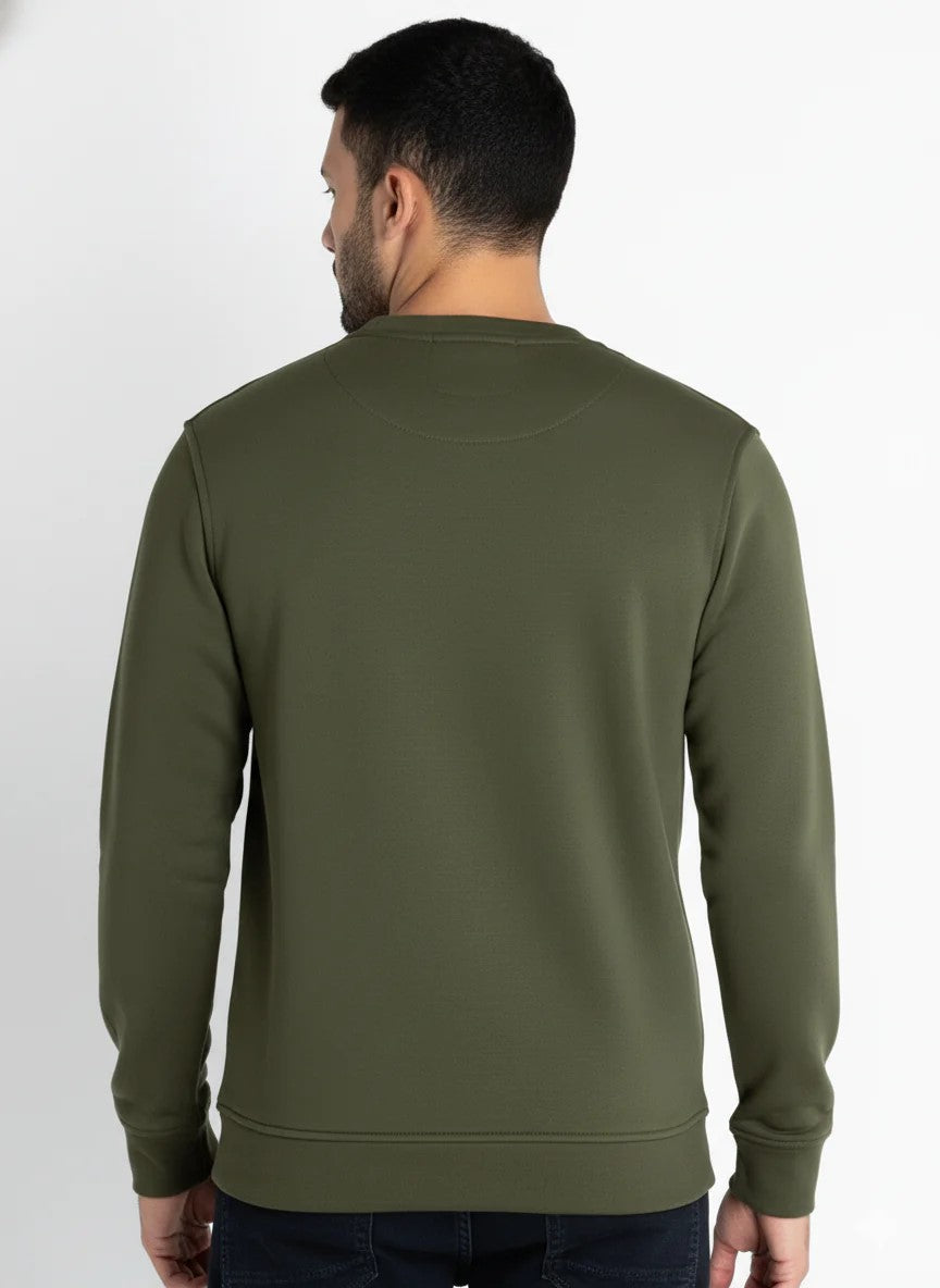Olive Men's Typography Print Round Neck Full Sleeves Fleece Sweatshirt