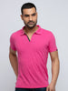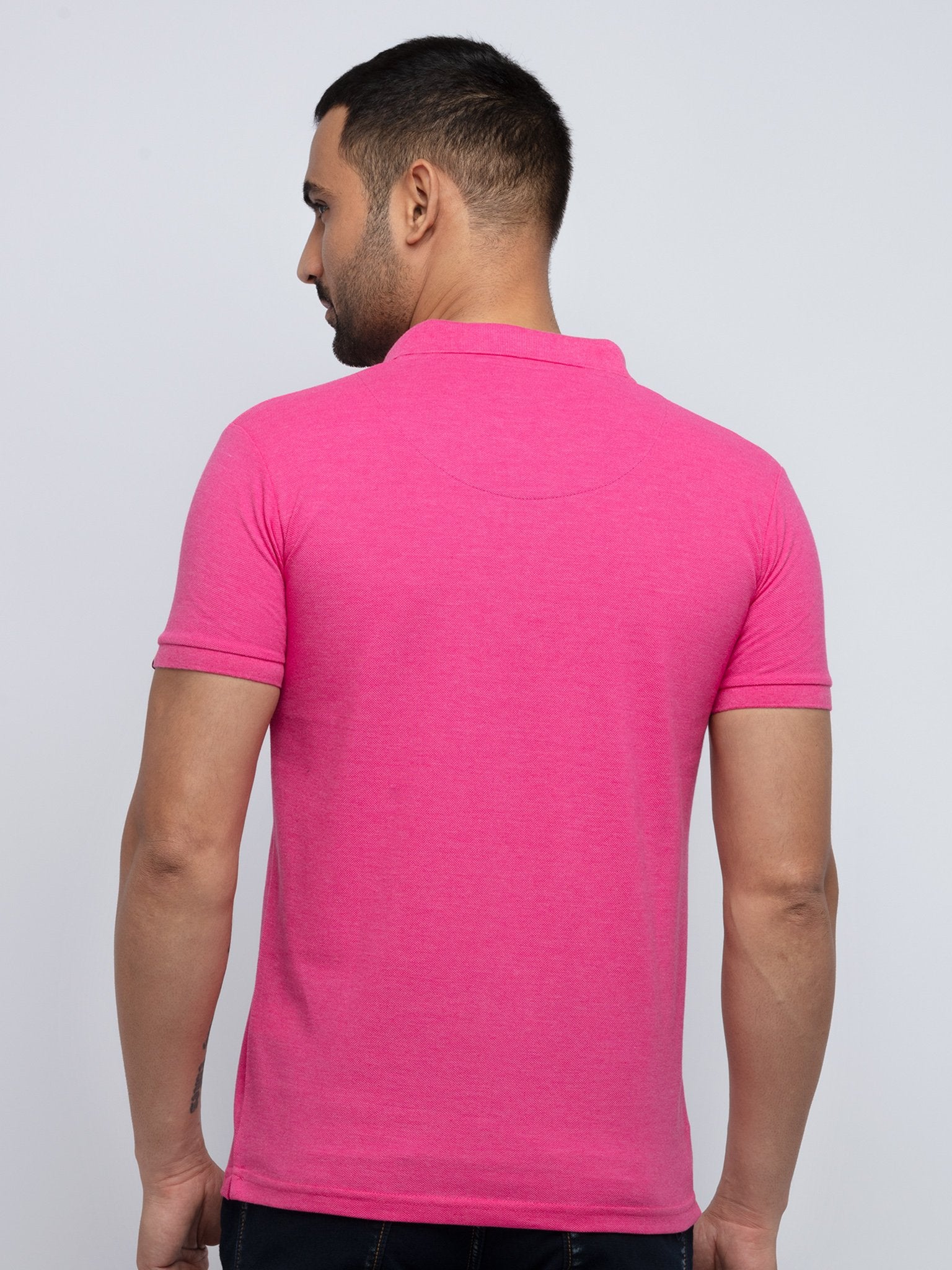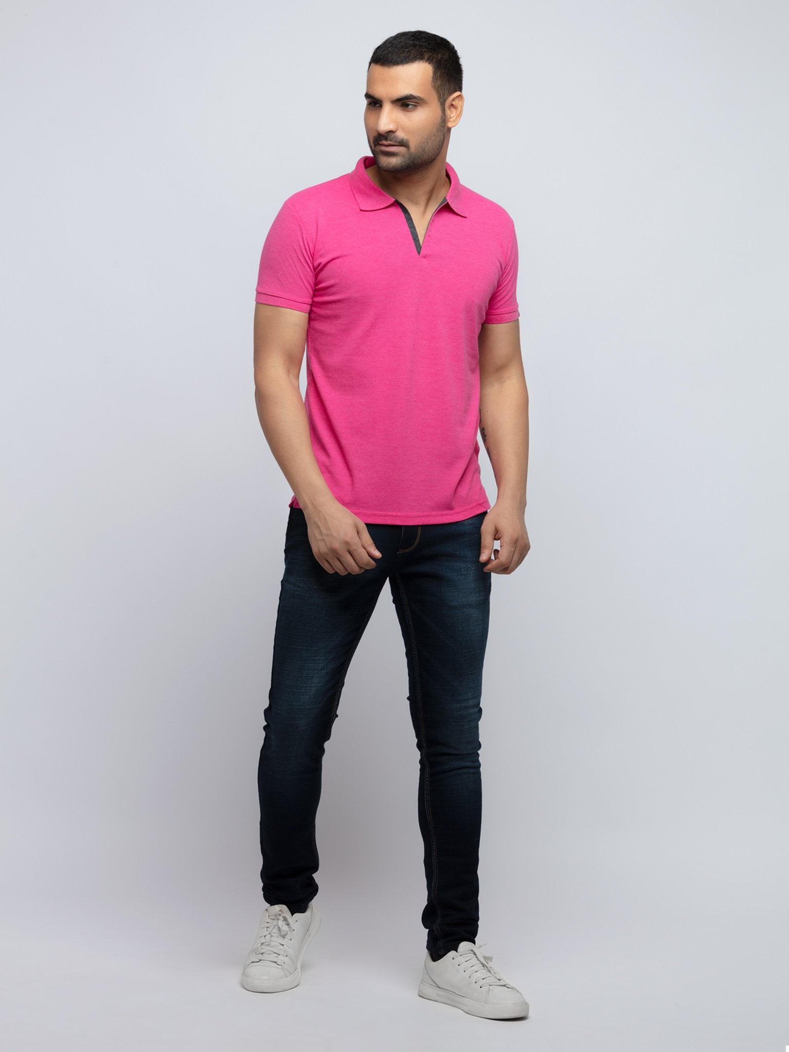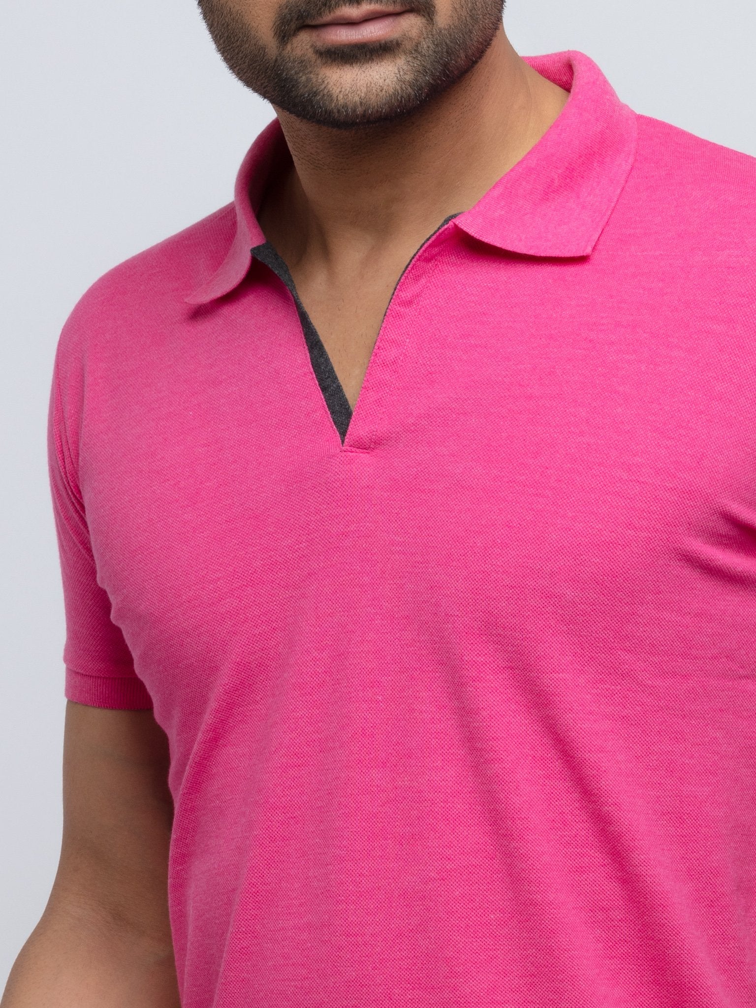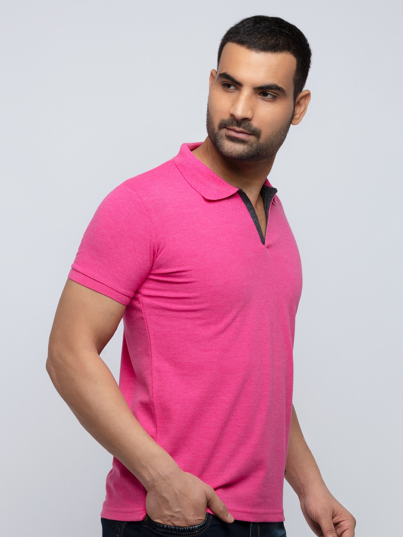 PINK MEL solid T-shirt, has a polo collar, short sleeves.