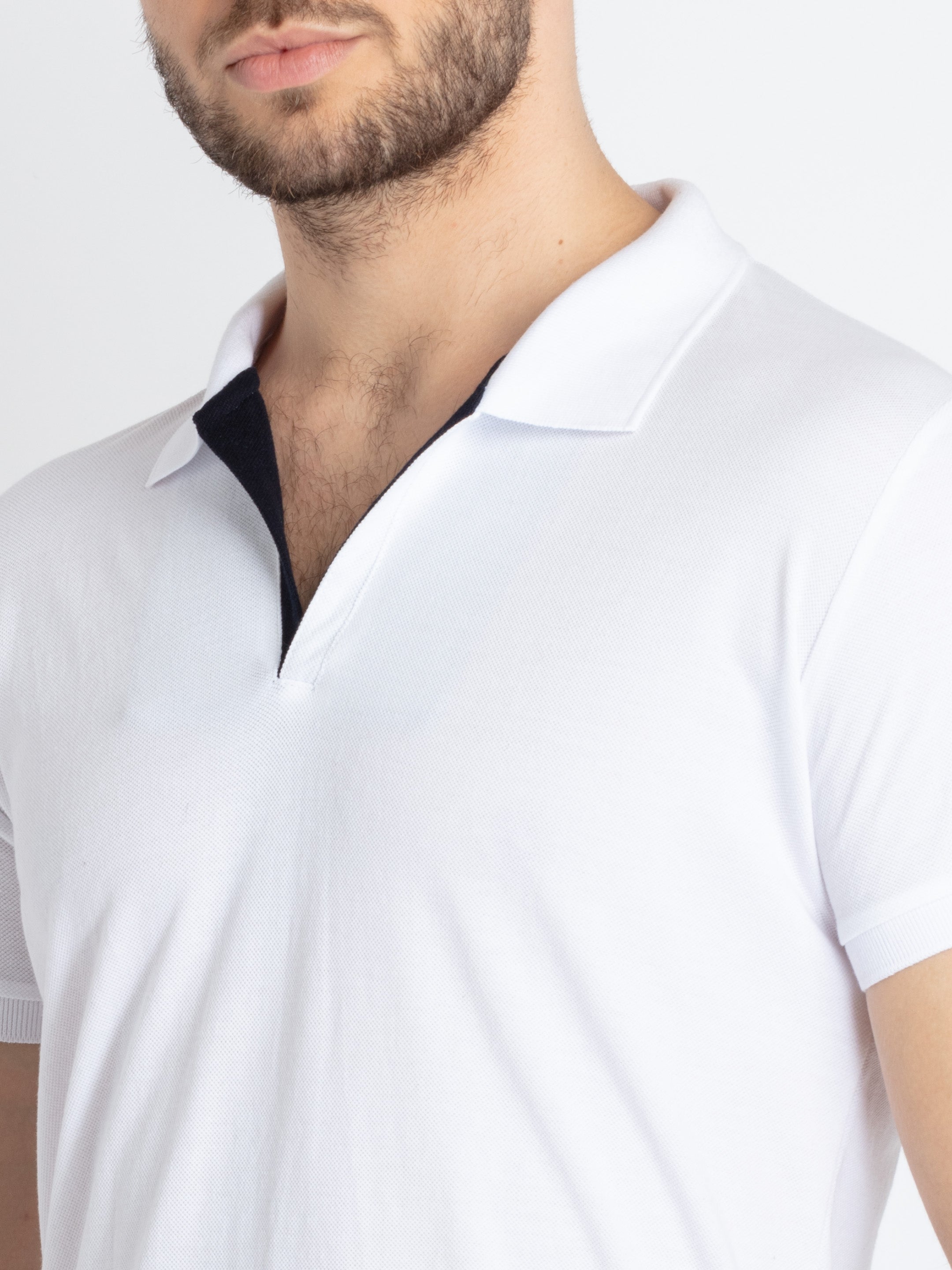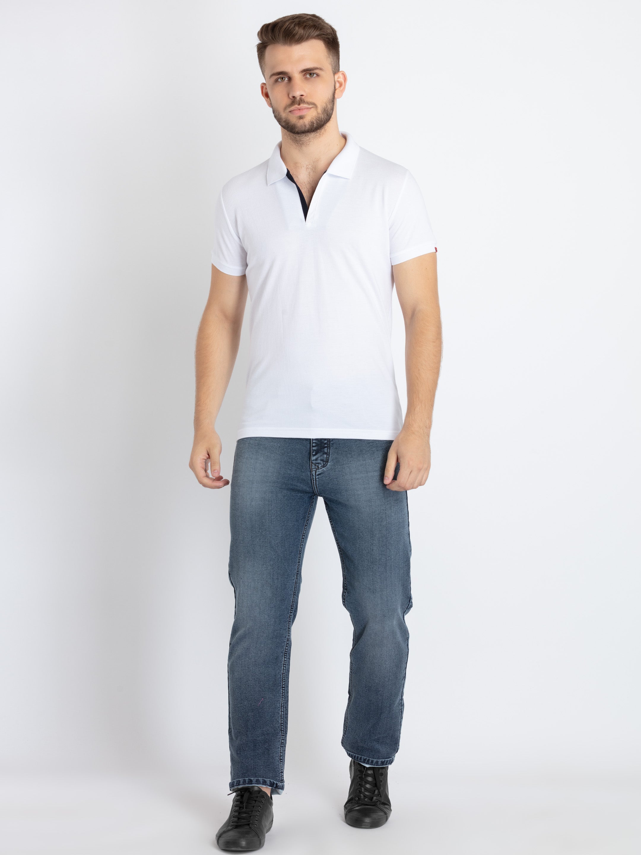 WHITE Mens Solid Half Sleeves Slim Fit Polo T-Shirt