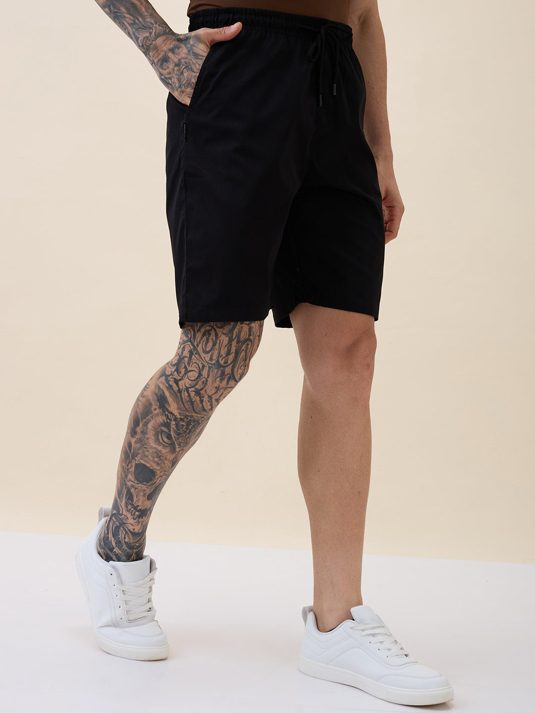 BLACK Men's Solid Basic Regular Fit Drawstring Shorts