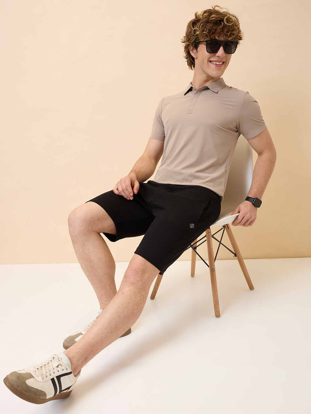 BLACK Men's Solid Regular Fit Drawstring Shorts