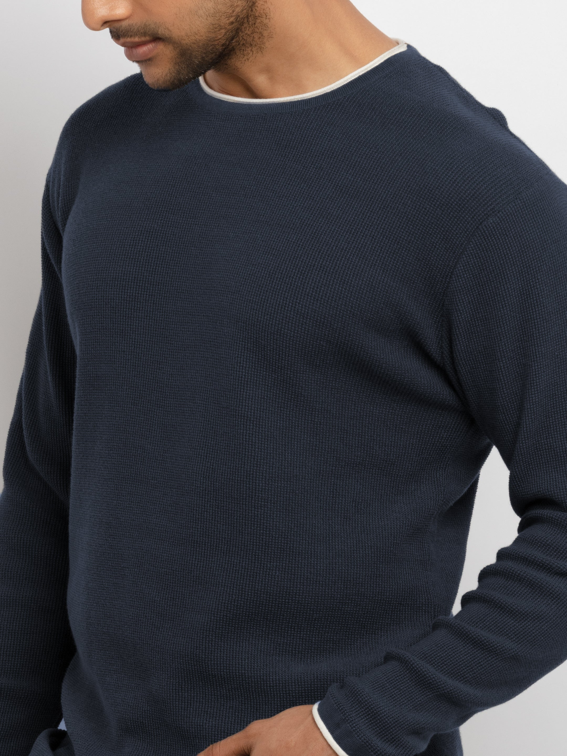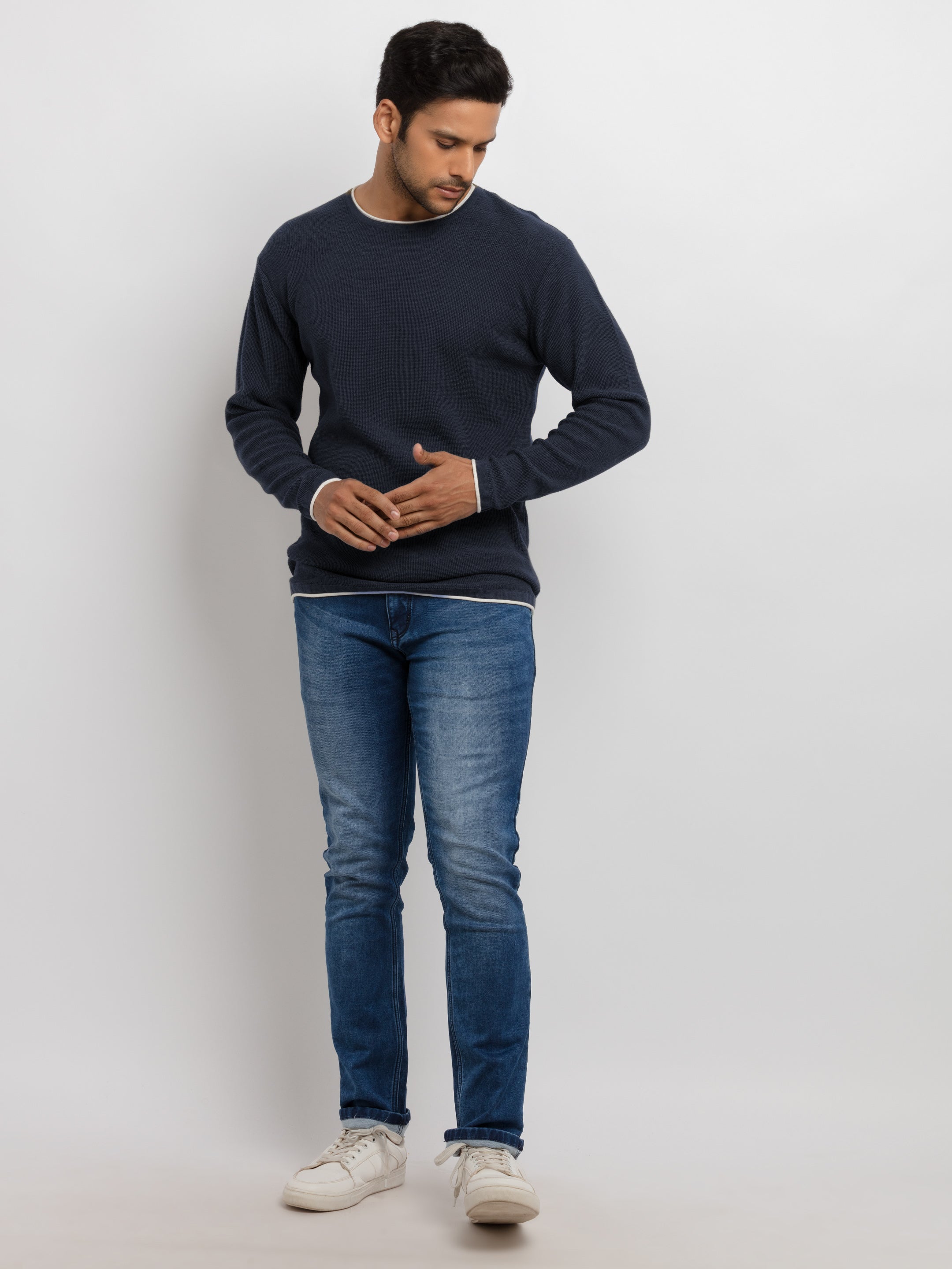 NAVY Solid Sweater Has Round Neck, Full Sleeves.