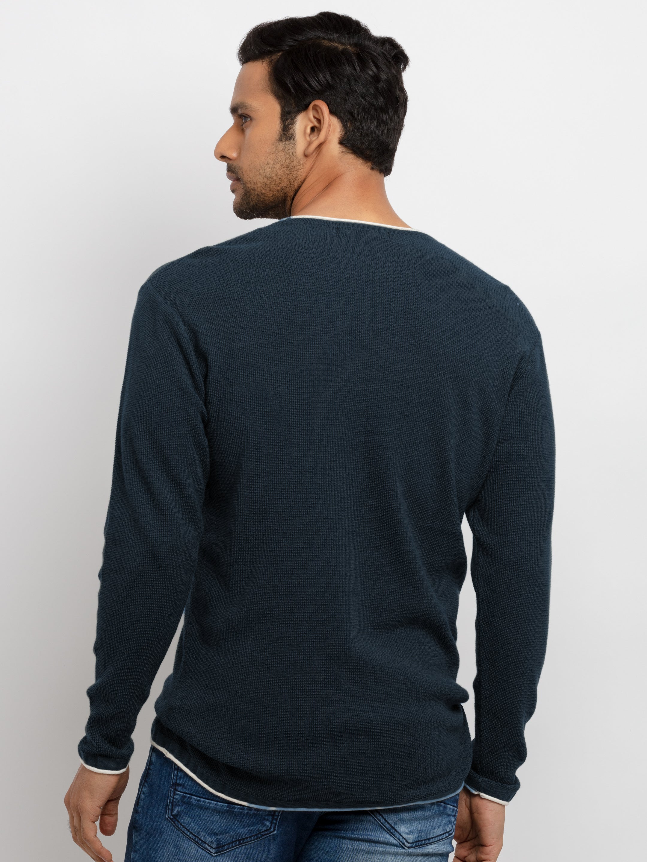 NAVY Solid Sweater Has Round Neck, Full Sleeves.