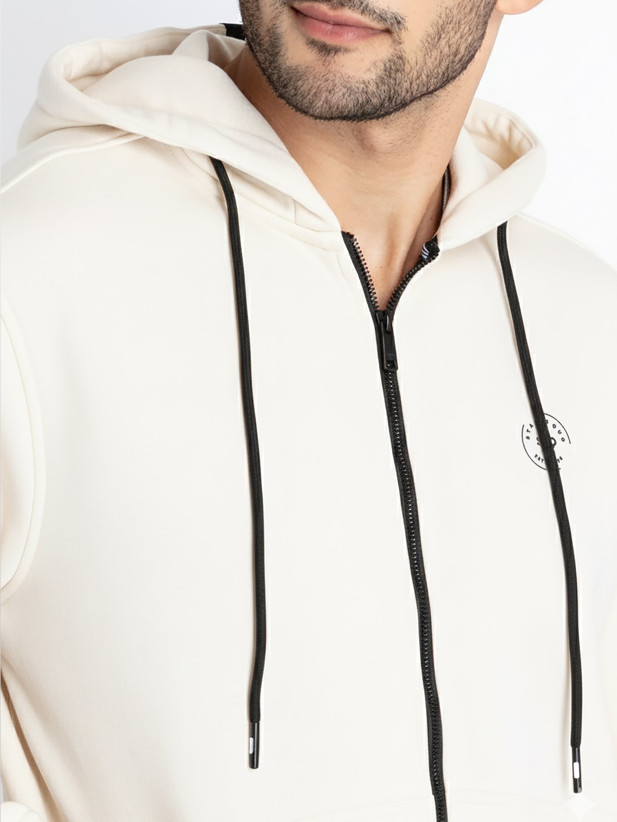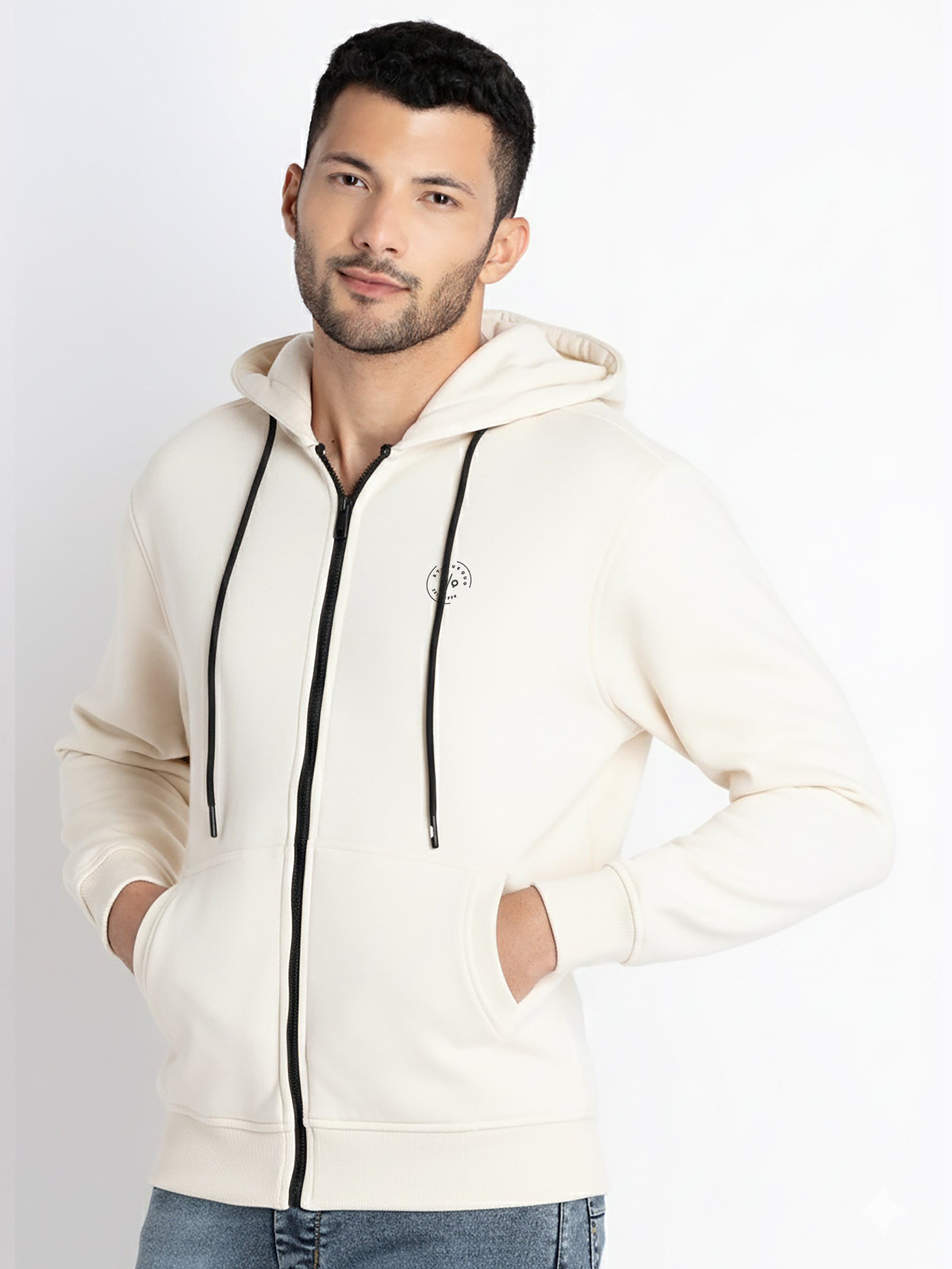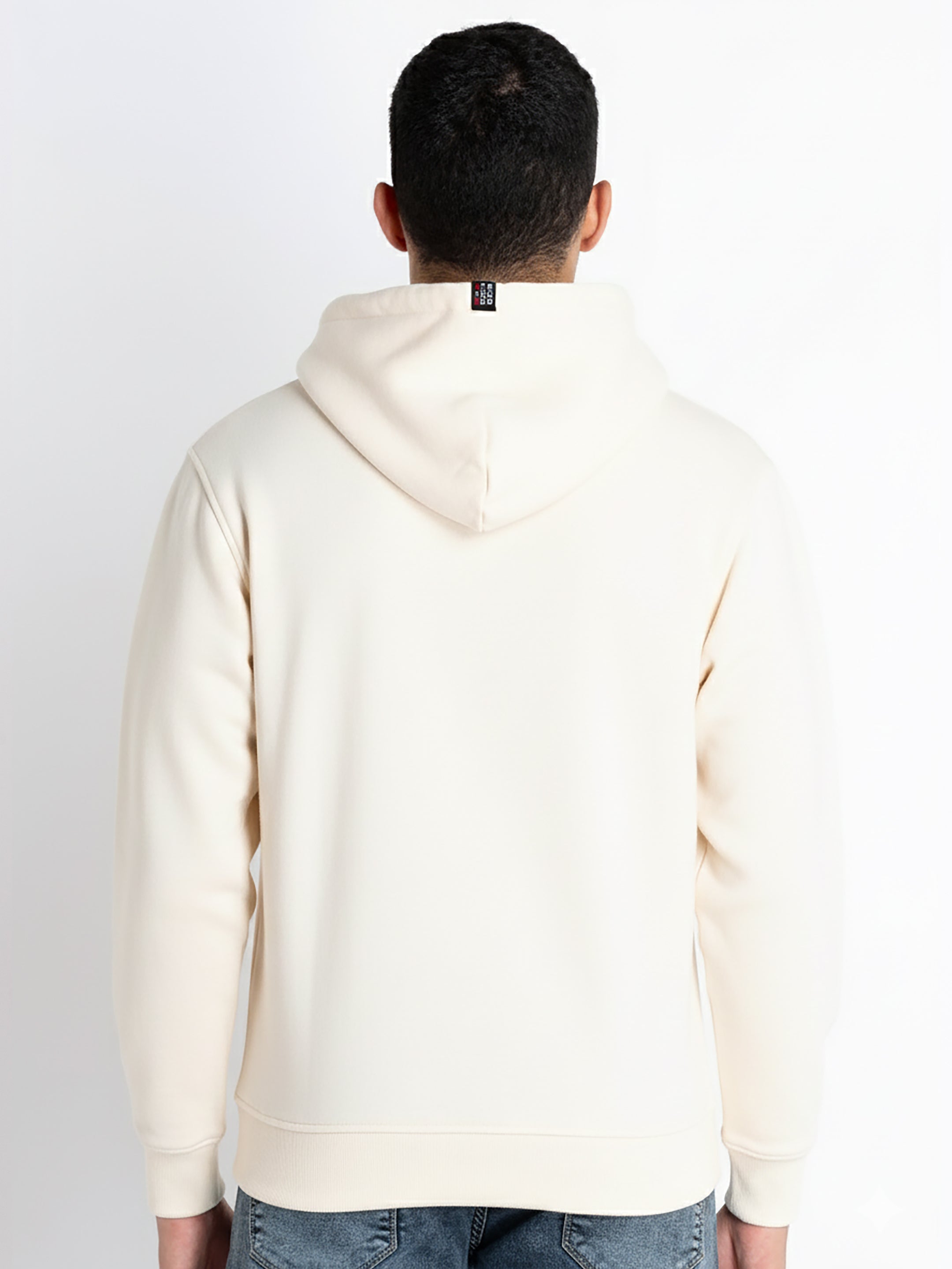 OFF WHITE Men's Solid Full Sleeves Fleece Sweatshirt With Hoodie