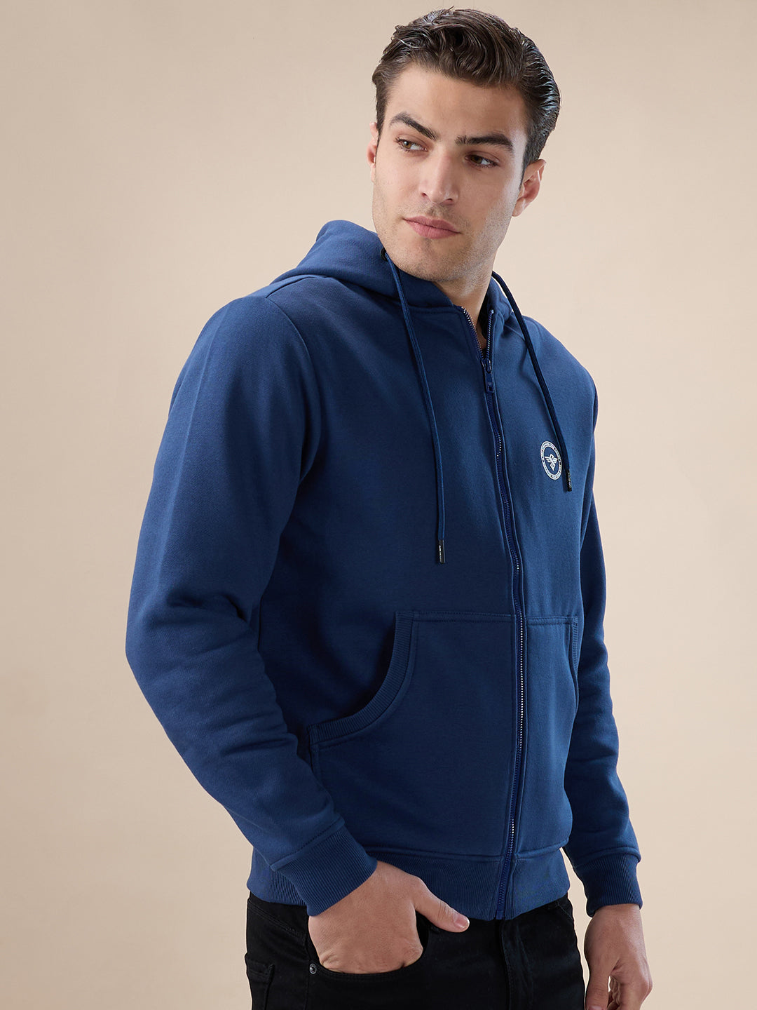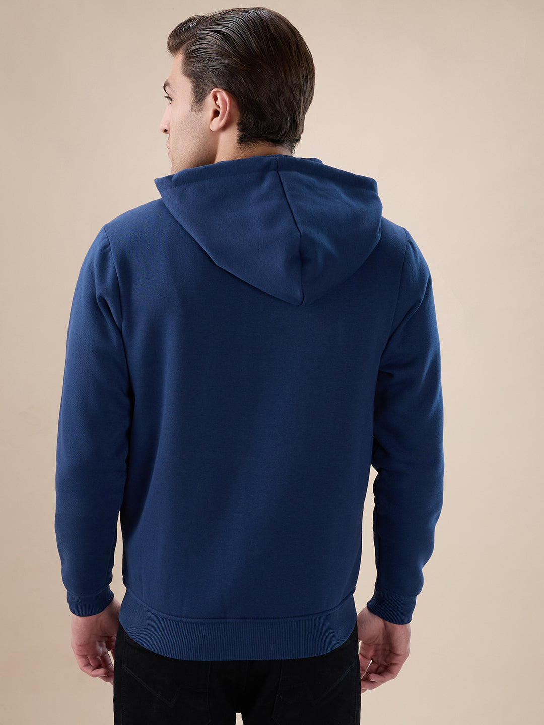 DENIM Men's Chest Brand Logo Printed Regular Fit Hooded Fleece Zip Up Sweatshirt