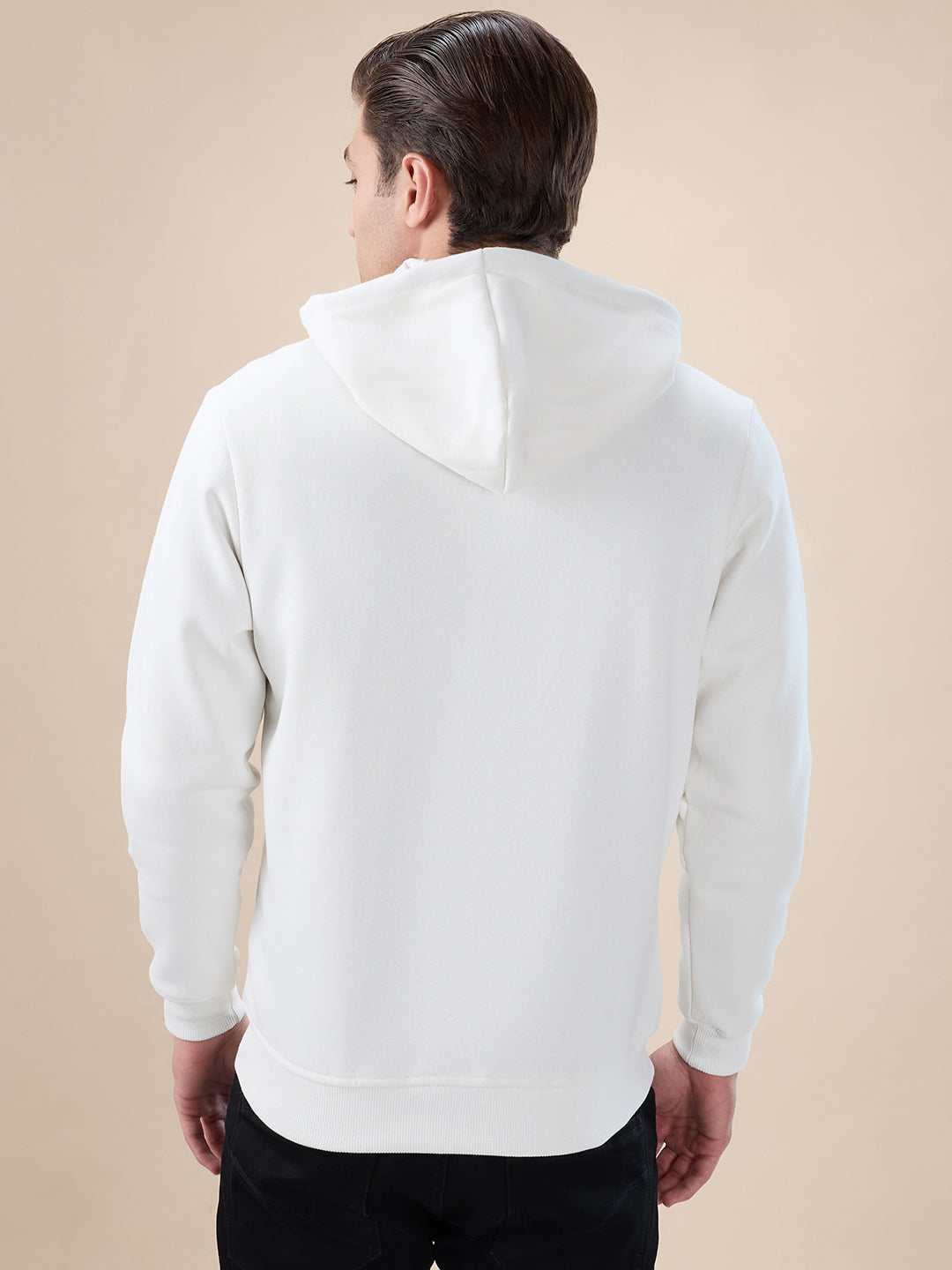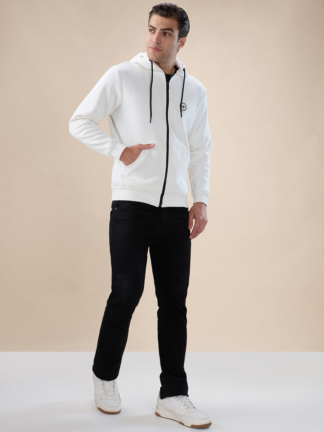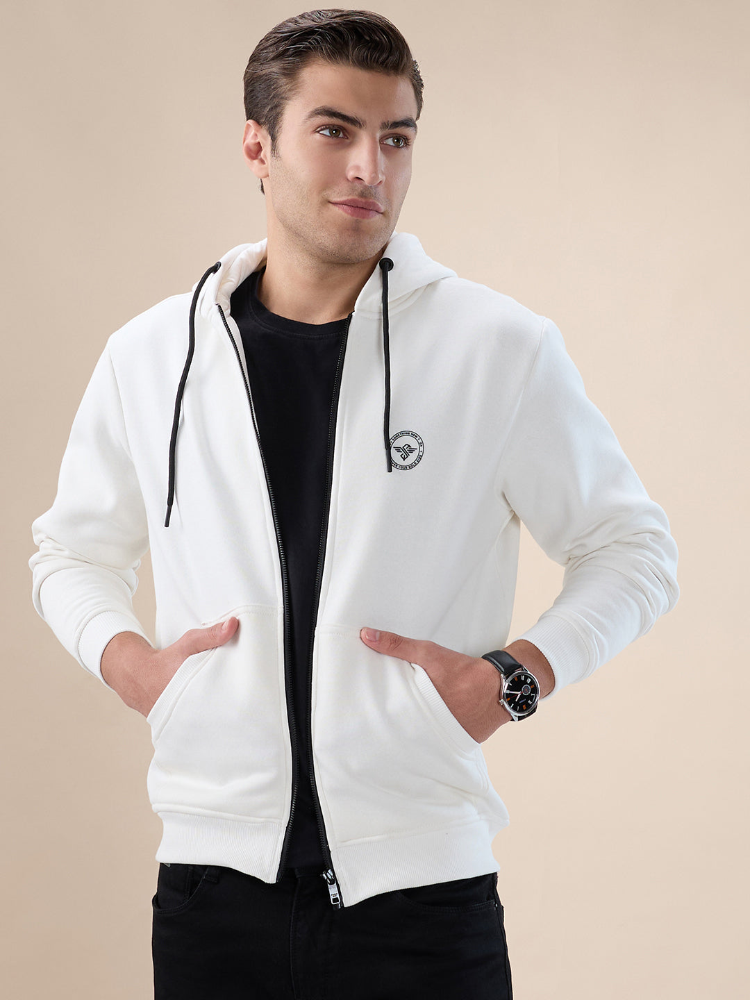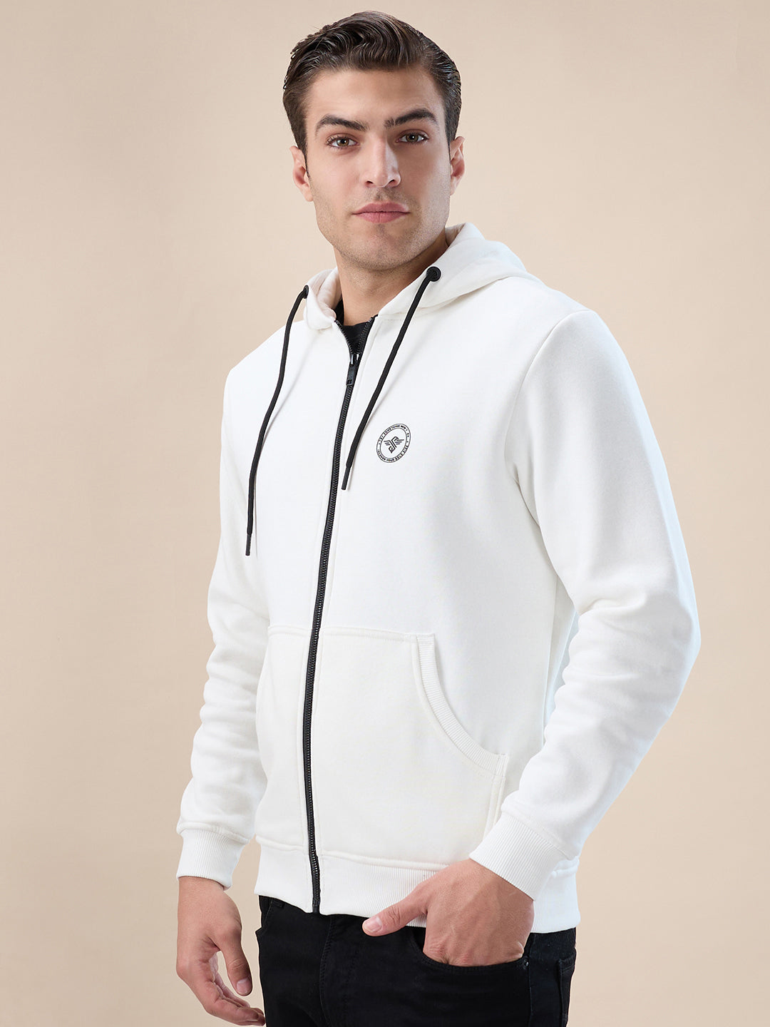 OFF WHITE Men's Chest Brand Logo Printed Regular Fit Hooded Fleece Zip Up Sweatshirt