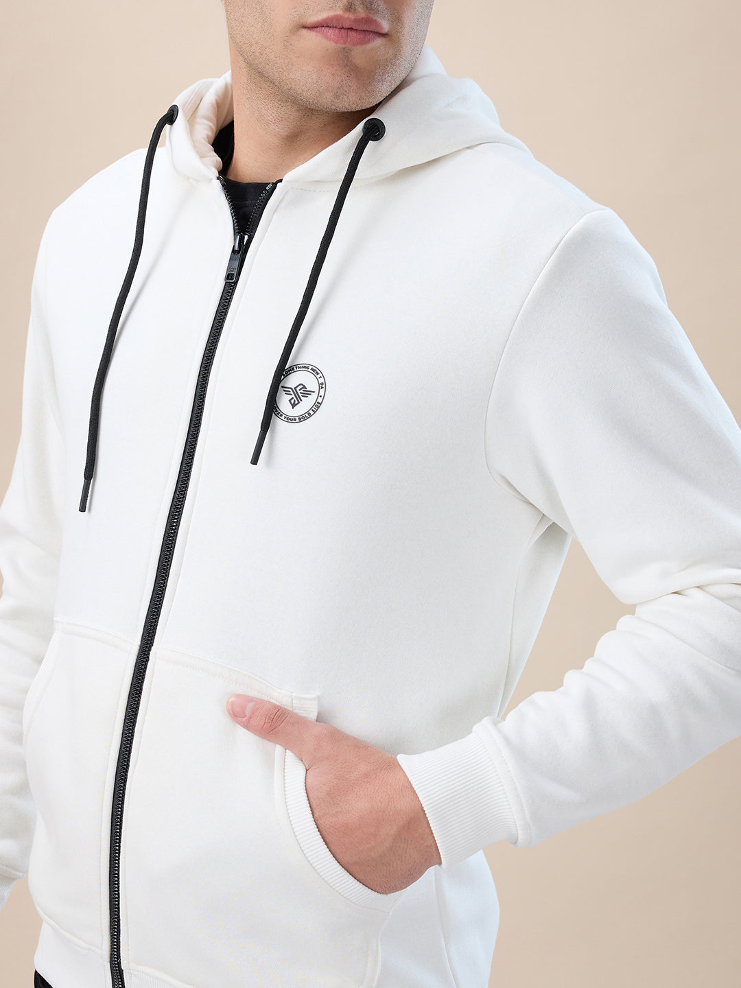 OFF WHITE Men's Chest Brand Logo Printed Regular Fit Hooded Fleece Zip Up Sweatshirt