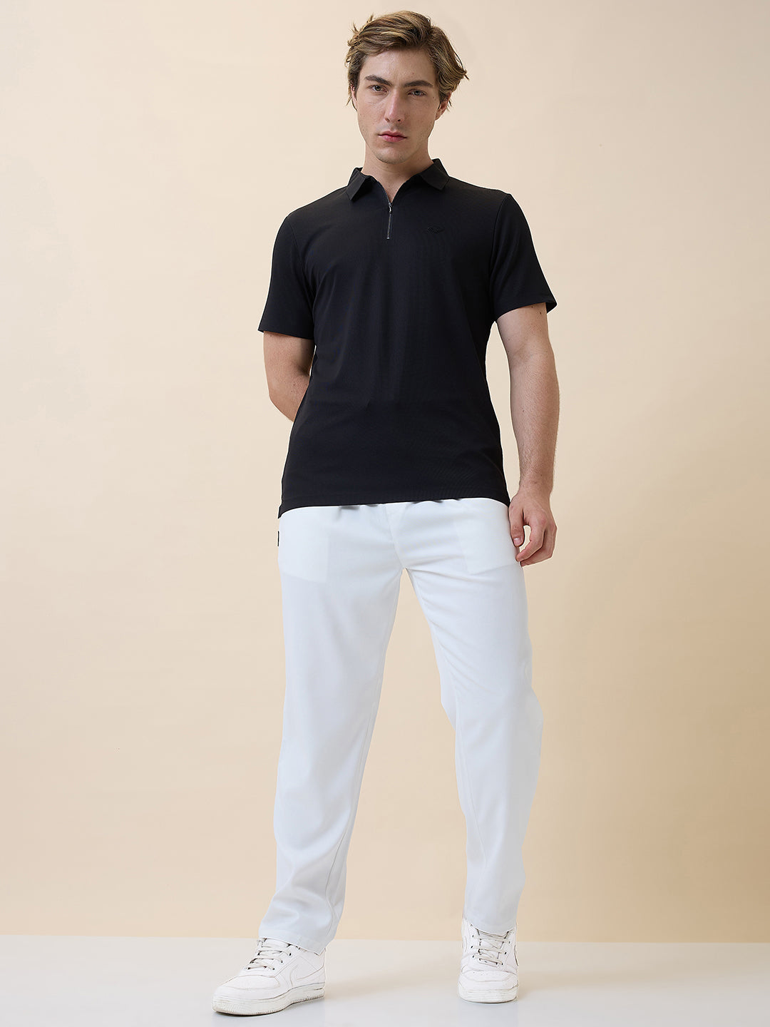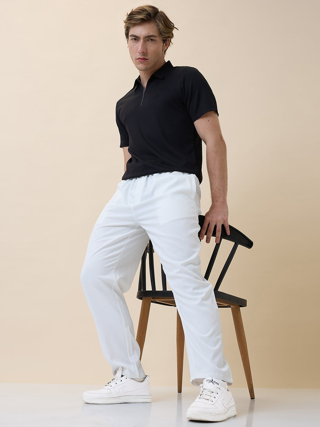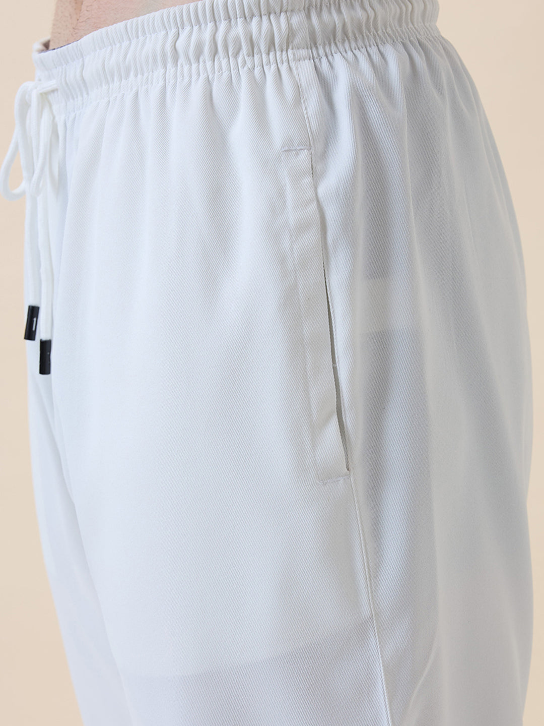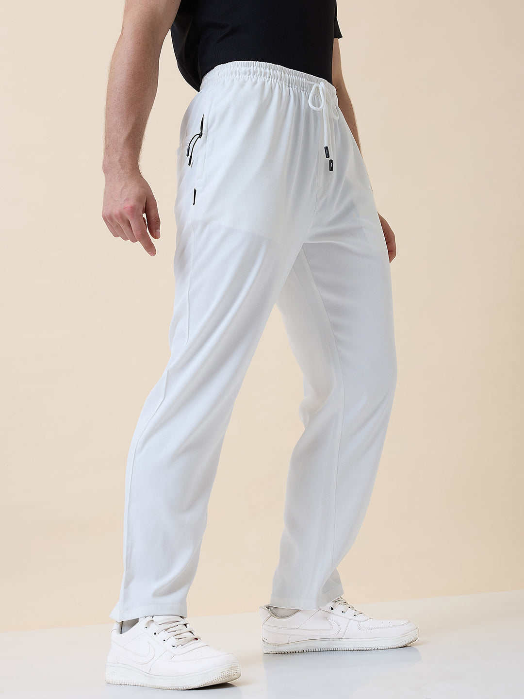 WHITE Men's Solid with Side Pockets Drawstring Trackpant