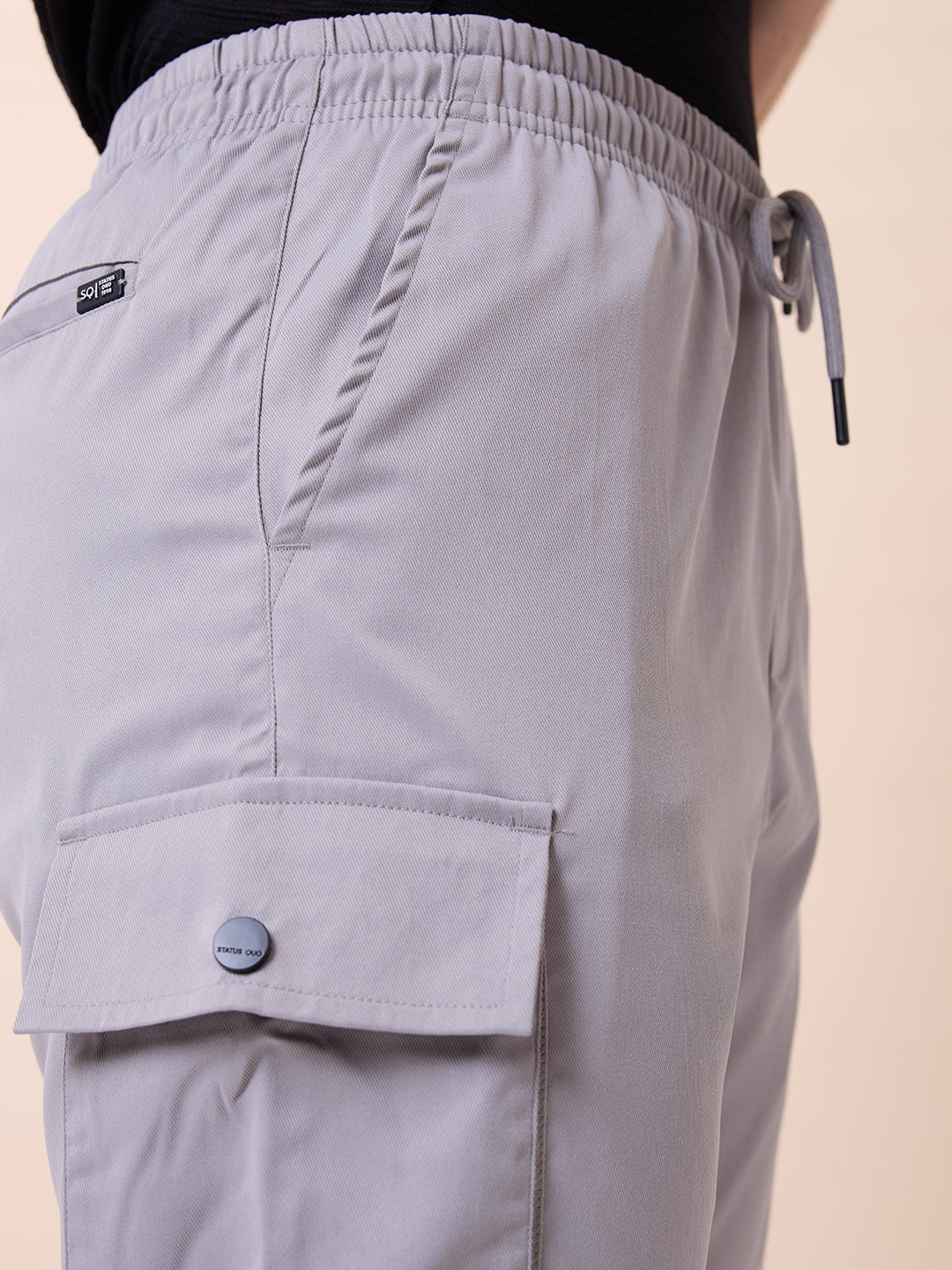 LT.GREY Men's Solid with Side Pockets Drawstring Trackpant