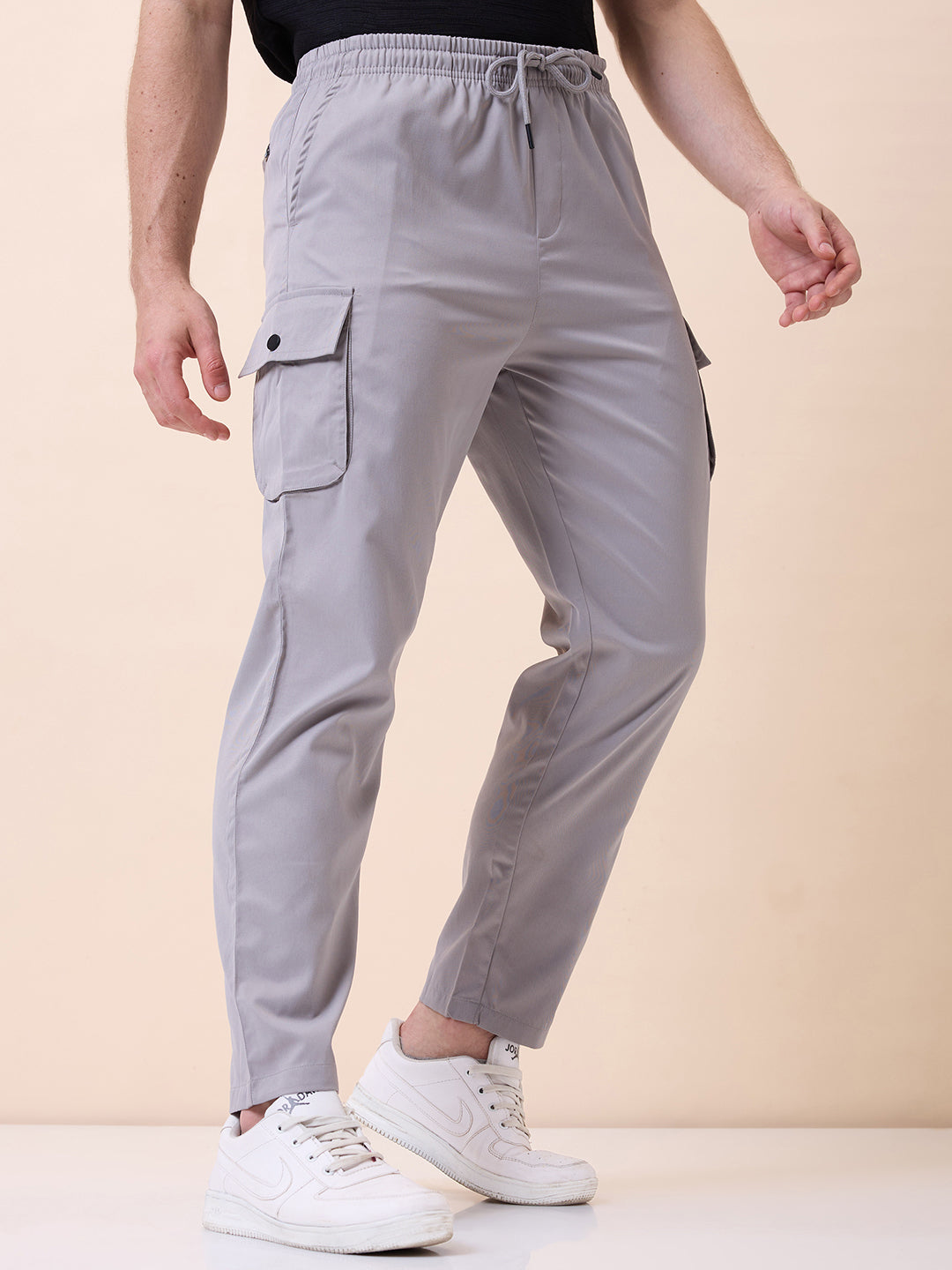 LT.GREY Men's Solid with Side Pockets Drawstring Trackpant