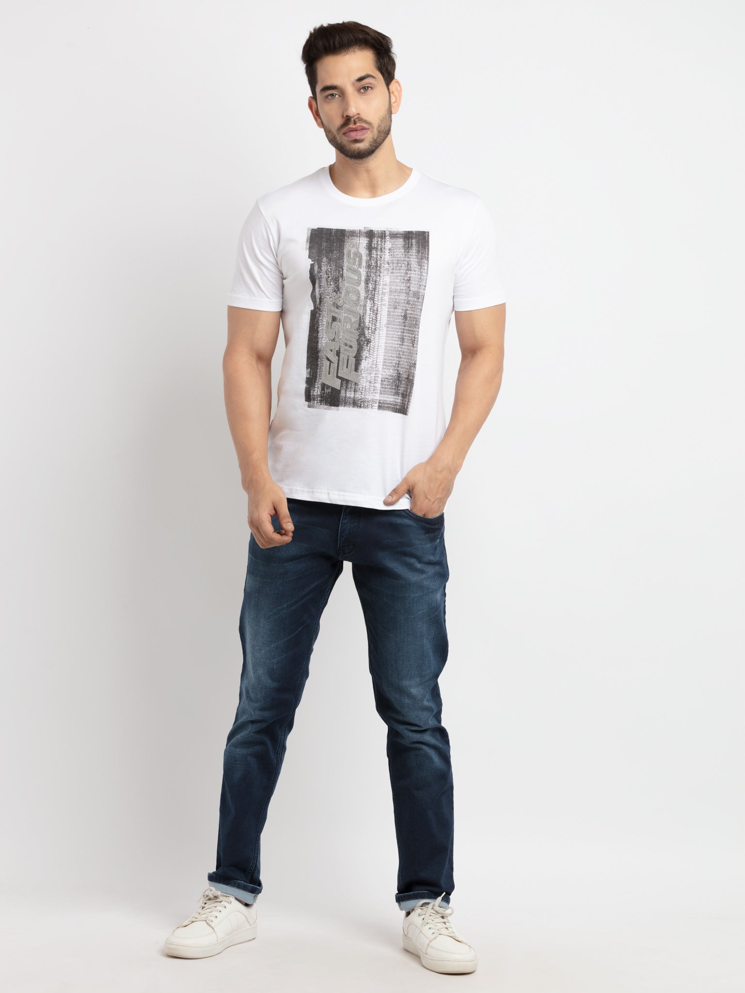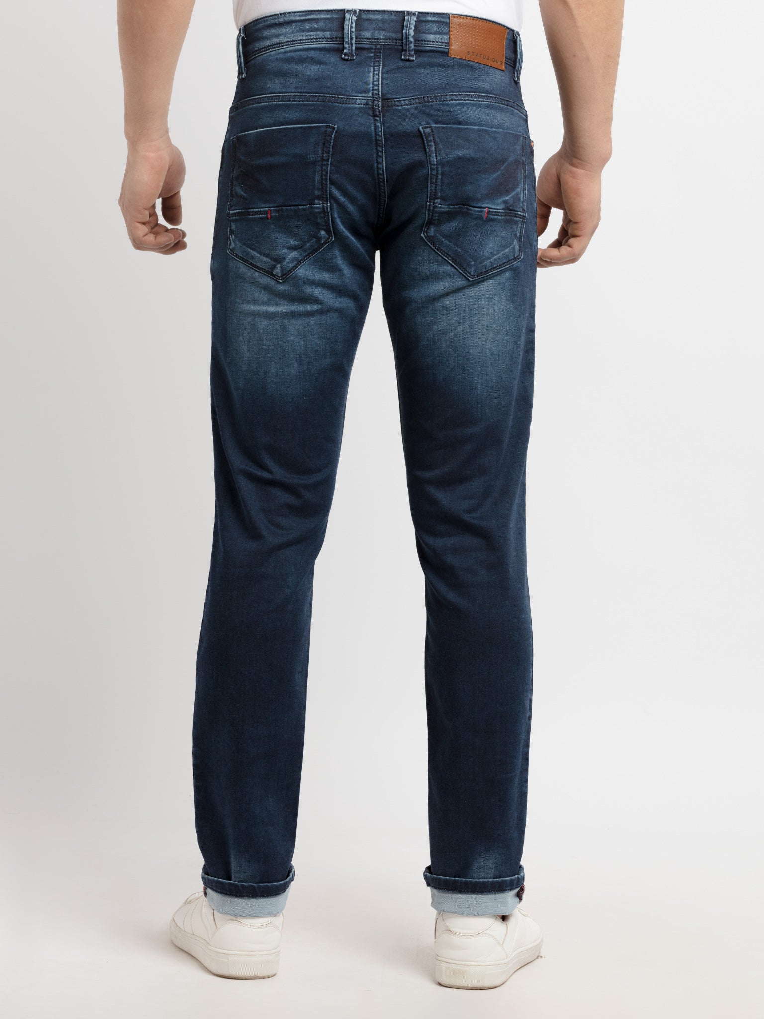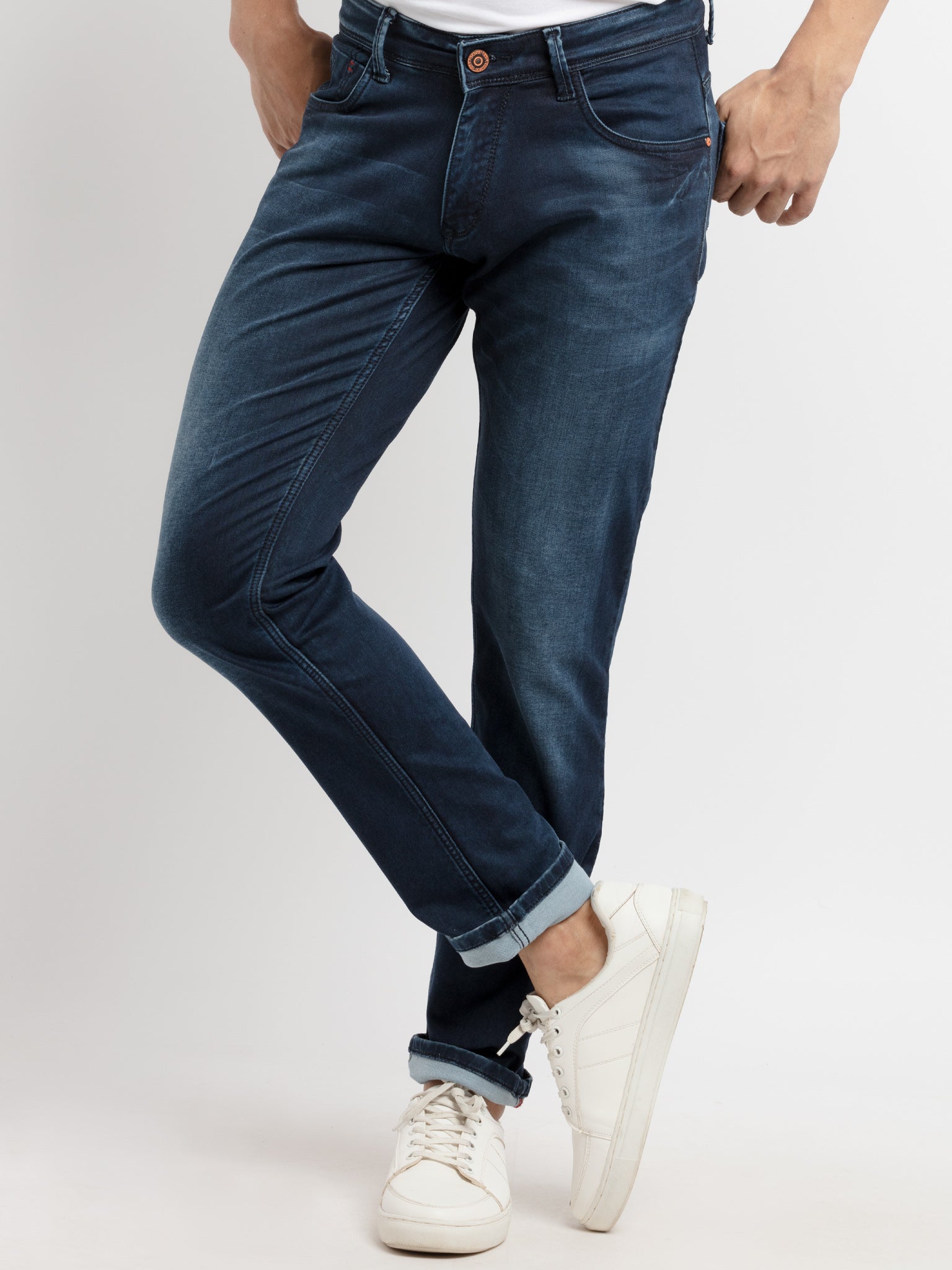 INDIGO Men's Slim Fit Denim Jeans has Medium Wash, Pattern 5 Pockets, Slim Fit