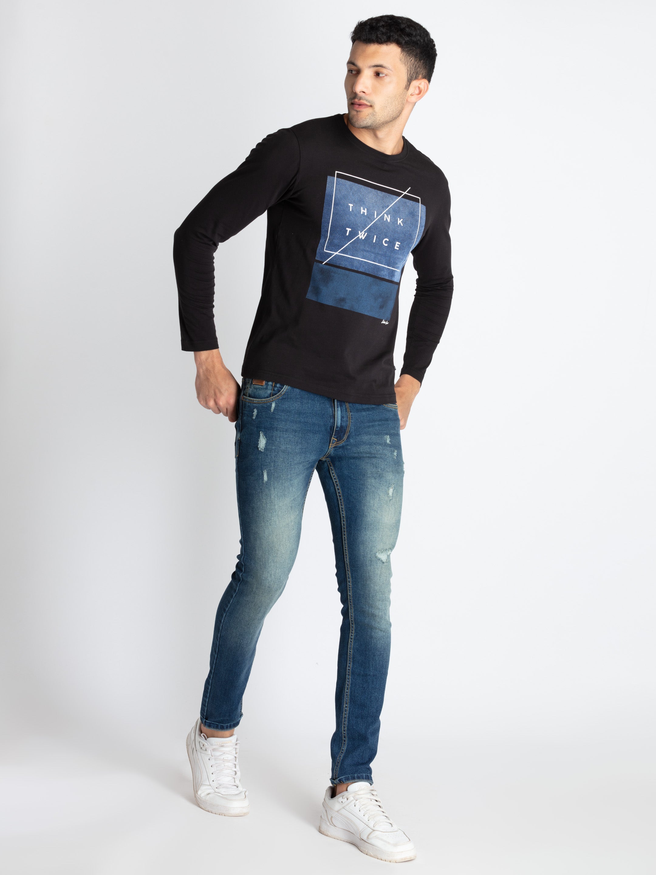 BLUE Men's Slim Fit Denim Jeans has 5 pocket and Zipper
