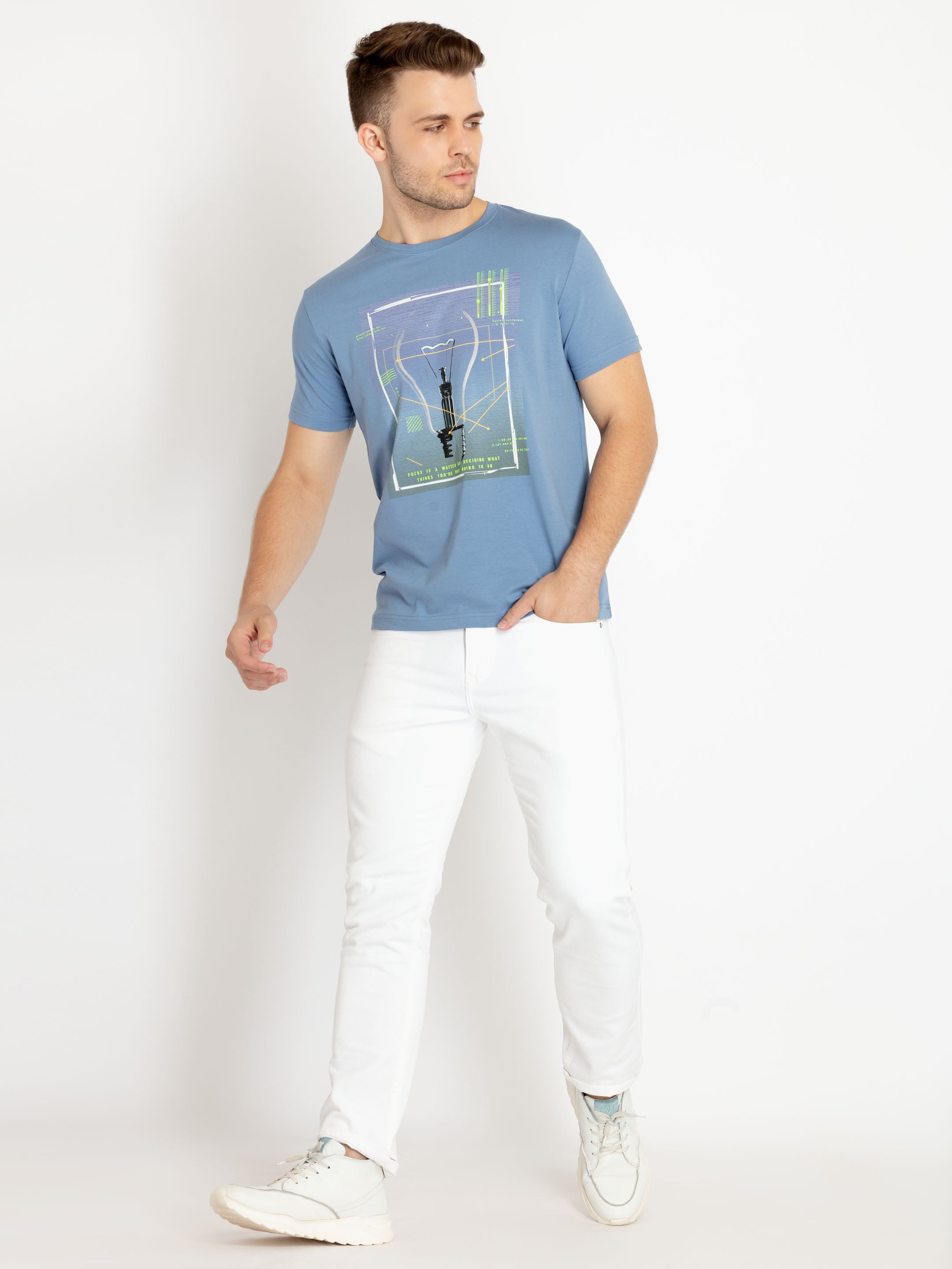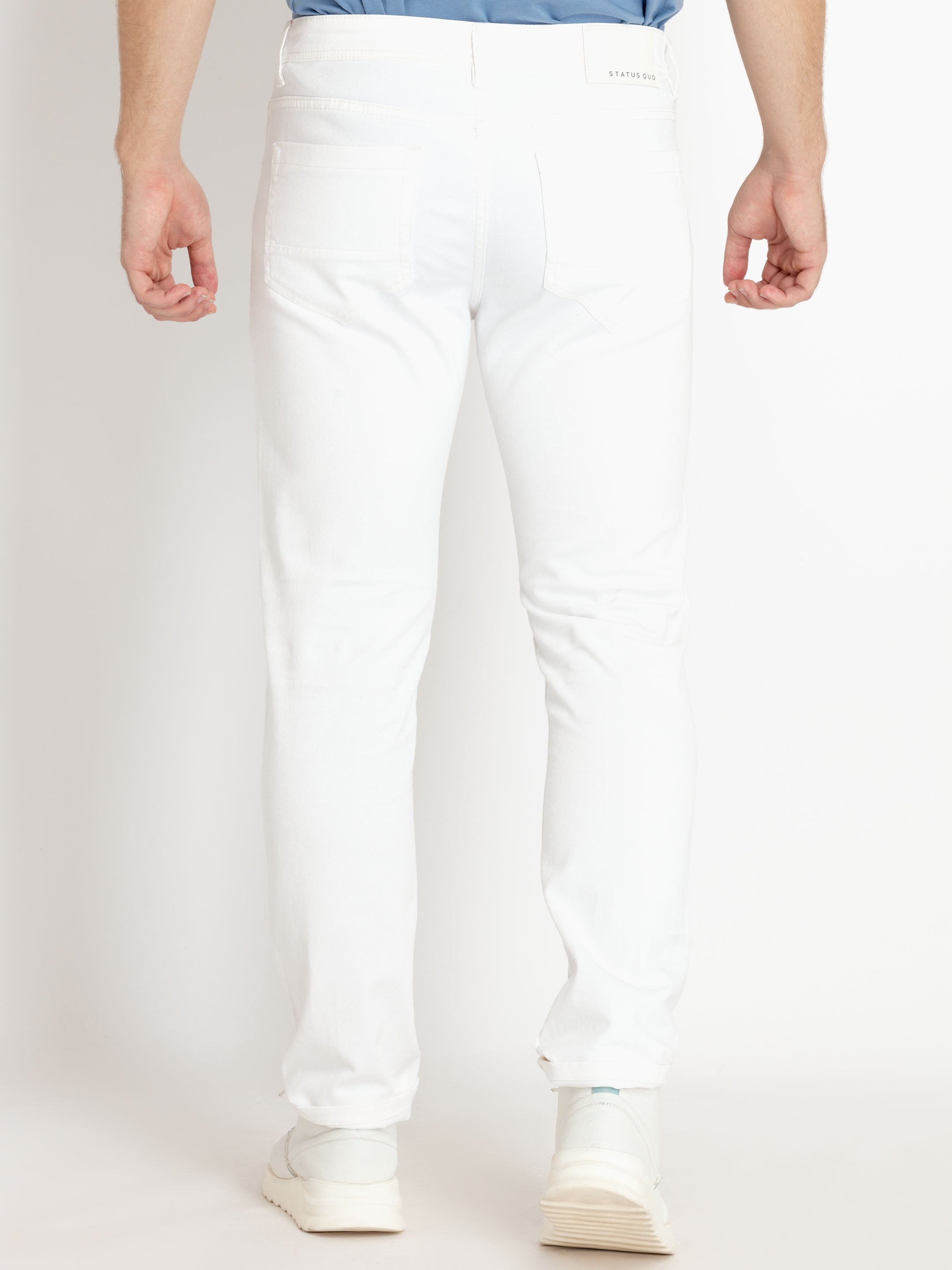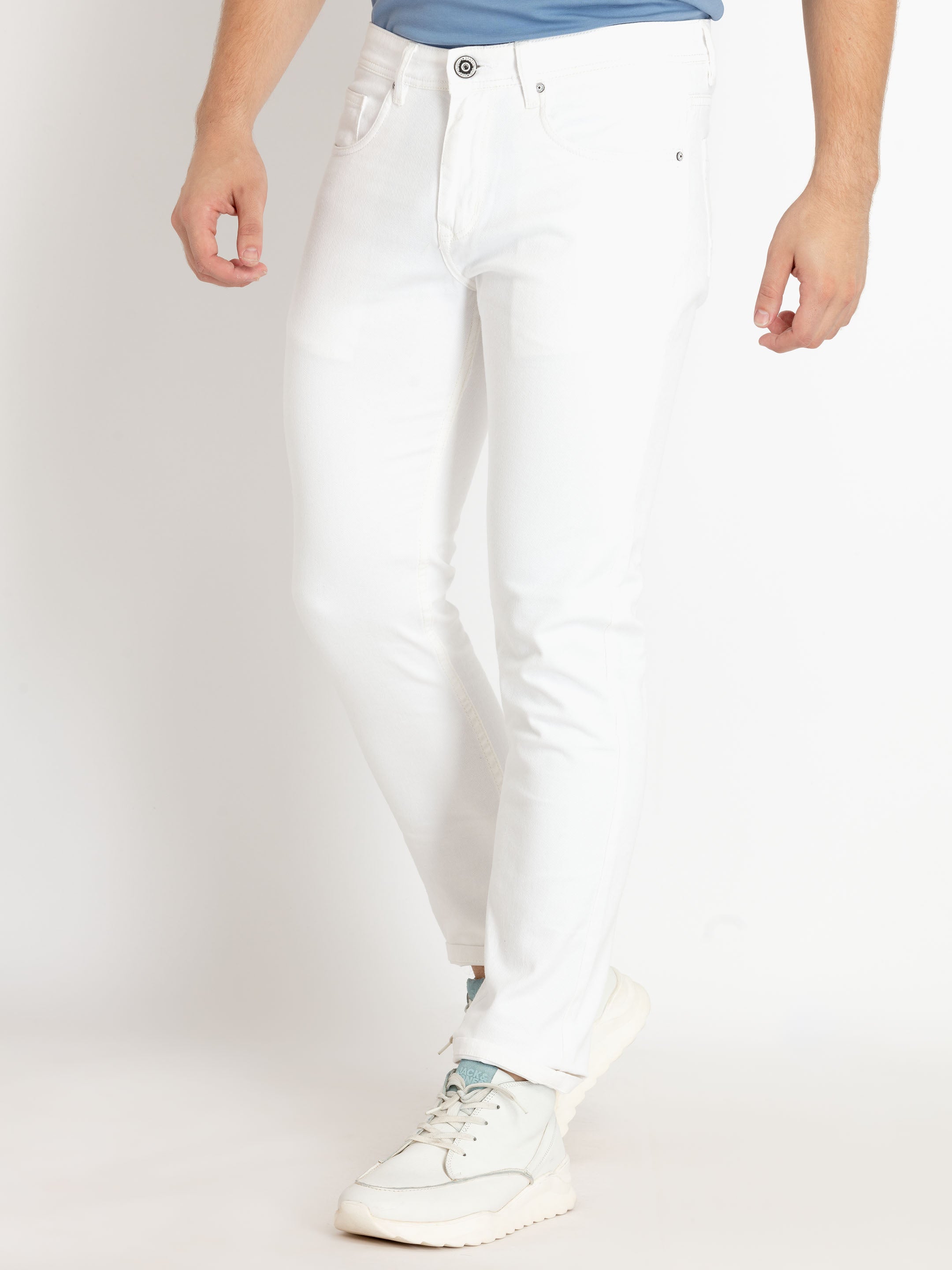 WHITE Mens Straight Slim Fit Denim Jeans has 5 pocket and Zipper