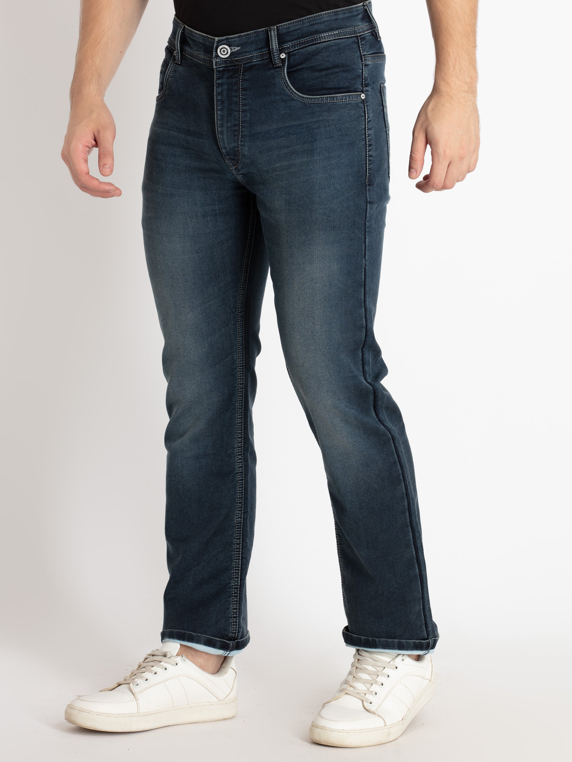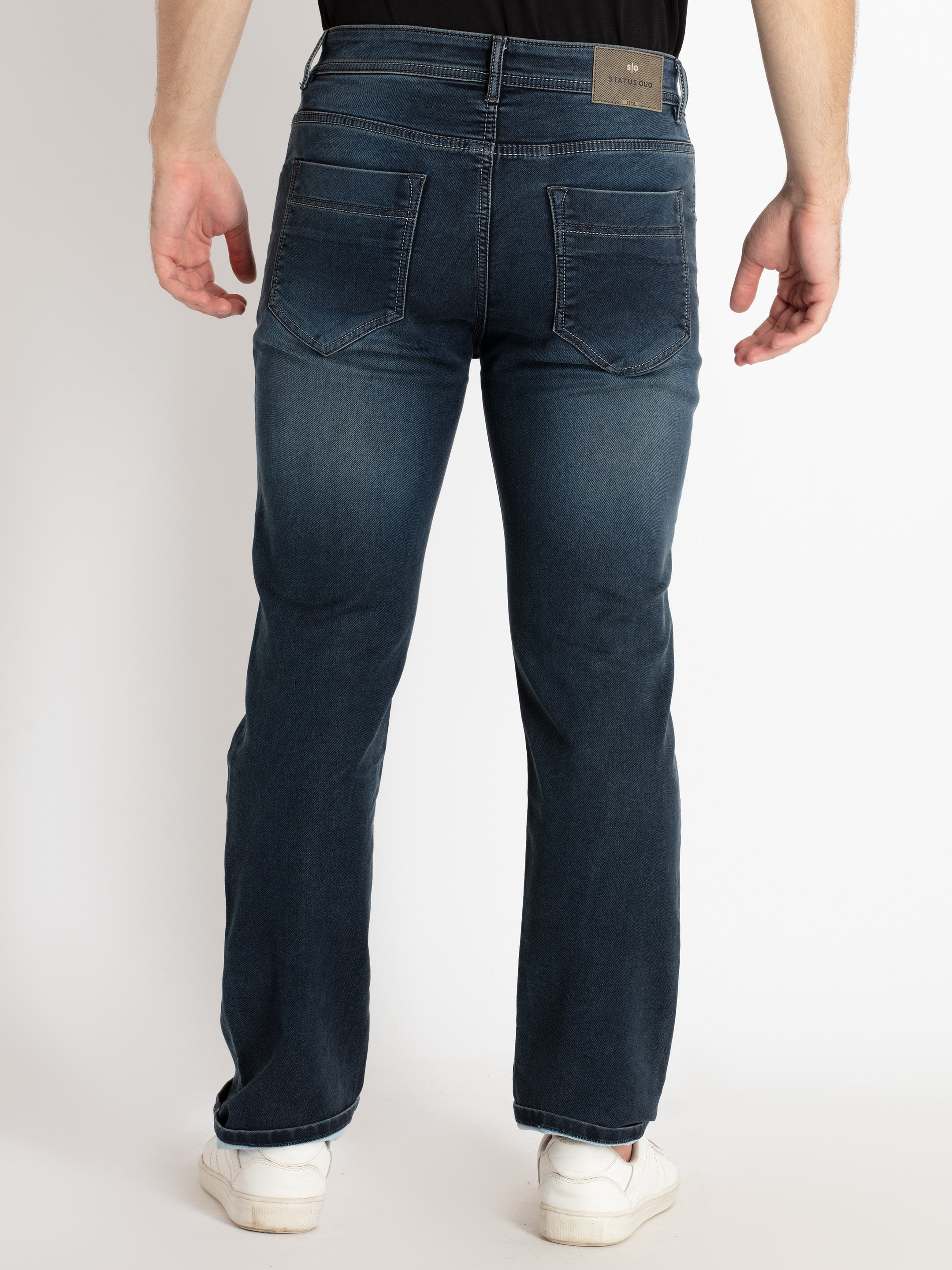 Washed Black Men's Straight Fit Denim Jeans has 5 pocket and Zipper