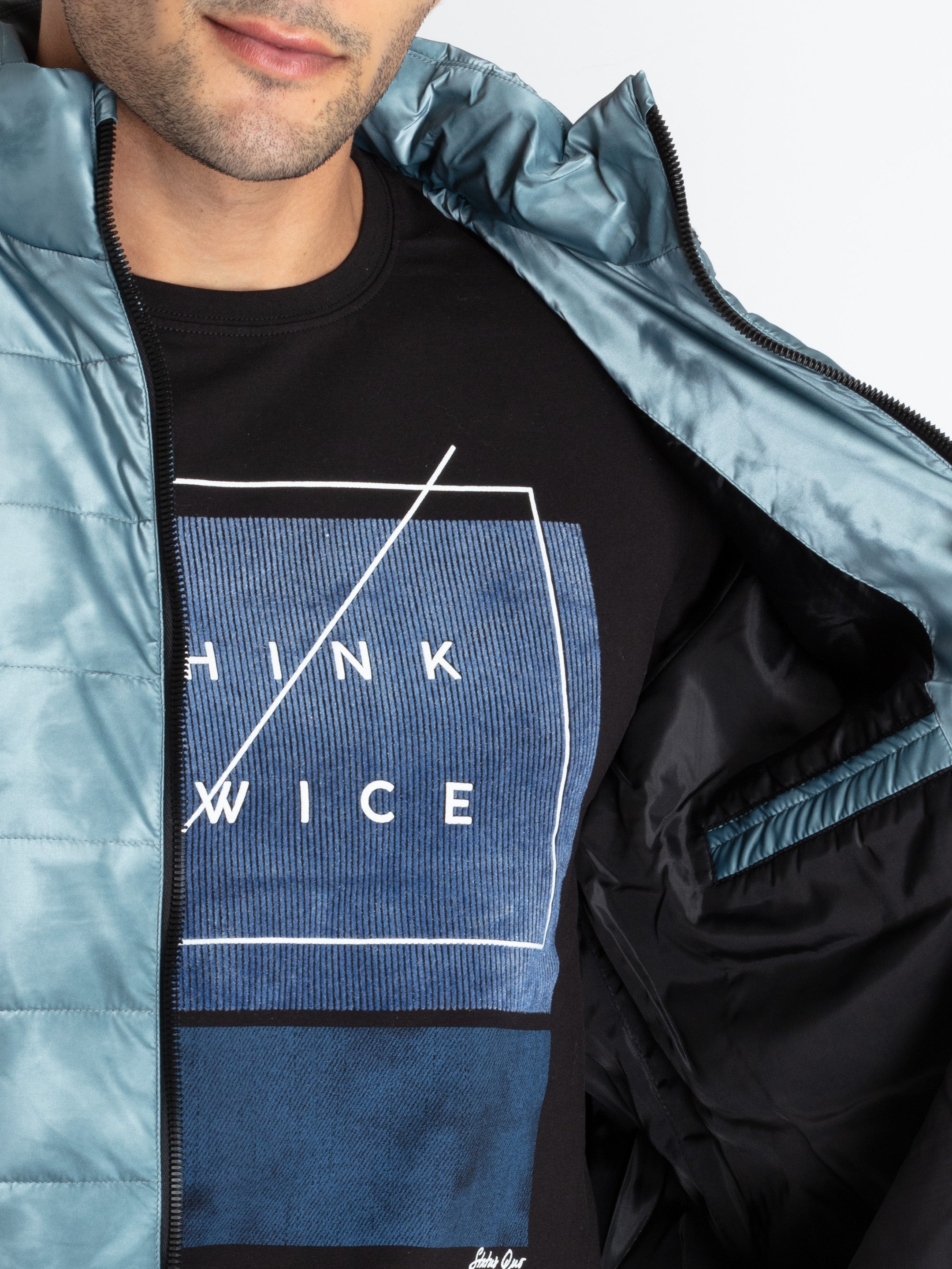BLUE Quilted Jacket has Hooded Neck, Full Sleeves