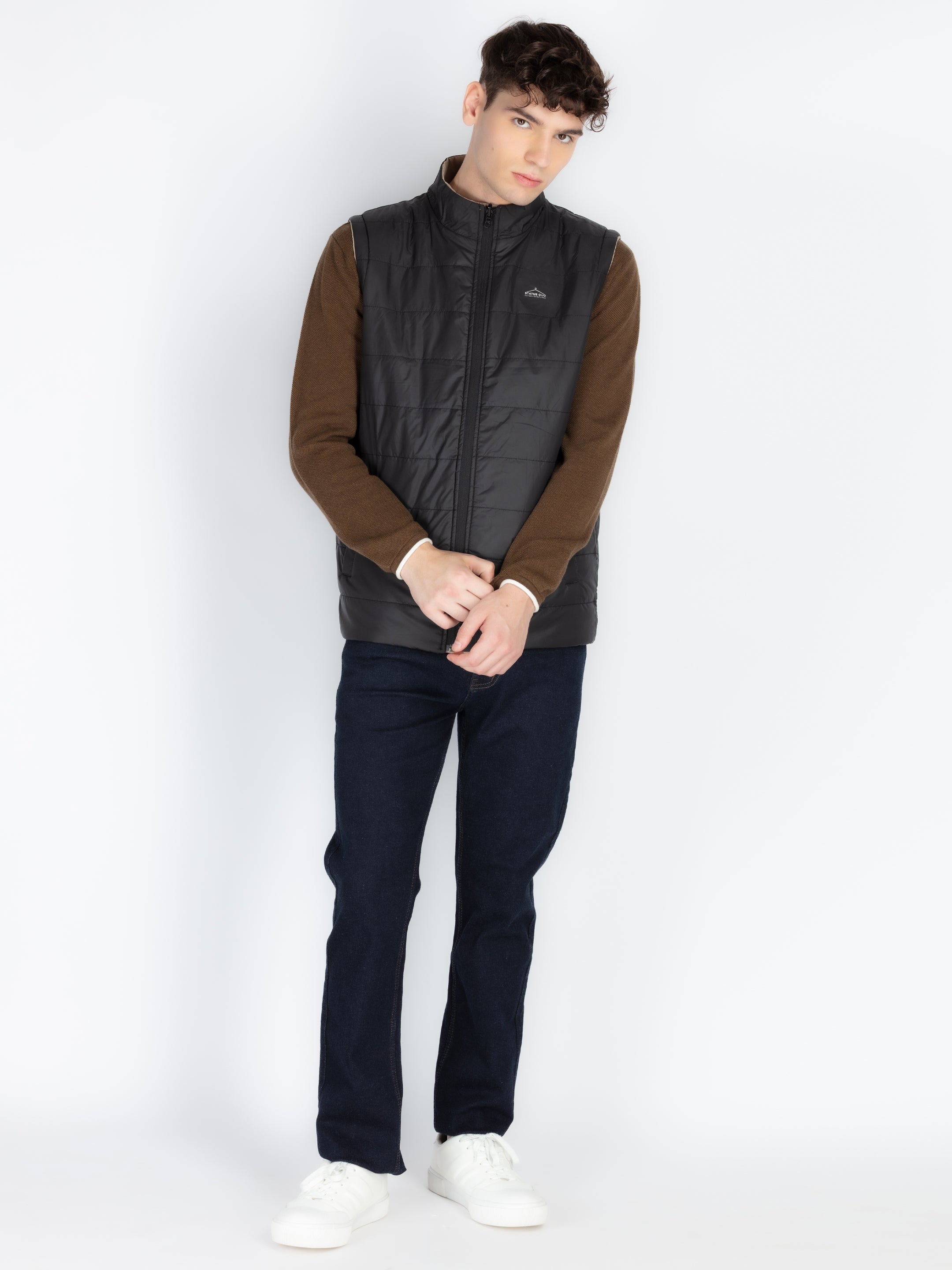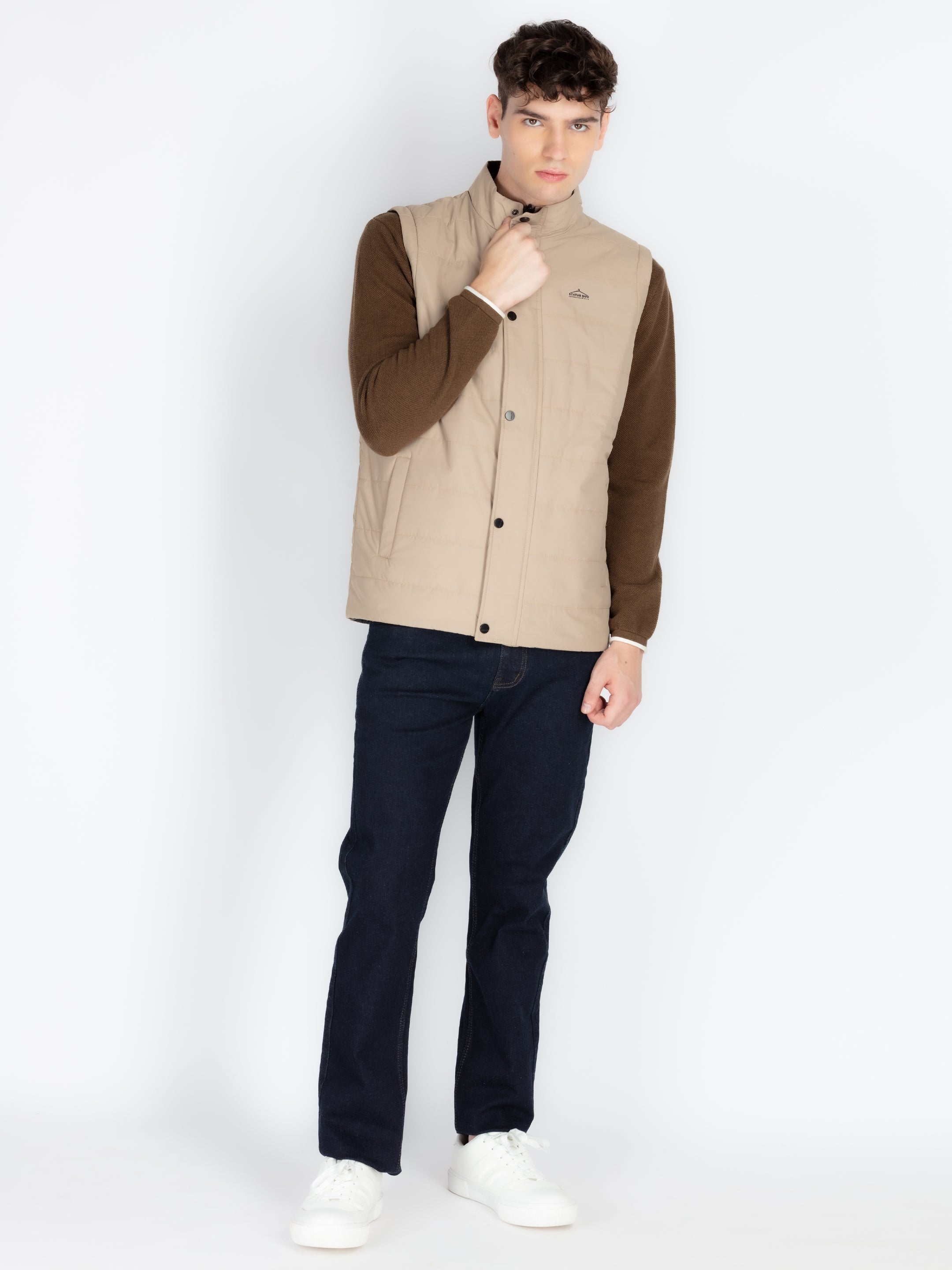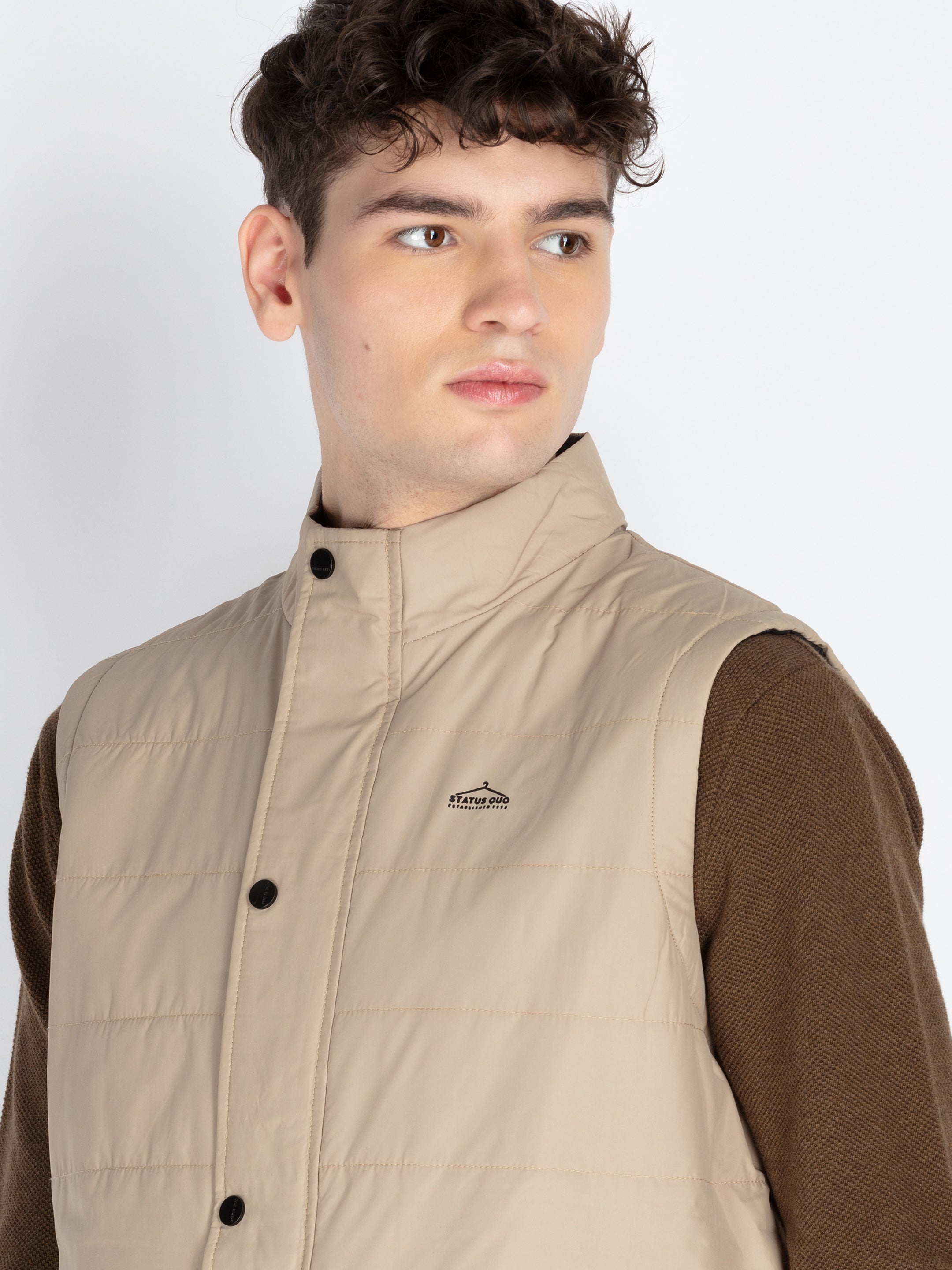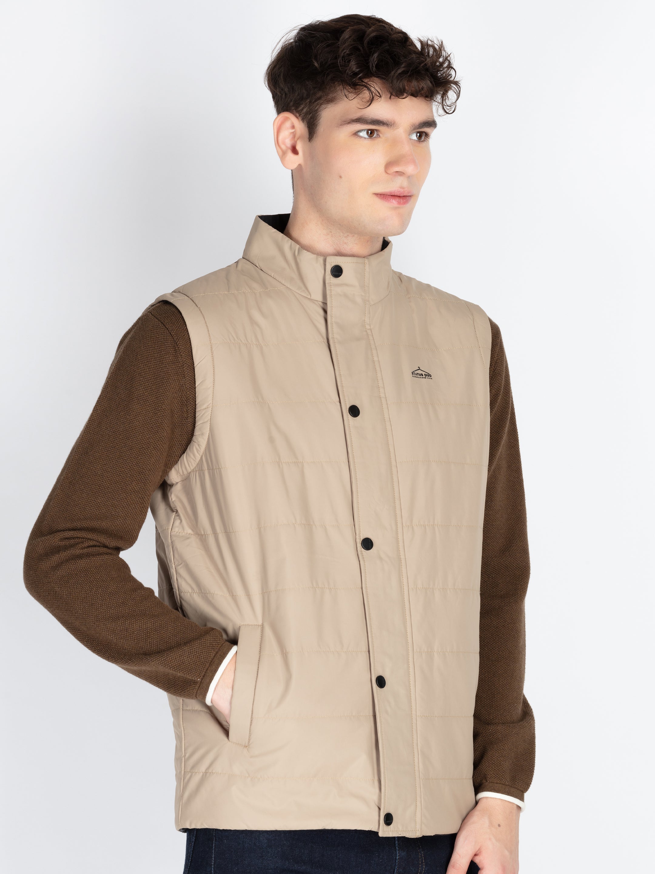 Khaki/Black Mens Sleeveless Reversible Puffer Jacket Has High Neck with Sleeveless.