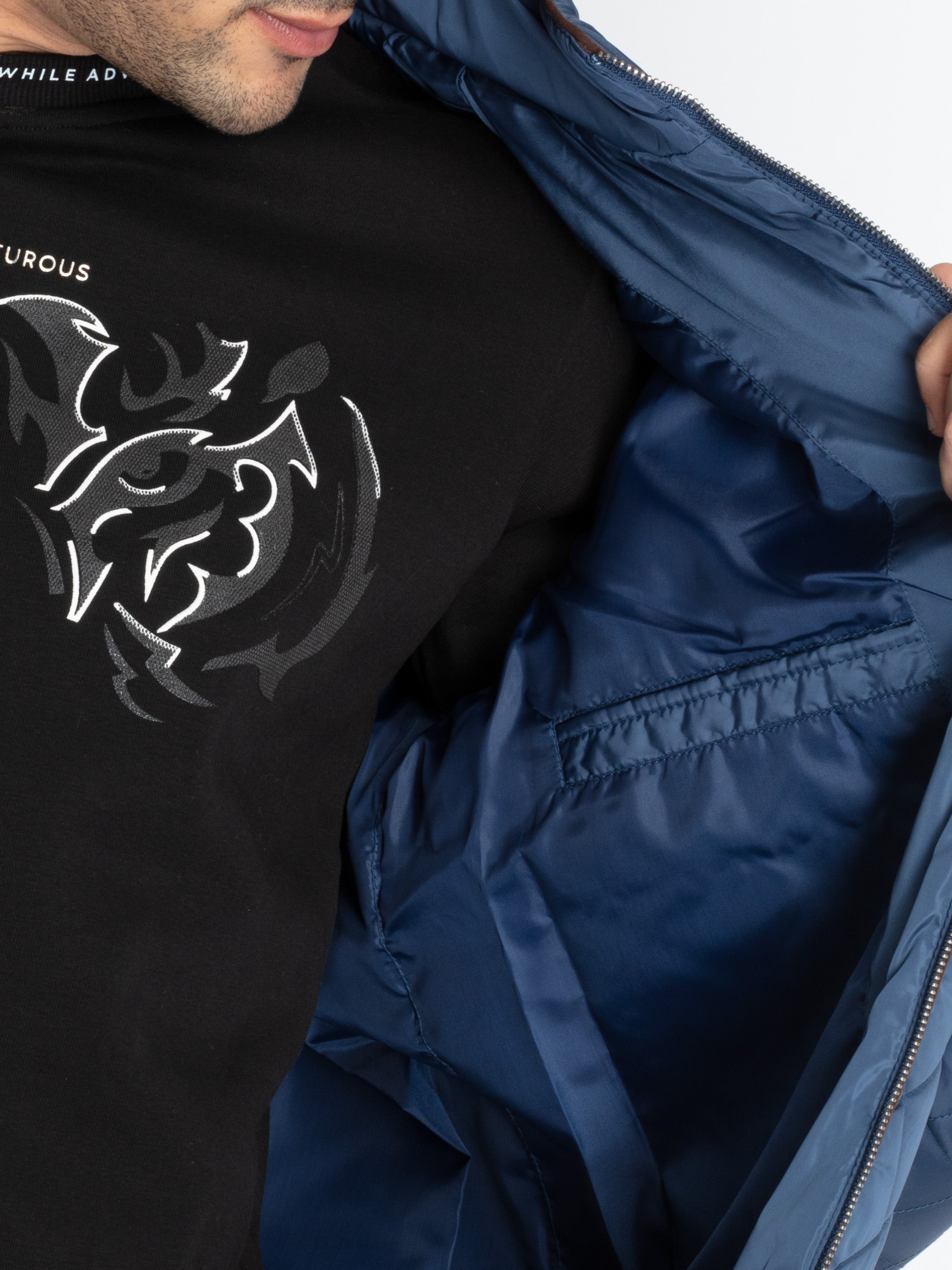 DENIM Quilted Puffer Jacket has High Neck, Full Sleeves