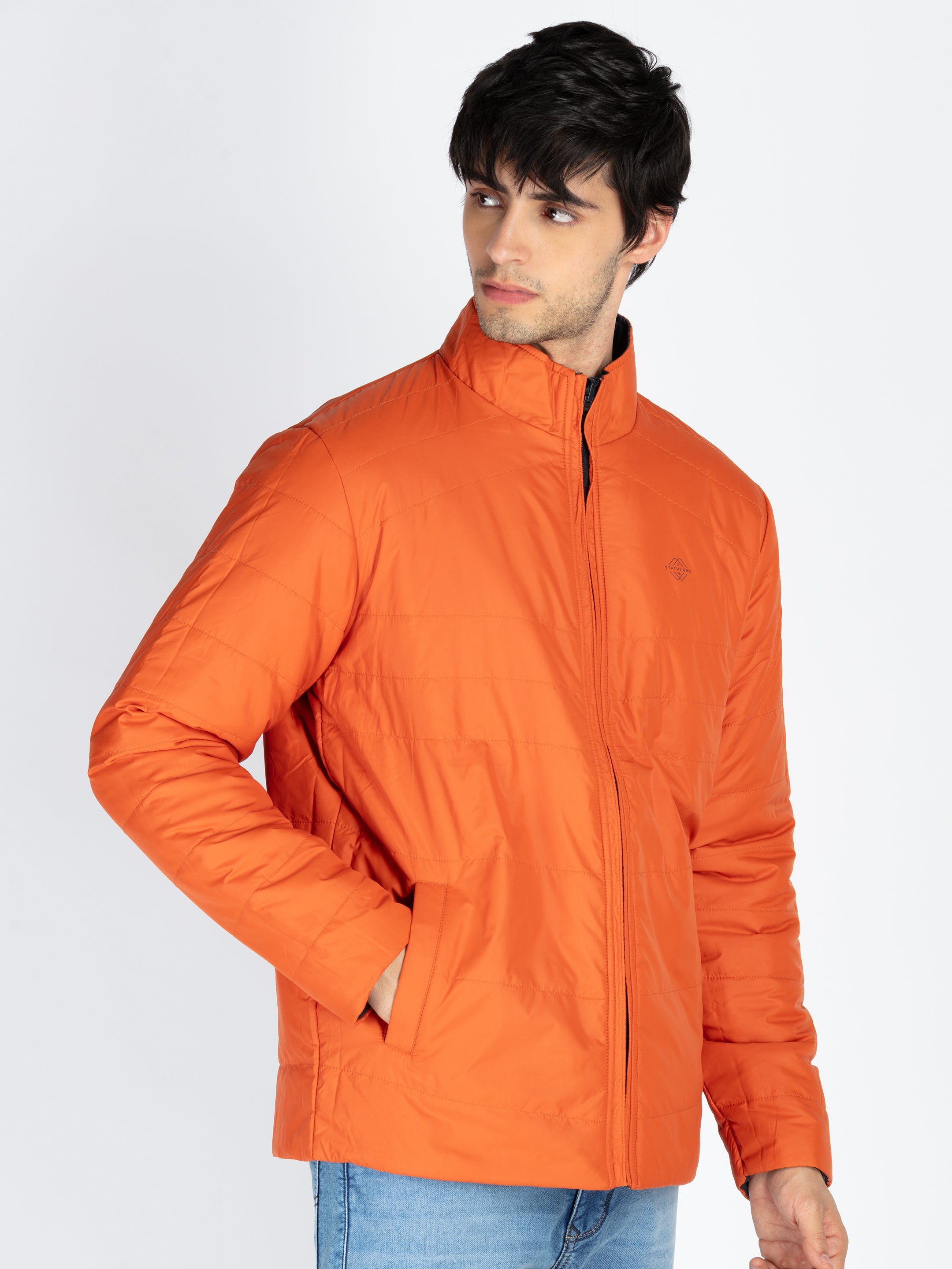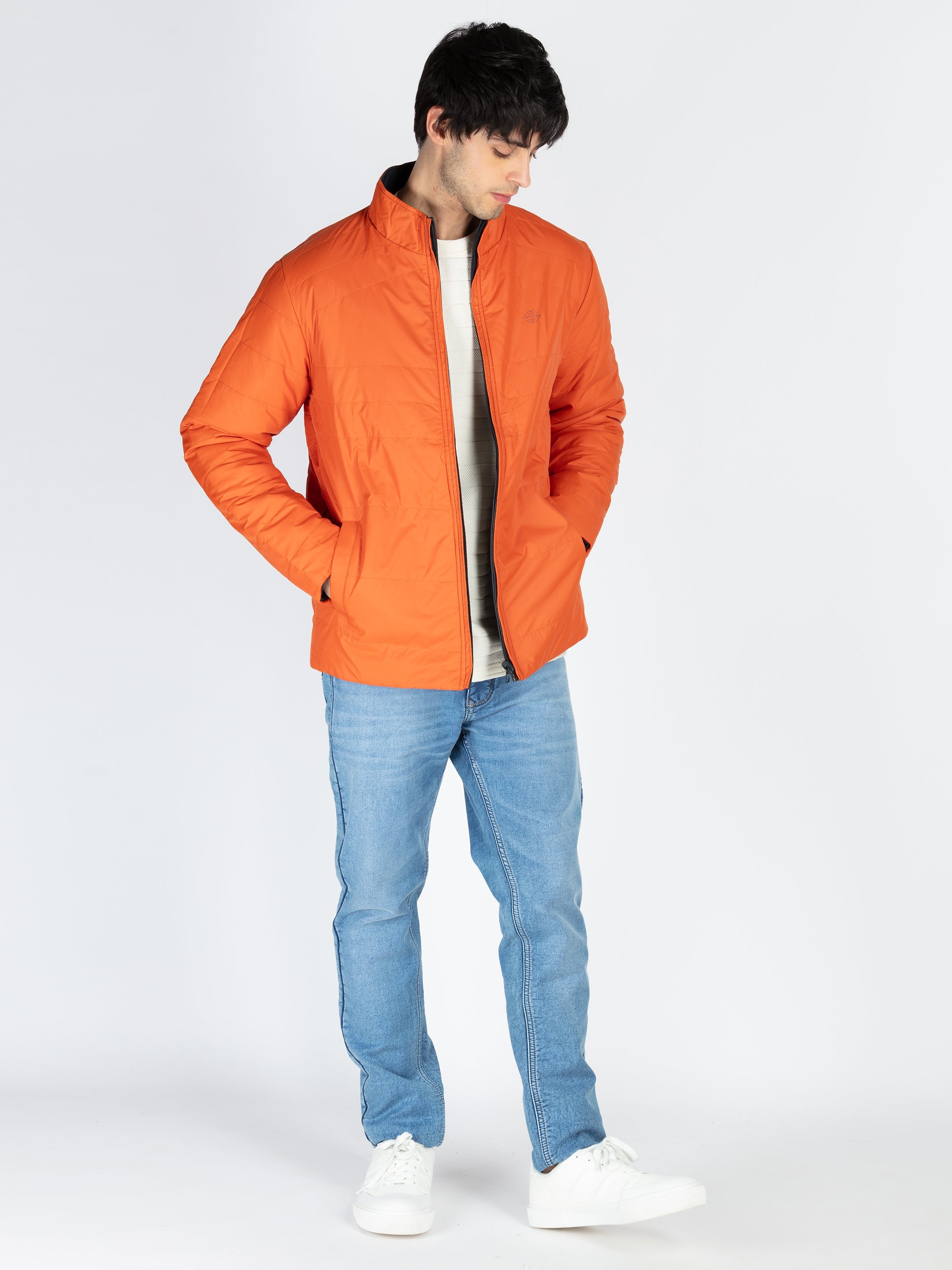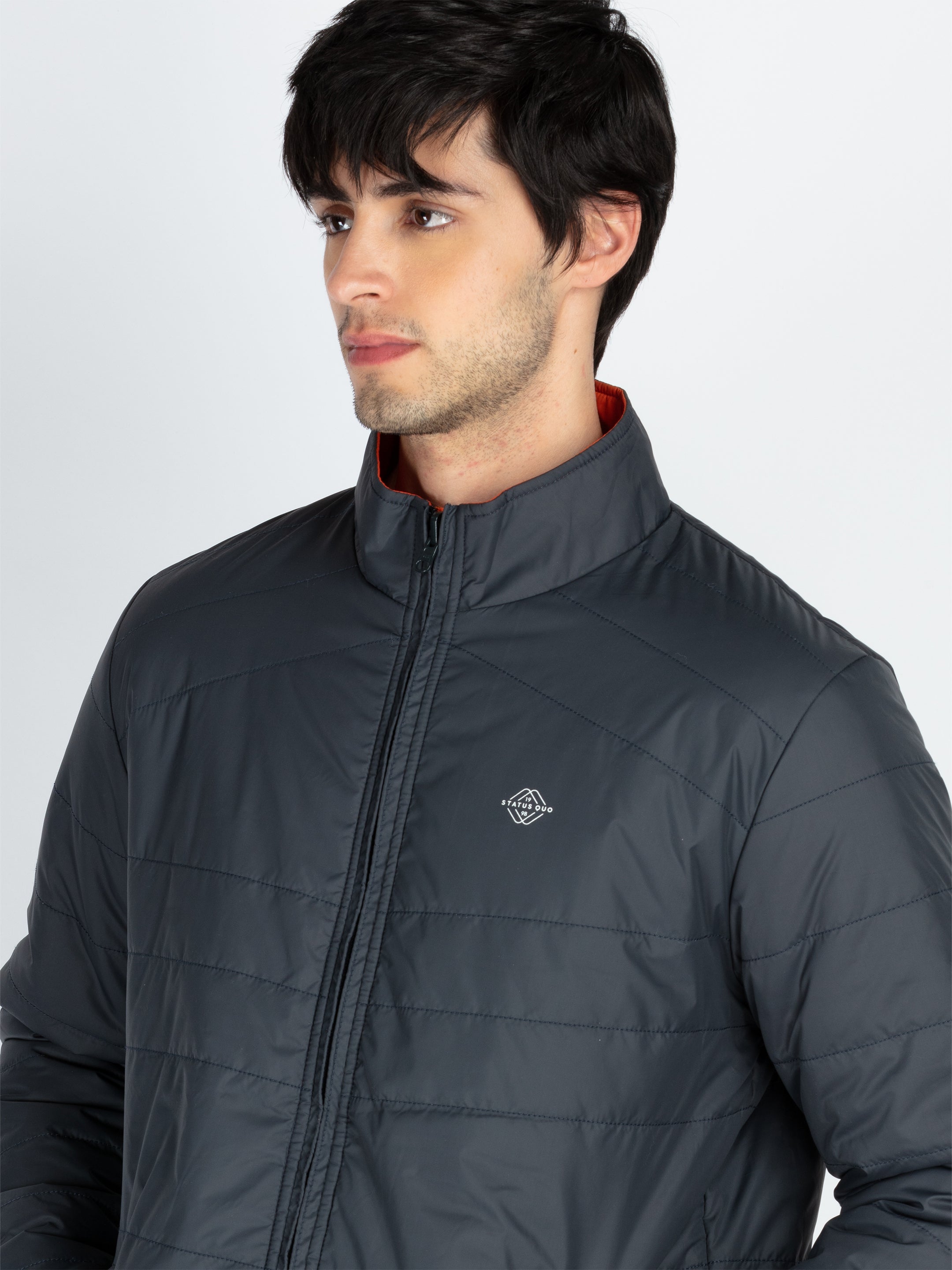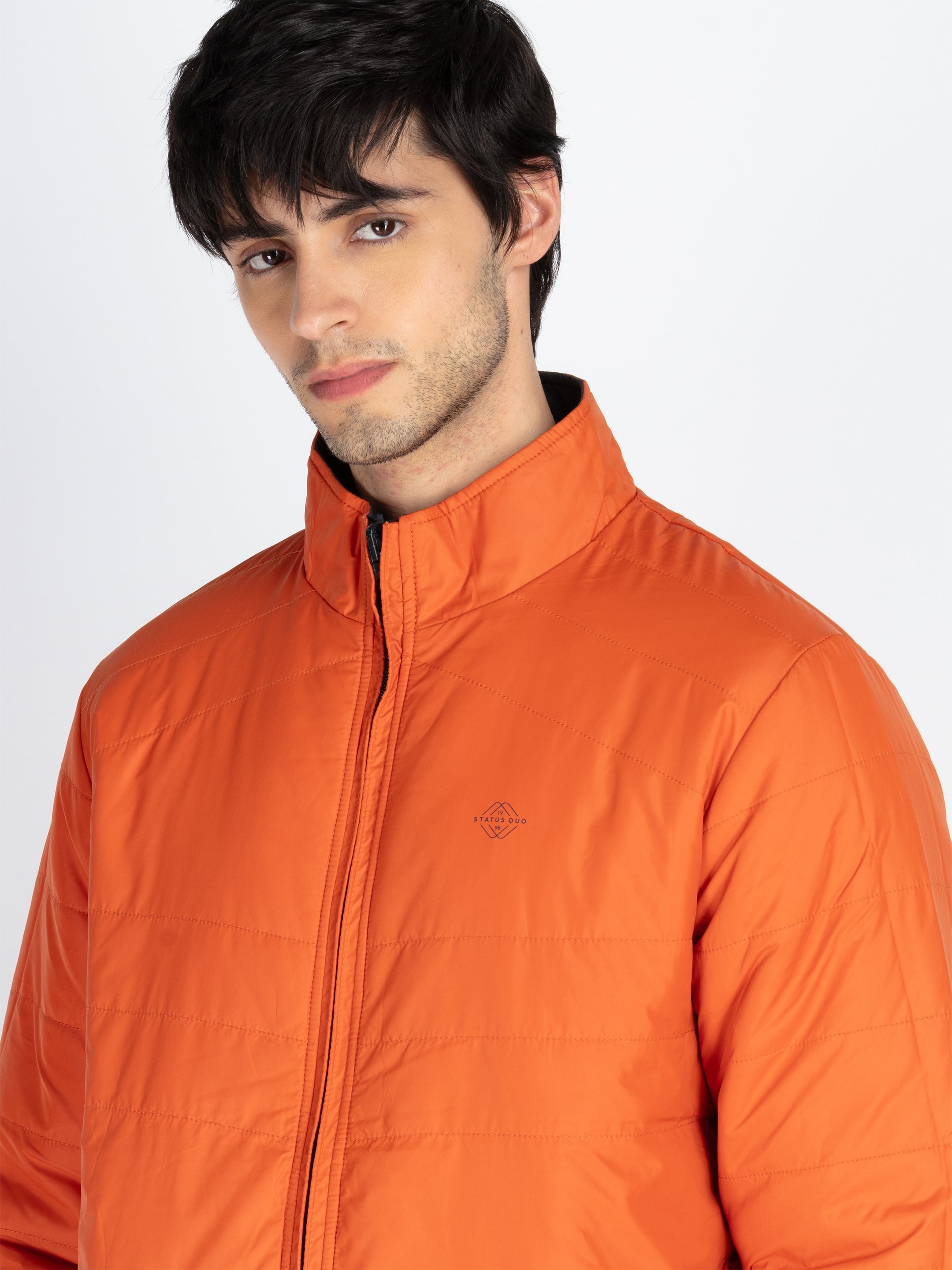 BT Orange Navy Mens Quilted Reversible High Neck Jacket with Full Sleeves