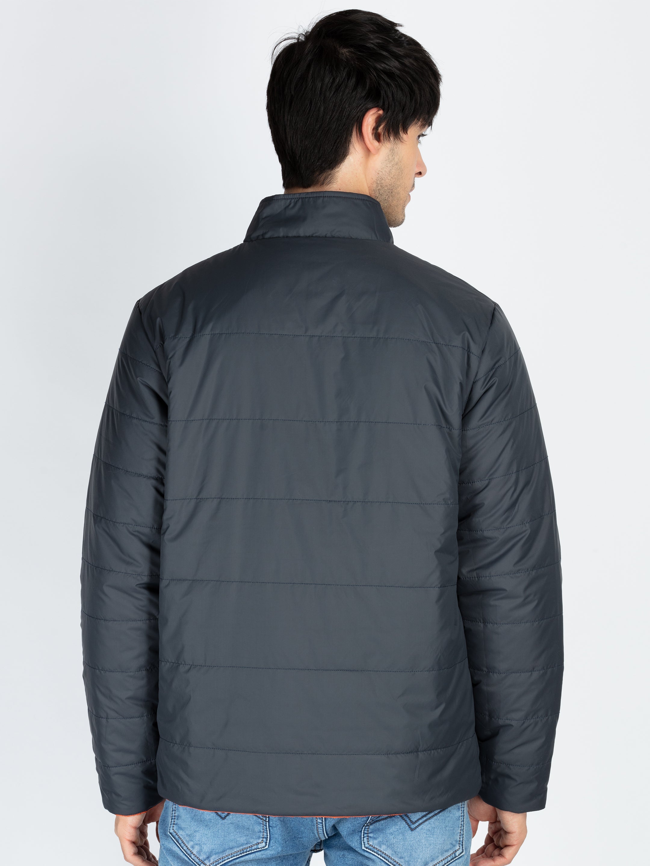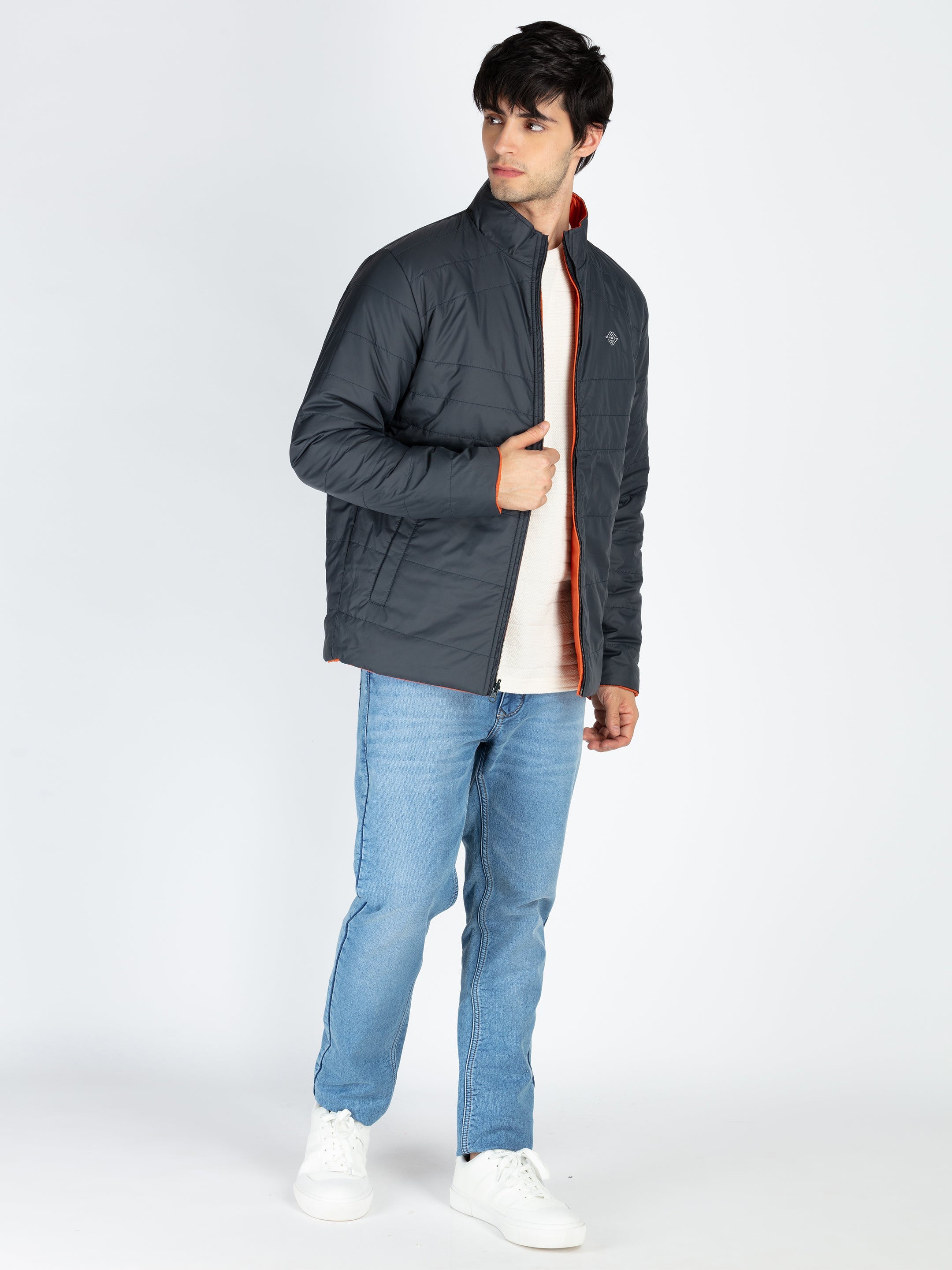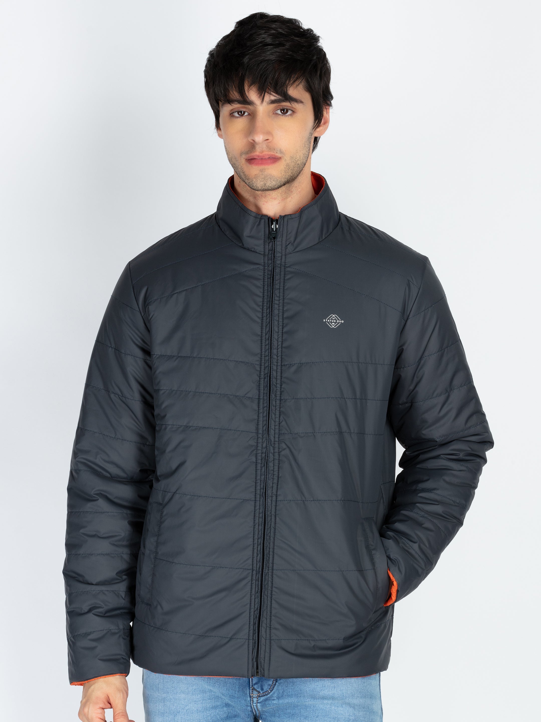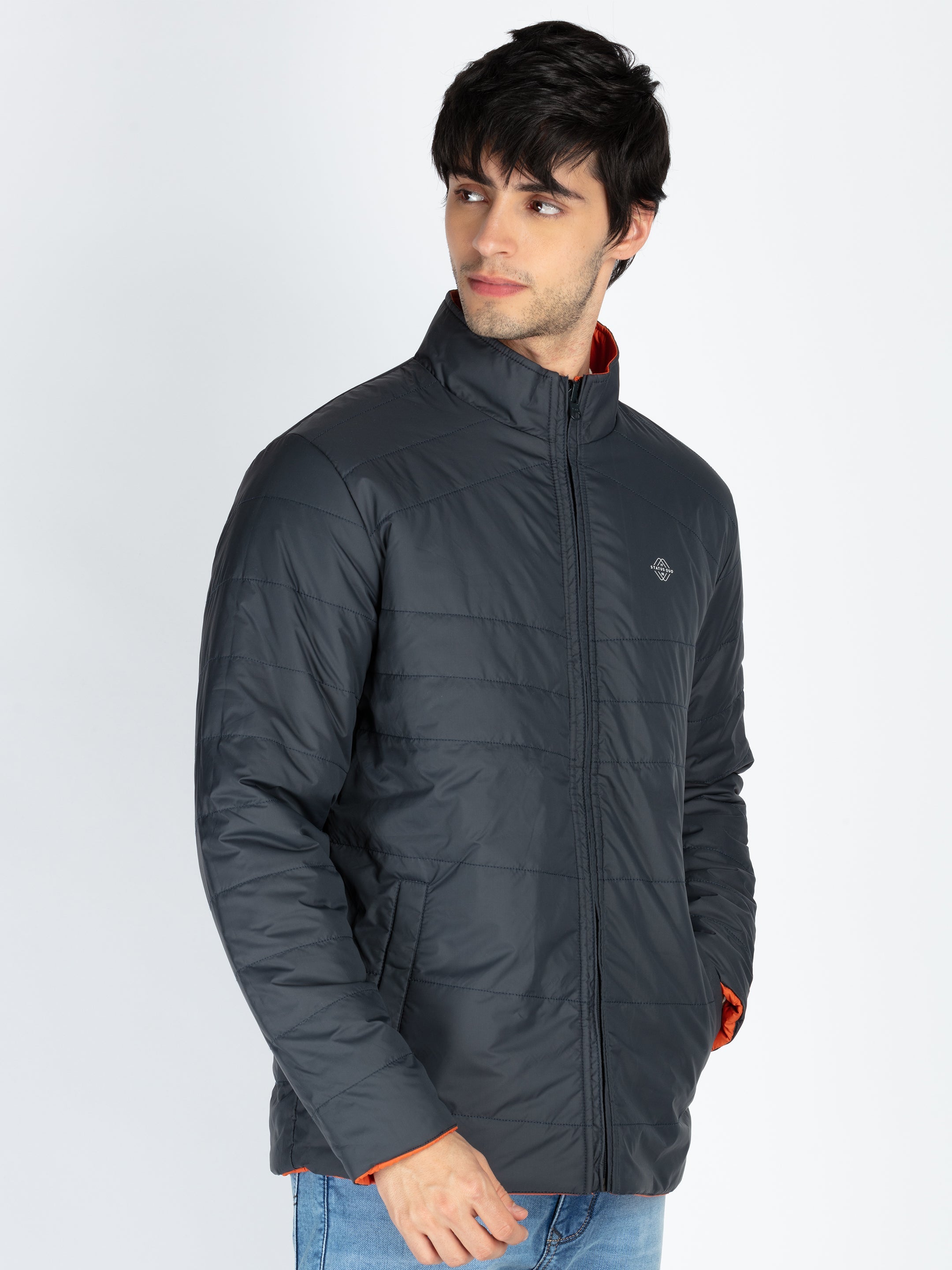 BT Orange Navy Mens Quilted Reversible High Neck Jacket with Full Sleeves