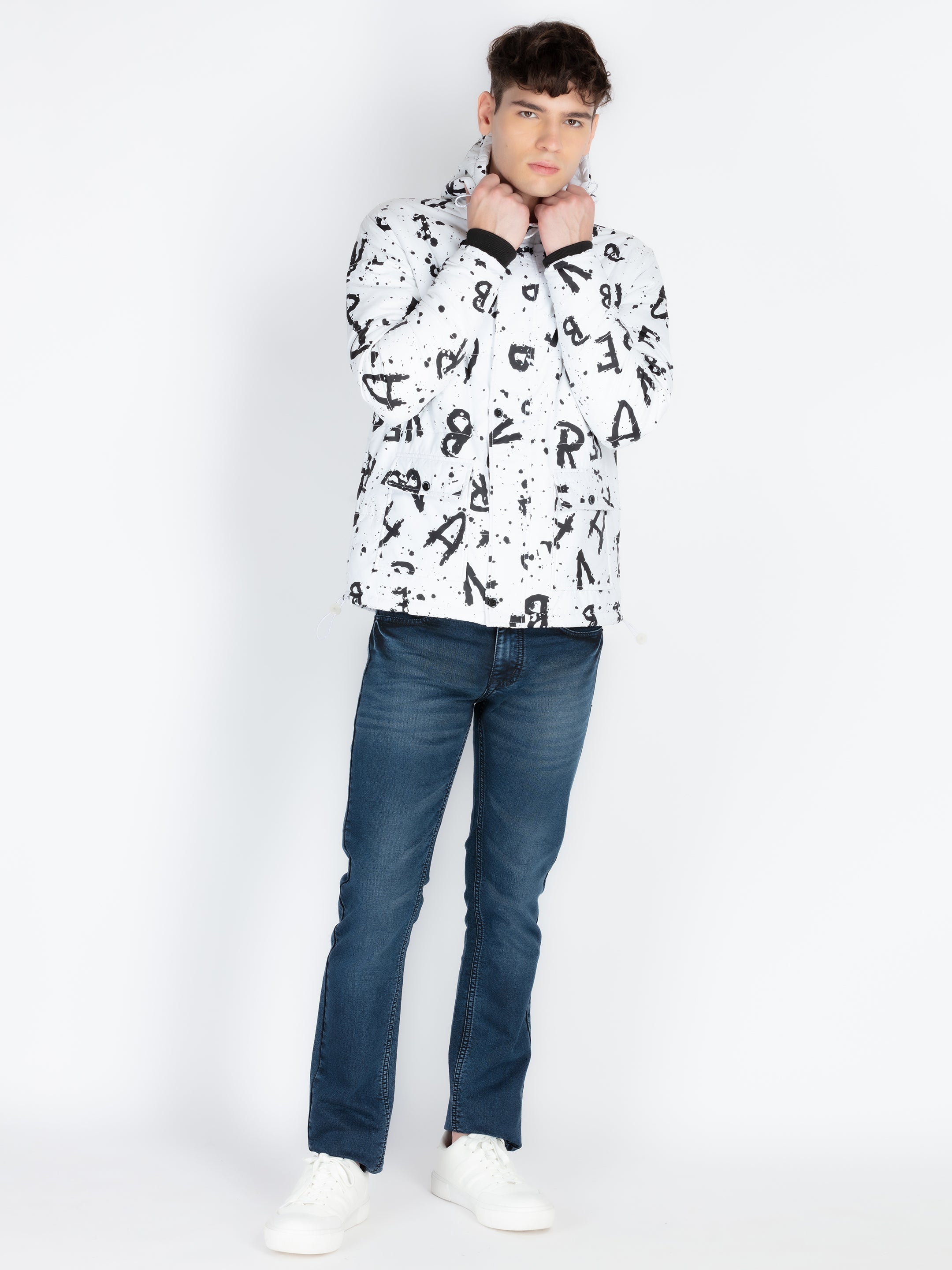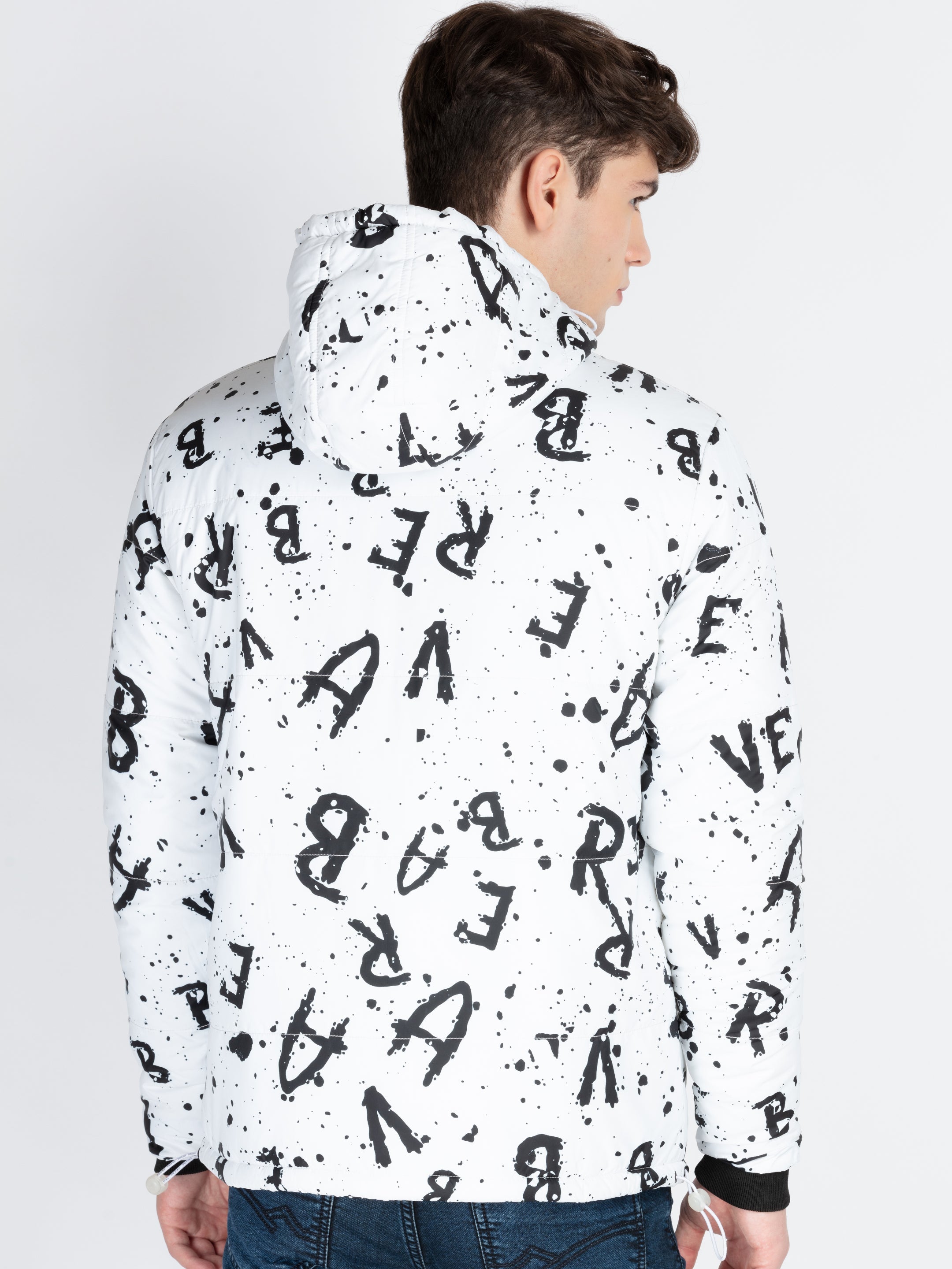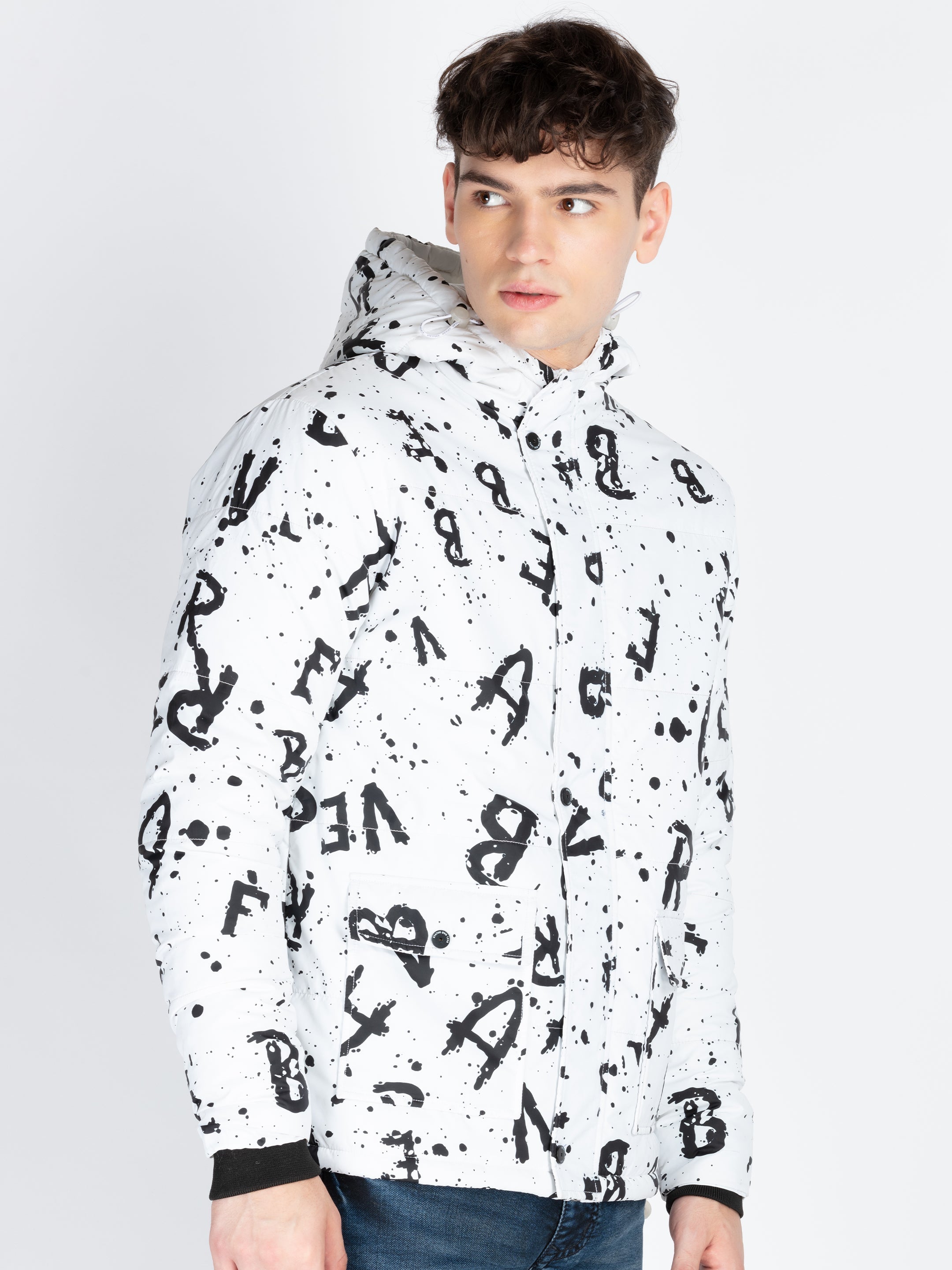 White/Black Mens Printed Padded Jacket Has High Neck with Sleeveless.