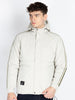 Beige Mens Solid Open Front Jacket Has Hooded Neck with Full Sleeve.