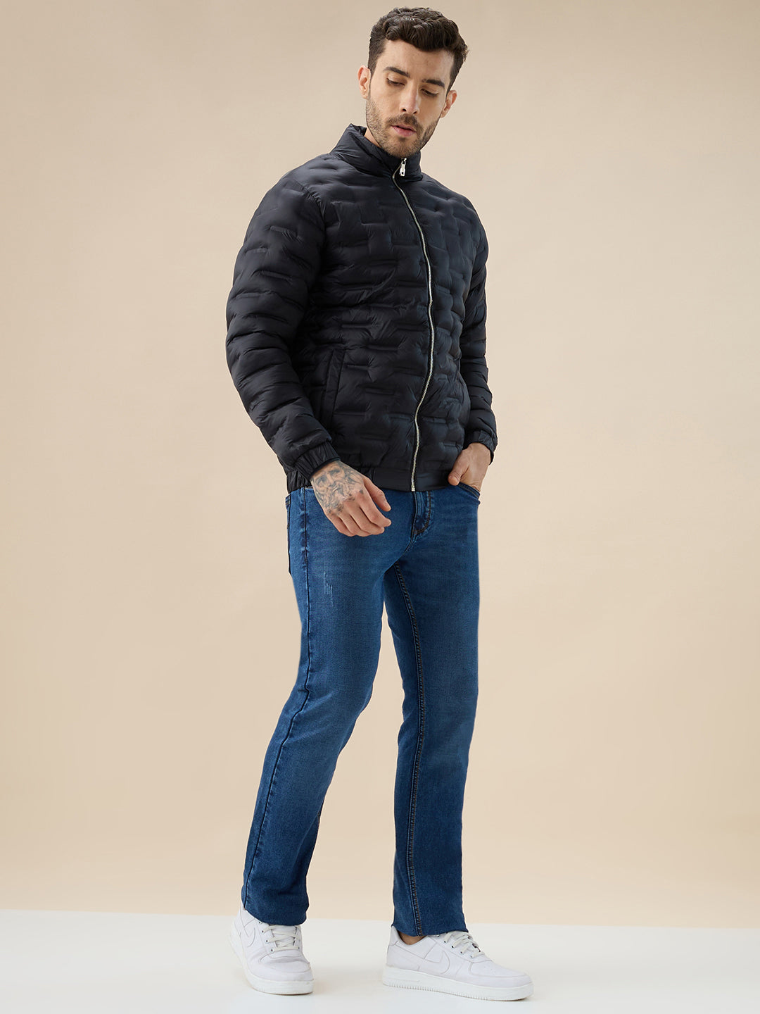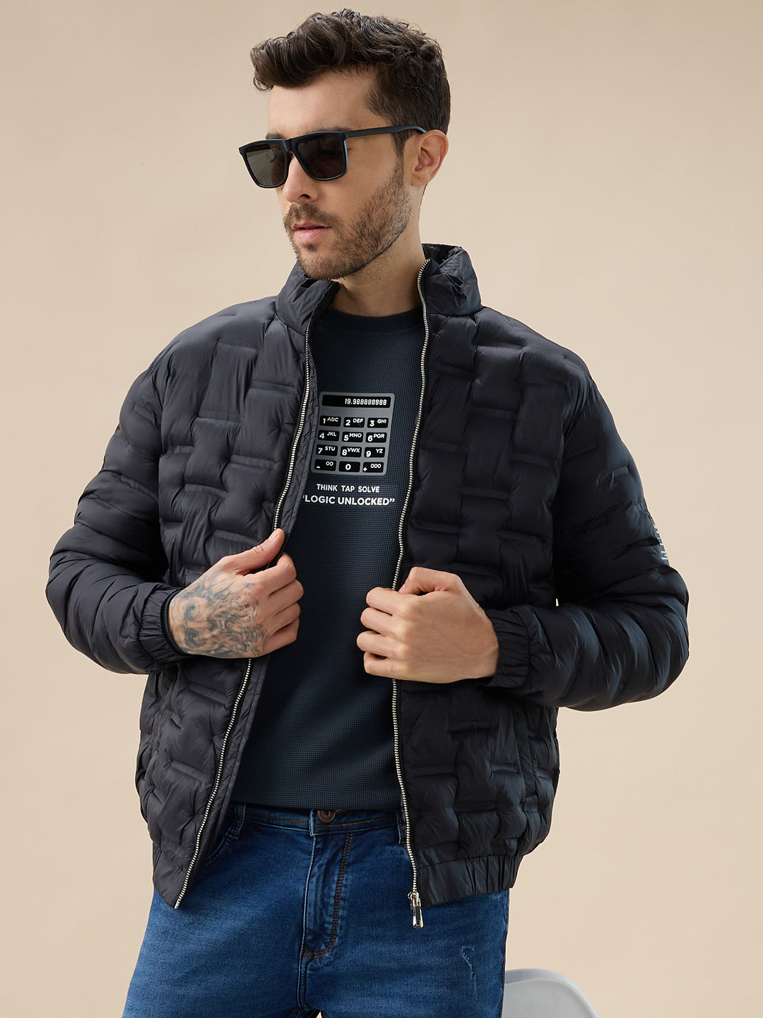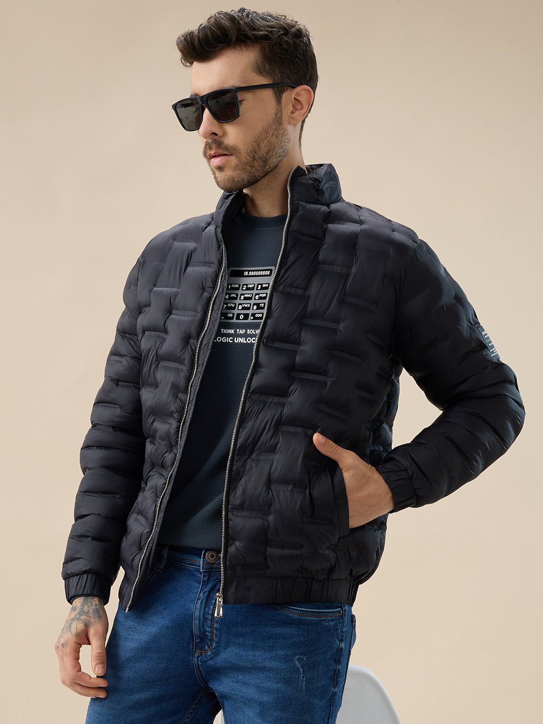 BLACK Status Quo Men's Solid Quilted Mock Collar Full Sleeves Puffer Jacket