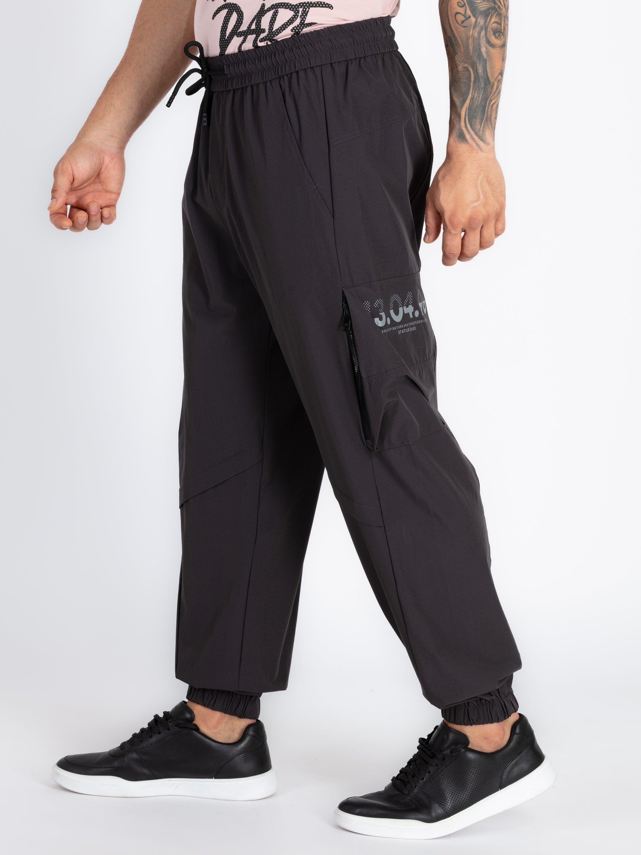CHARCOAL Solid Joggers Has Side Pockets, Drawstring