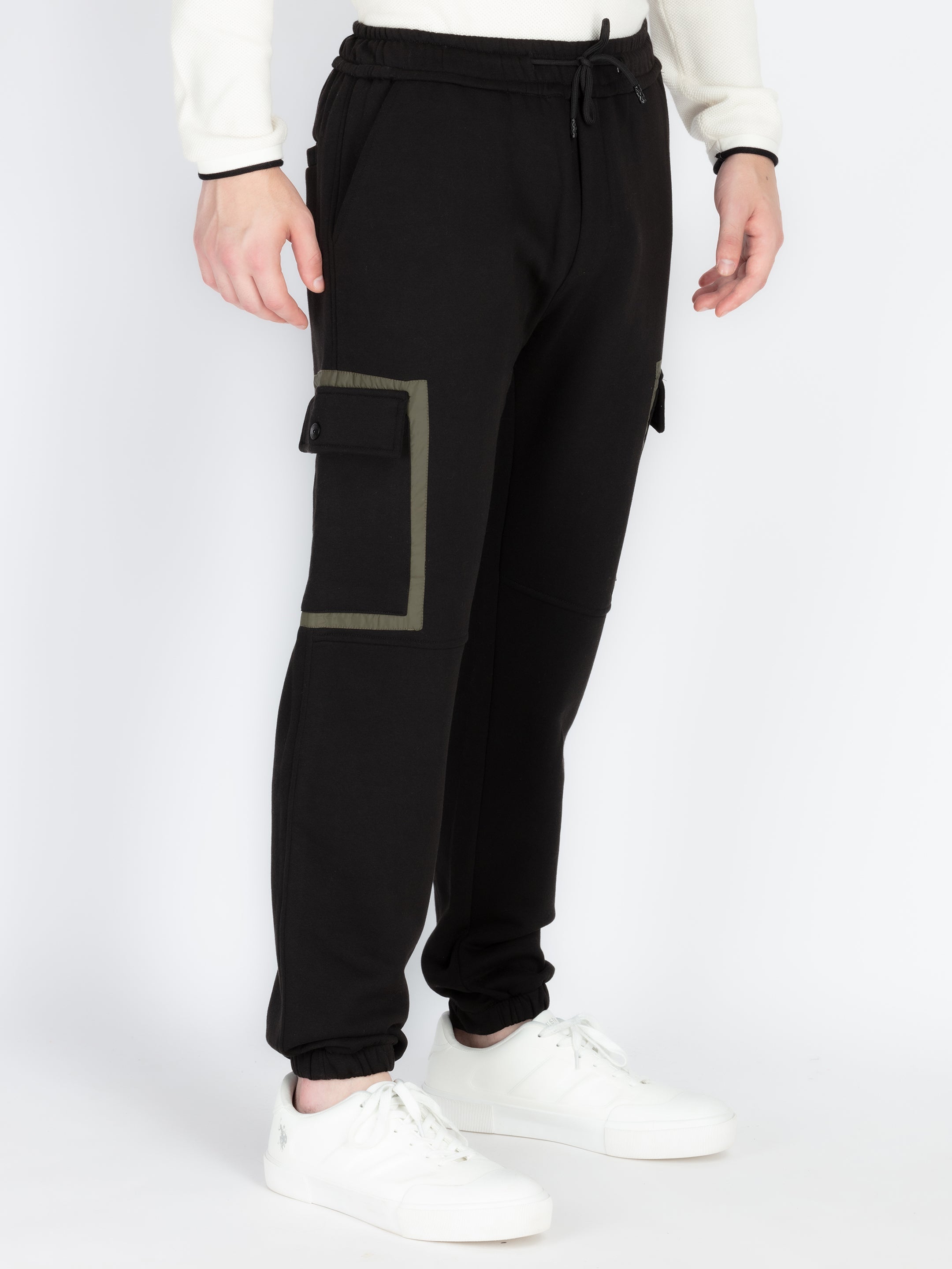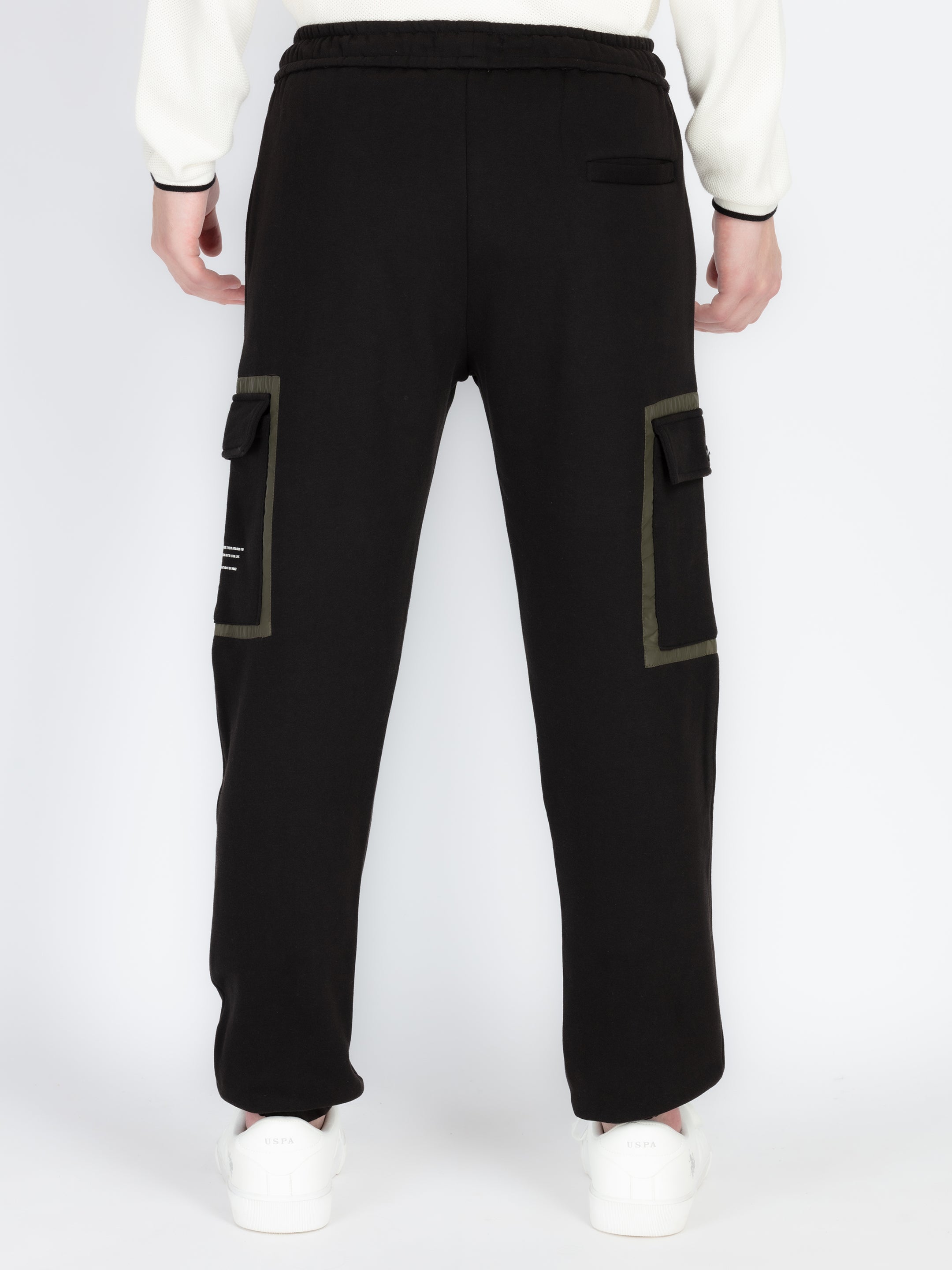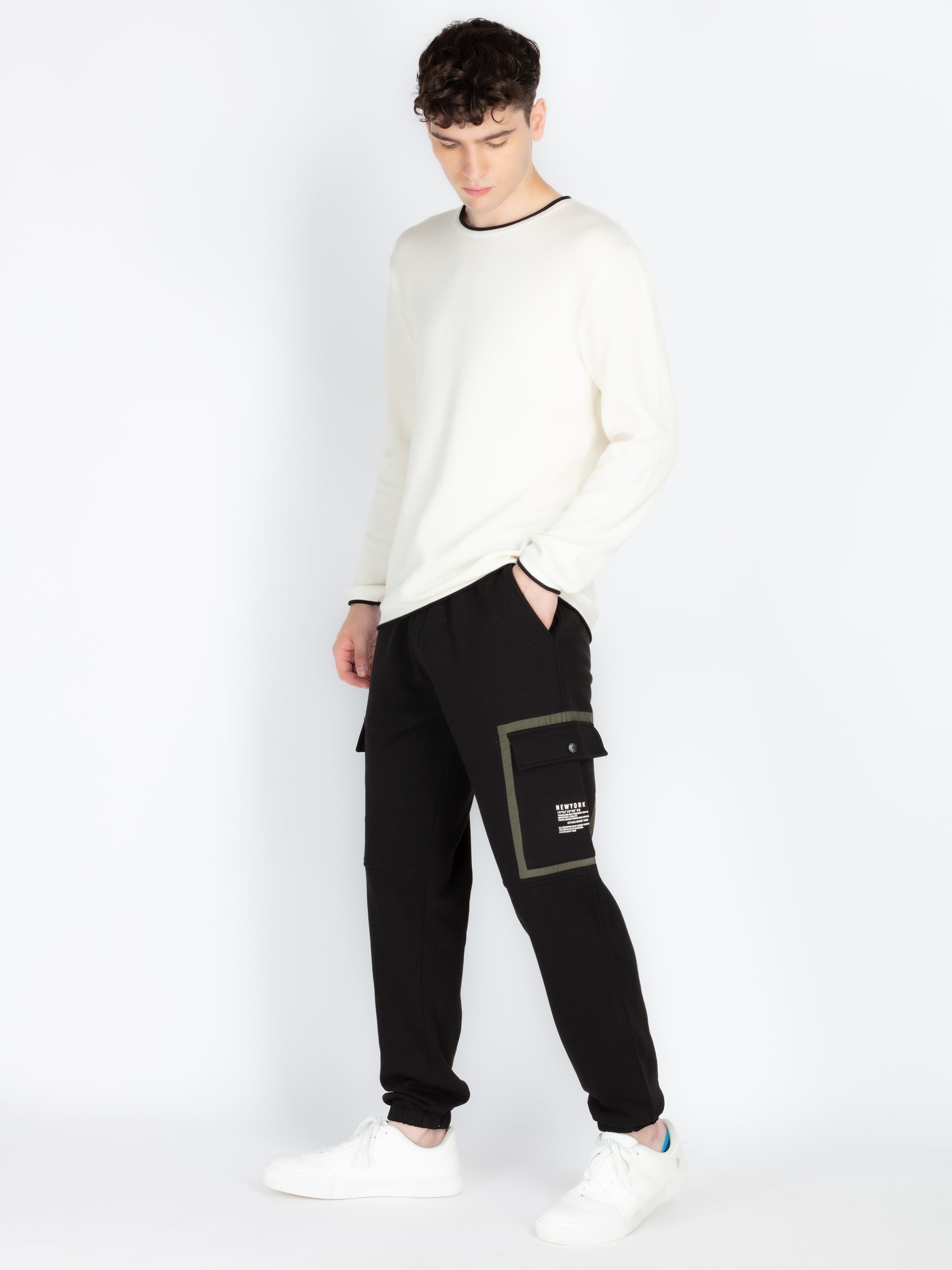 BLACK Self design Joggers Has Side Pockets & Drawstring