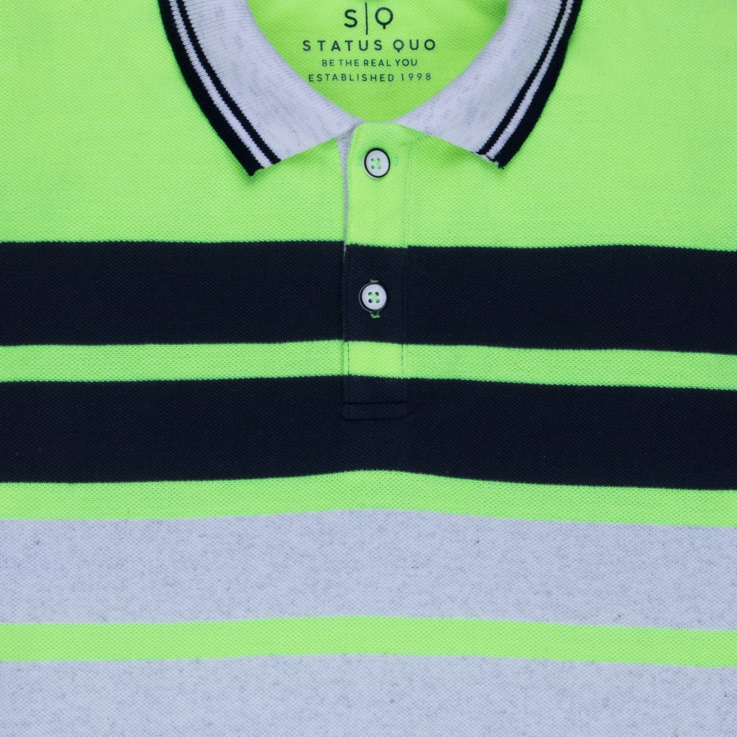 F.GREEN/CHARCOAL Striped T-shirt has Polo Neck, Half Sleeves