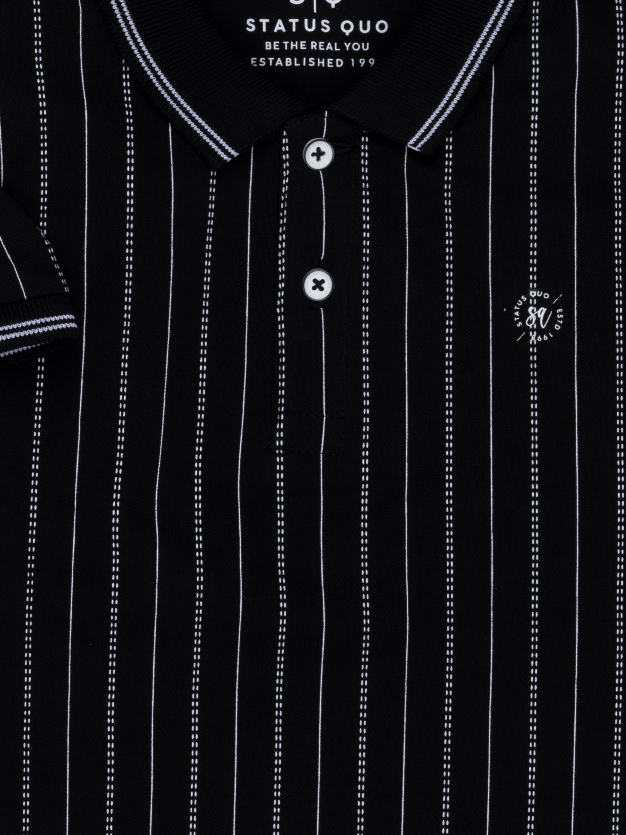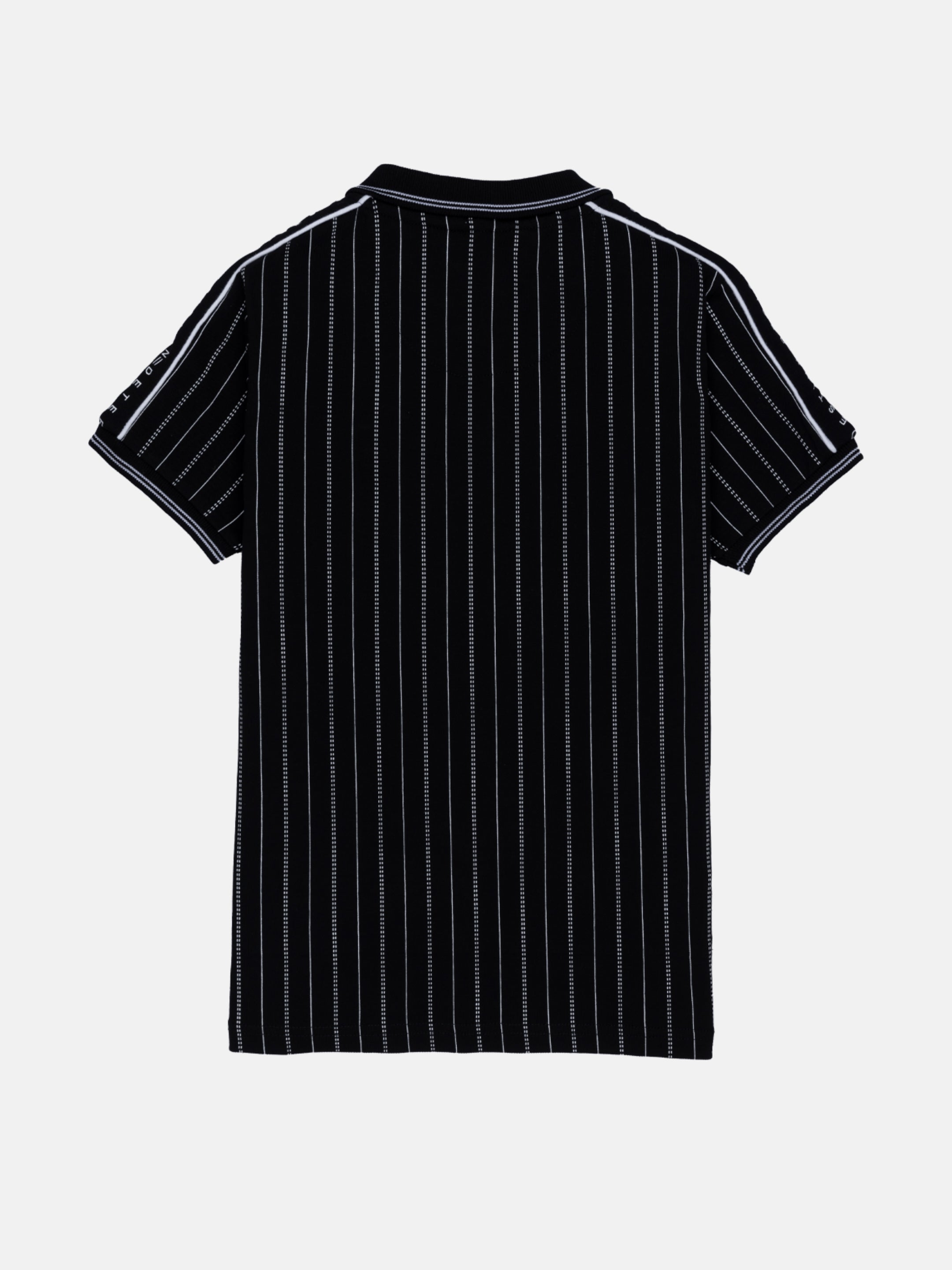 BLACK Printed T-shirt has Polo Neck, Half Sleeves