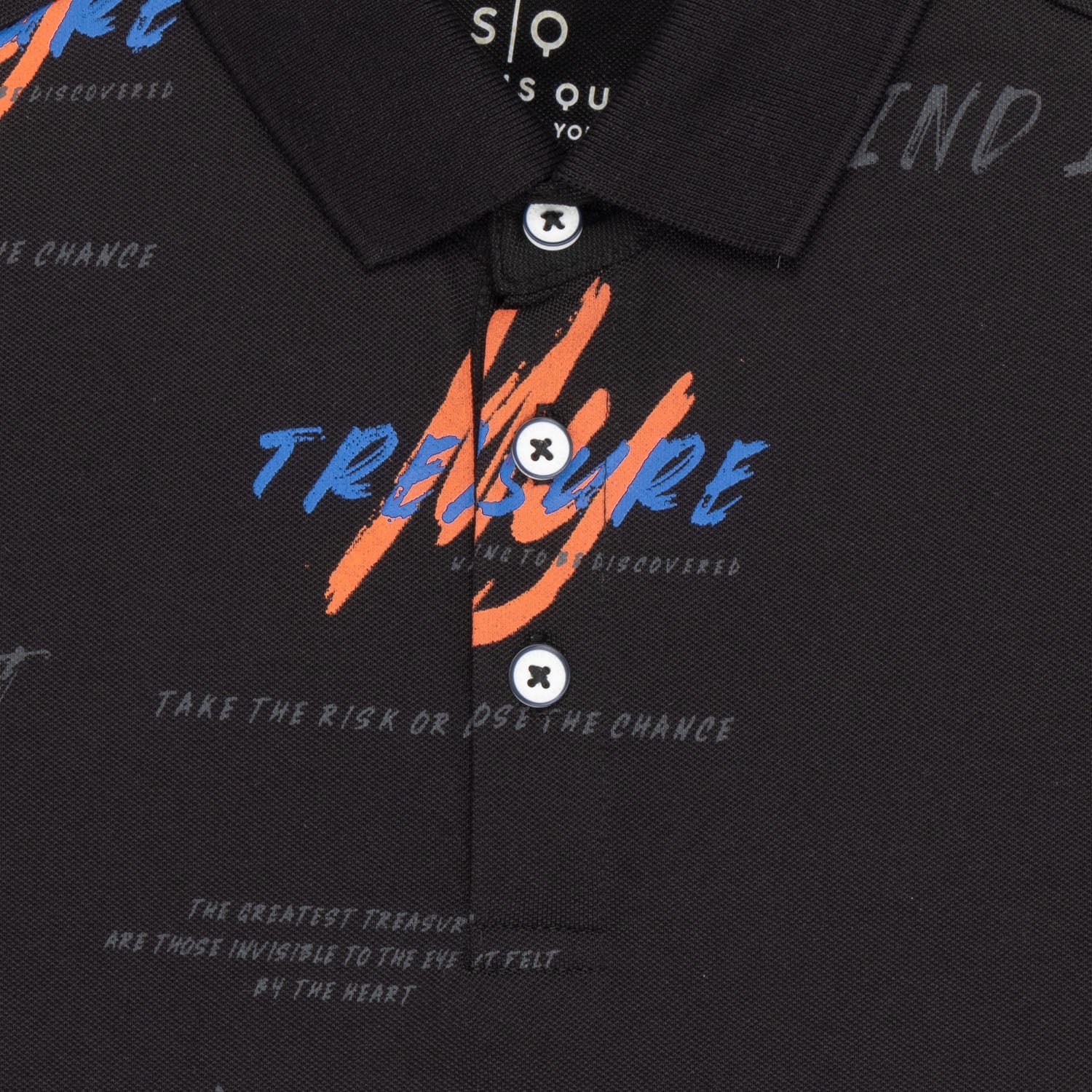 BLACK Printed Polo T-Shirt Has, Half Sleeves