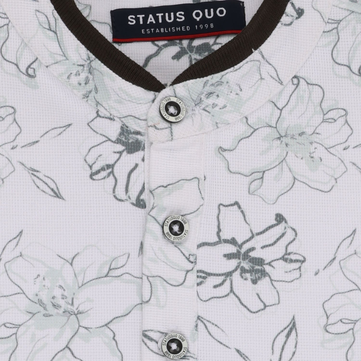 OLIVE Status Quo Boys All-Over Floral Printed Henley Neck Tshirt