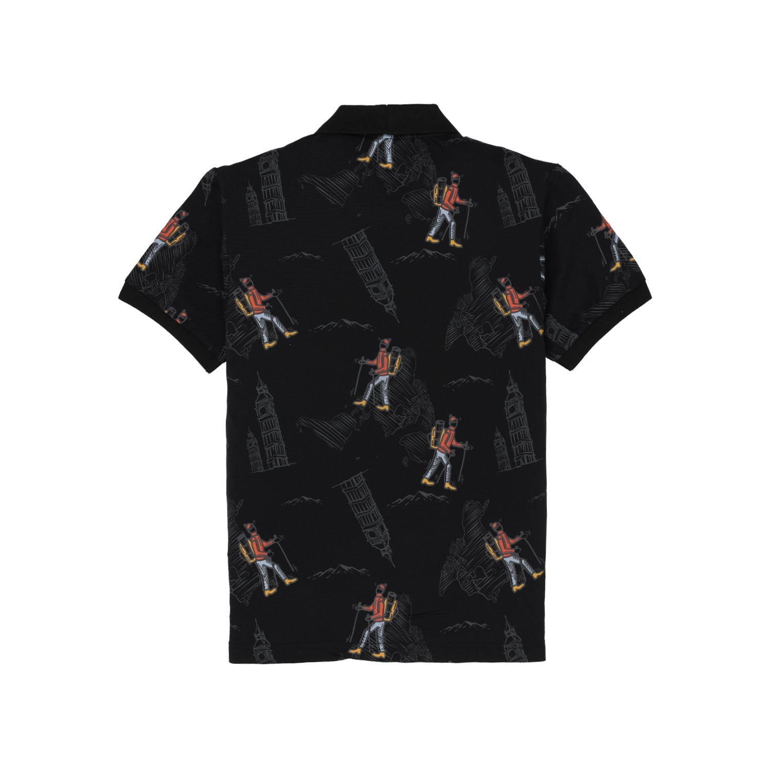BLACK Status Quo Boys All-Over People and Places Printed Polo Collar Tshirt