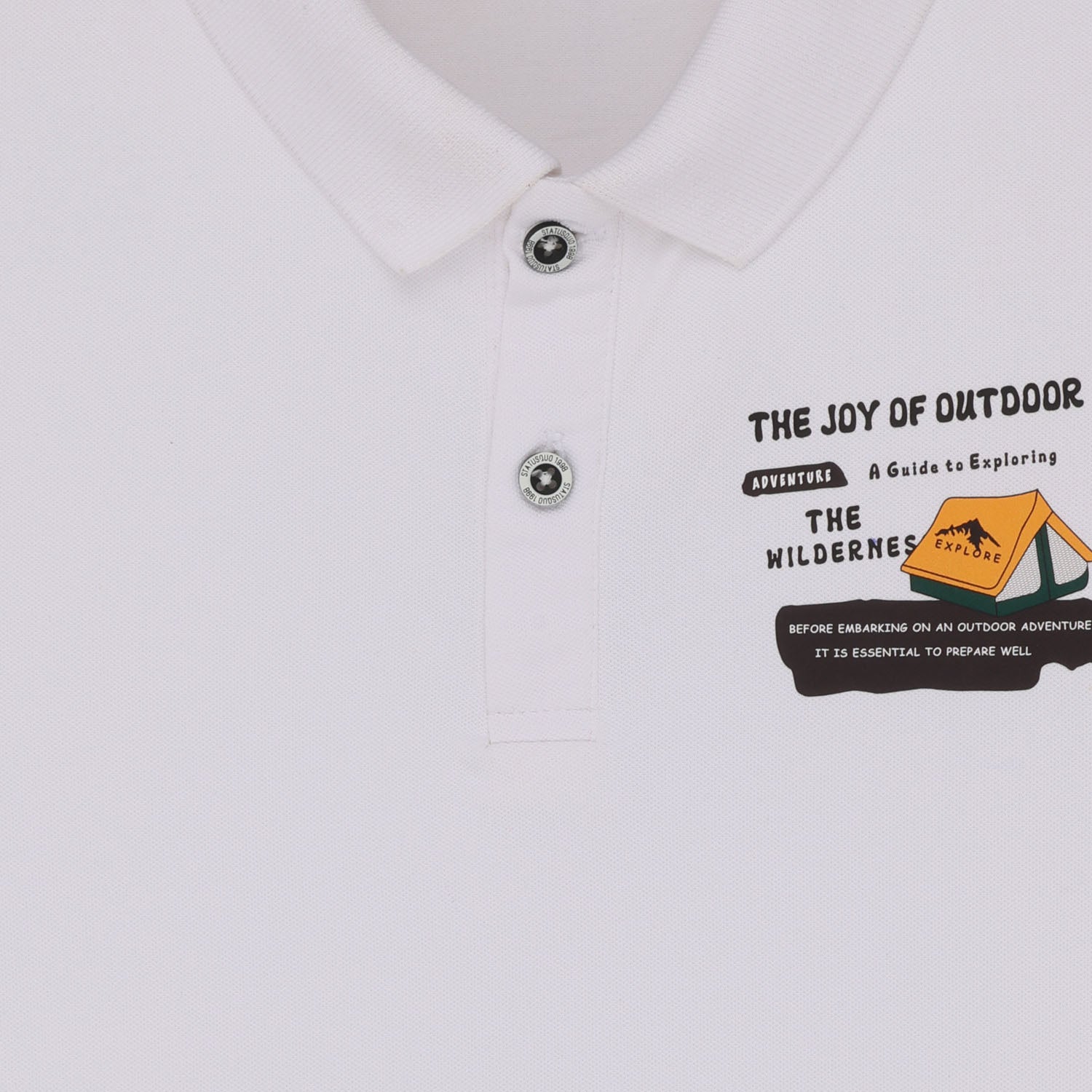 WHITE Status Quo Boys Placement Typography Printed Polo Collar Tshirt
