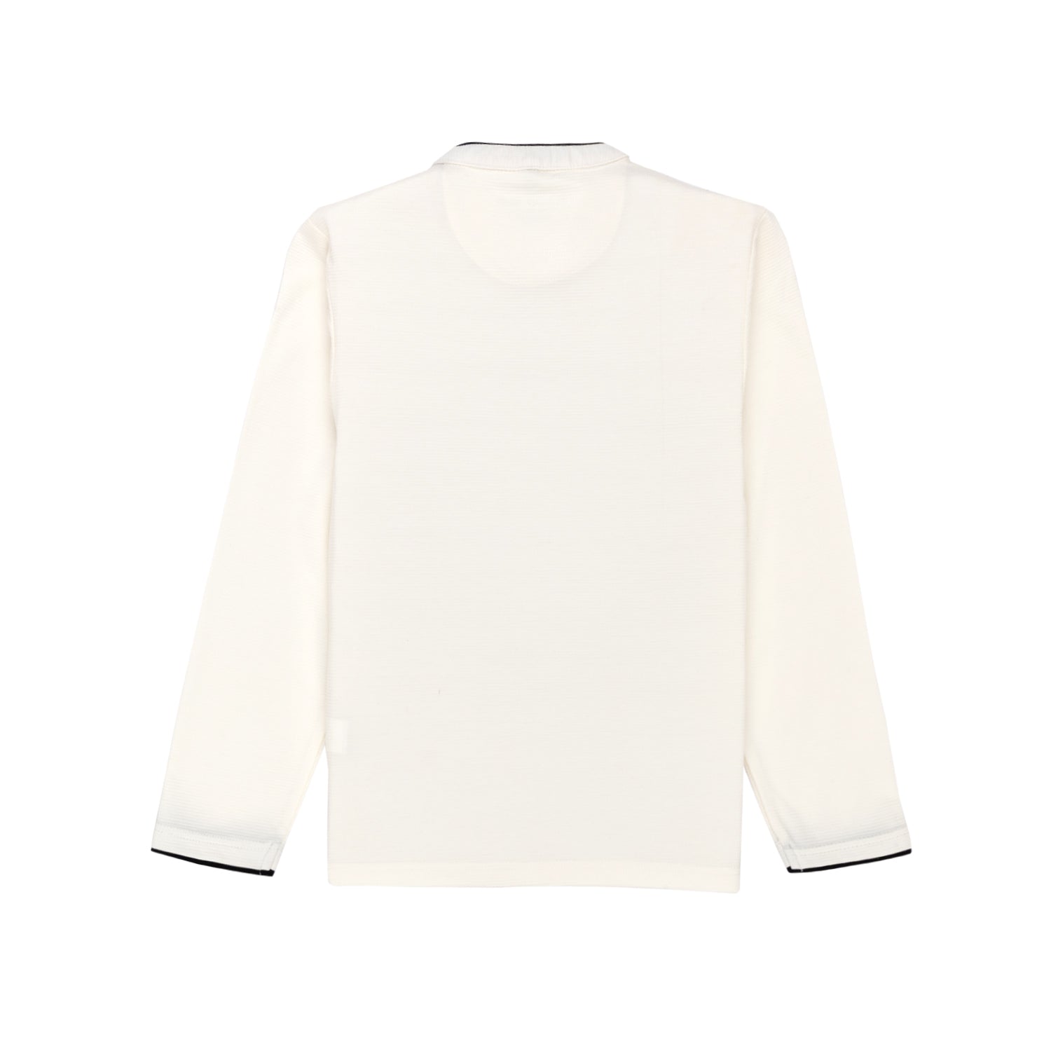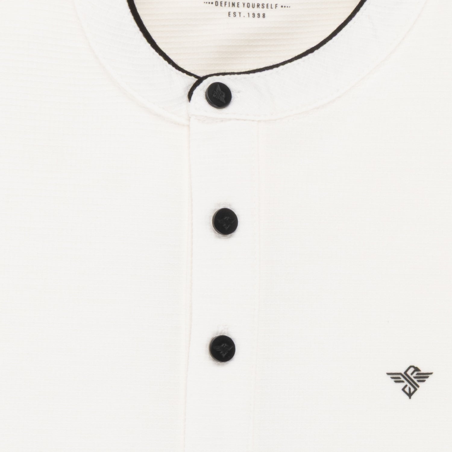 OFF WHITE Boys Solid Henley Neck Full Sleeves Regular Fit T-Shirt With Chest Brand Logo