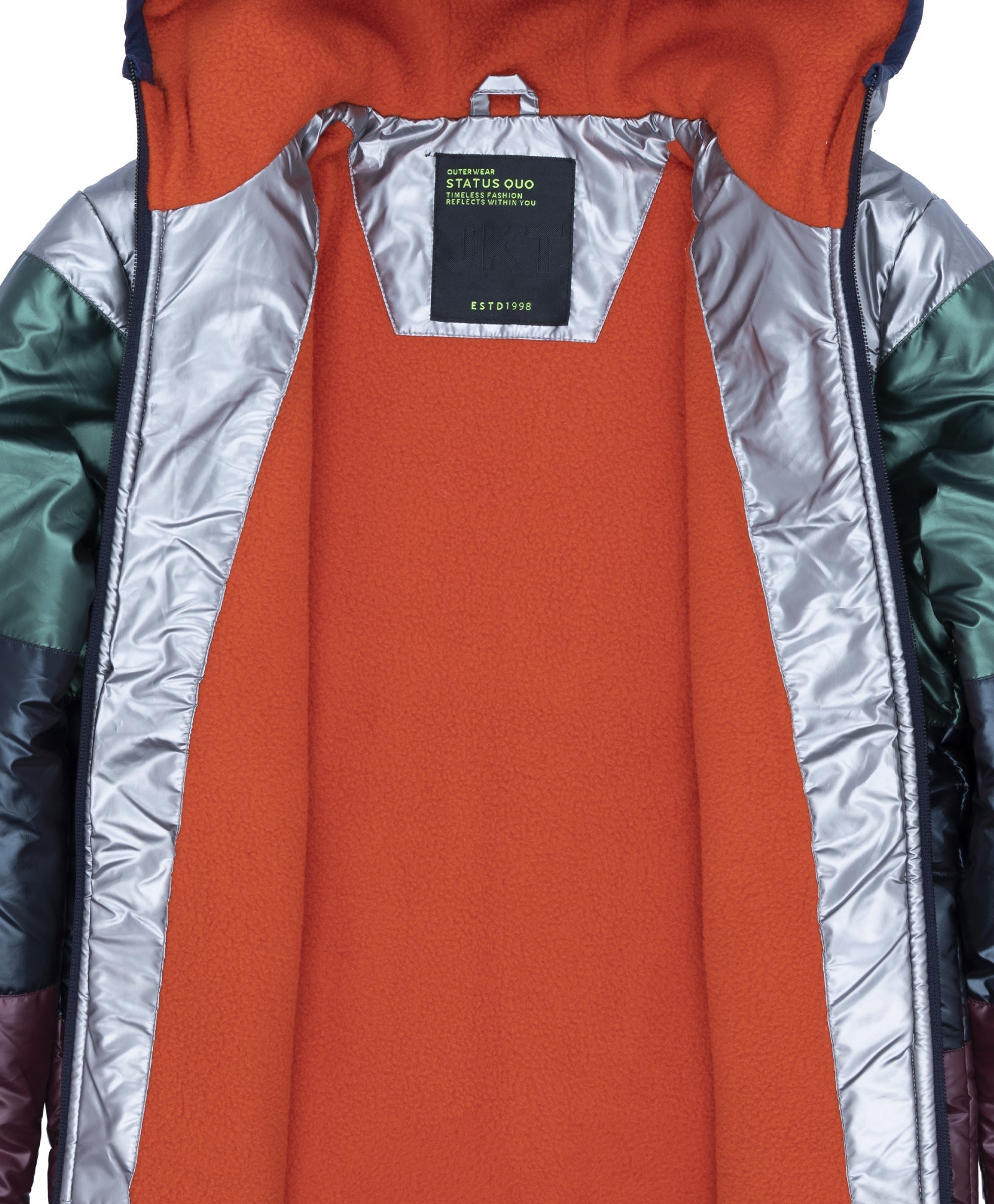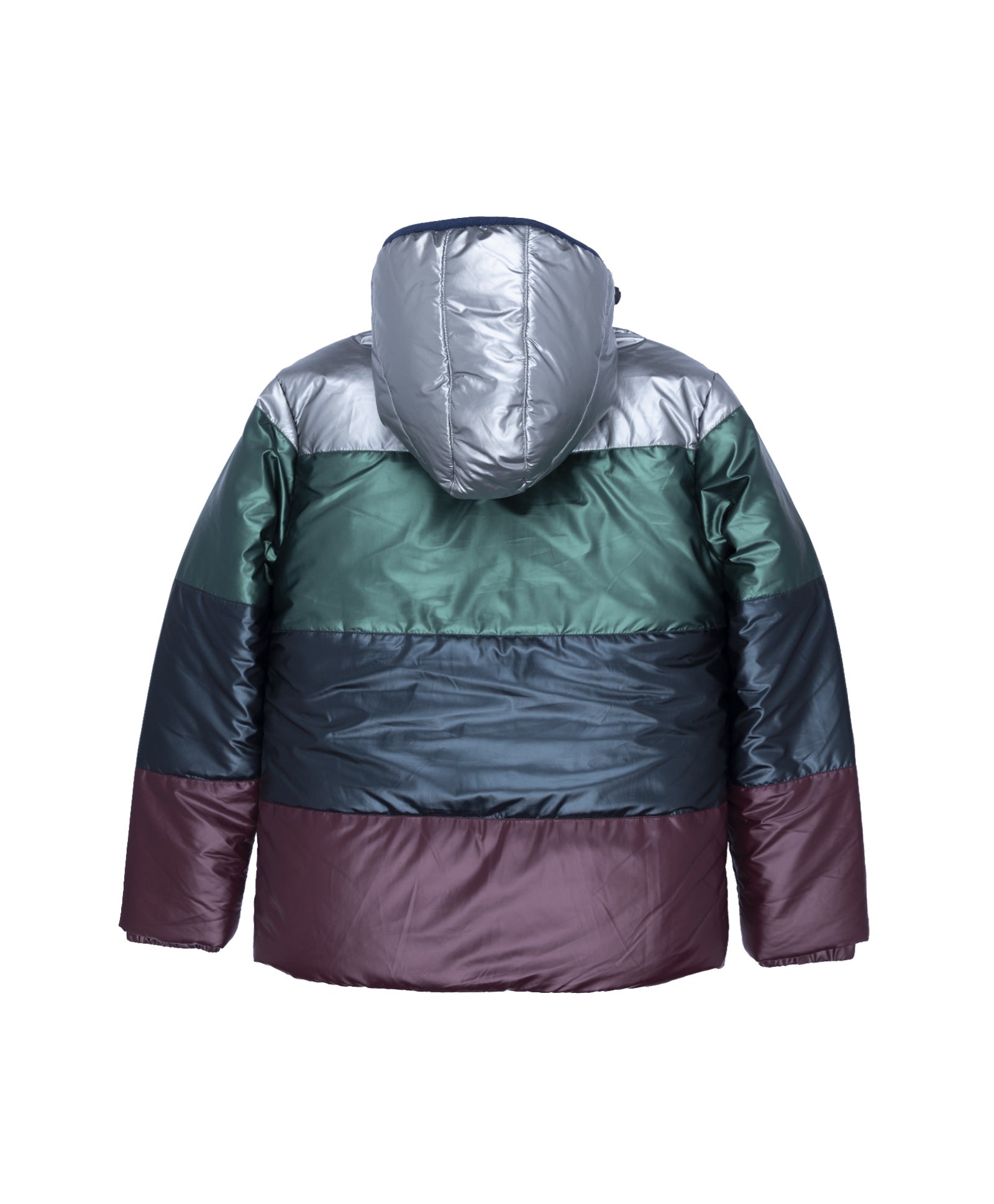 Silver/Green Printed Jacket With Hooded Neck, Zipper, Full Sleeves