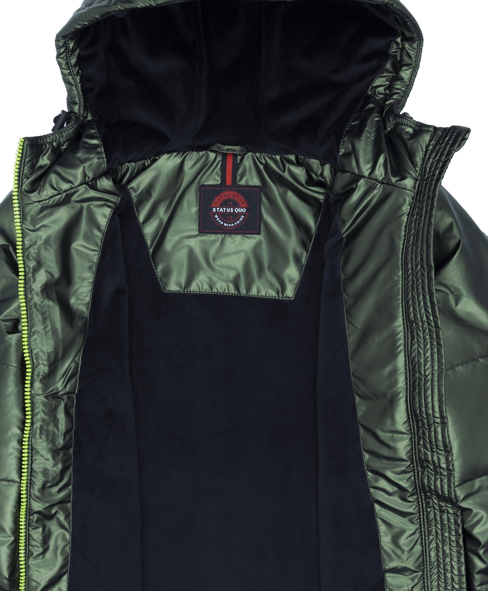 Olive Printed Jacket With Quilting Technique, Zipper, Full Sleeves