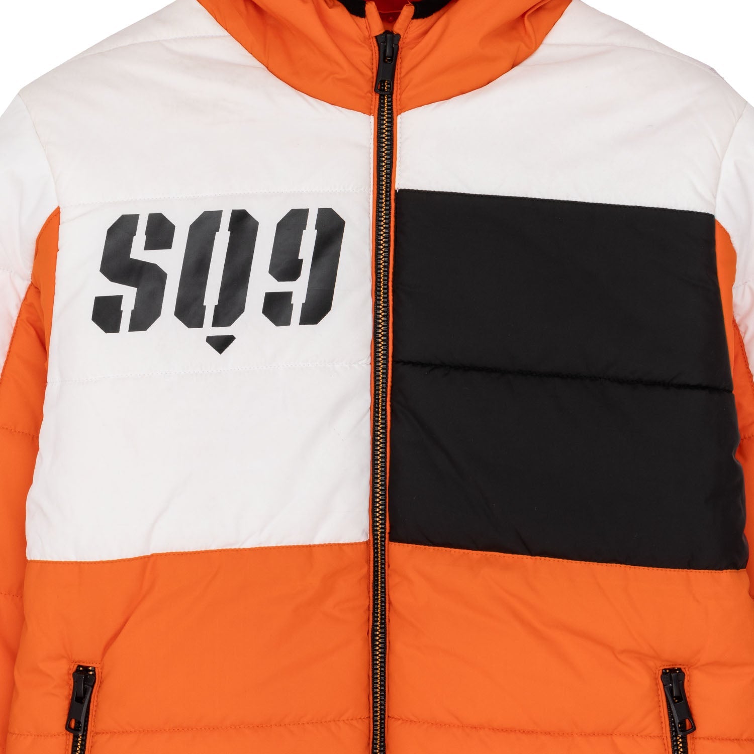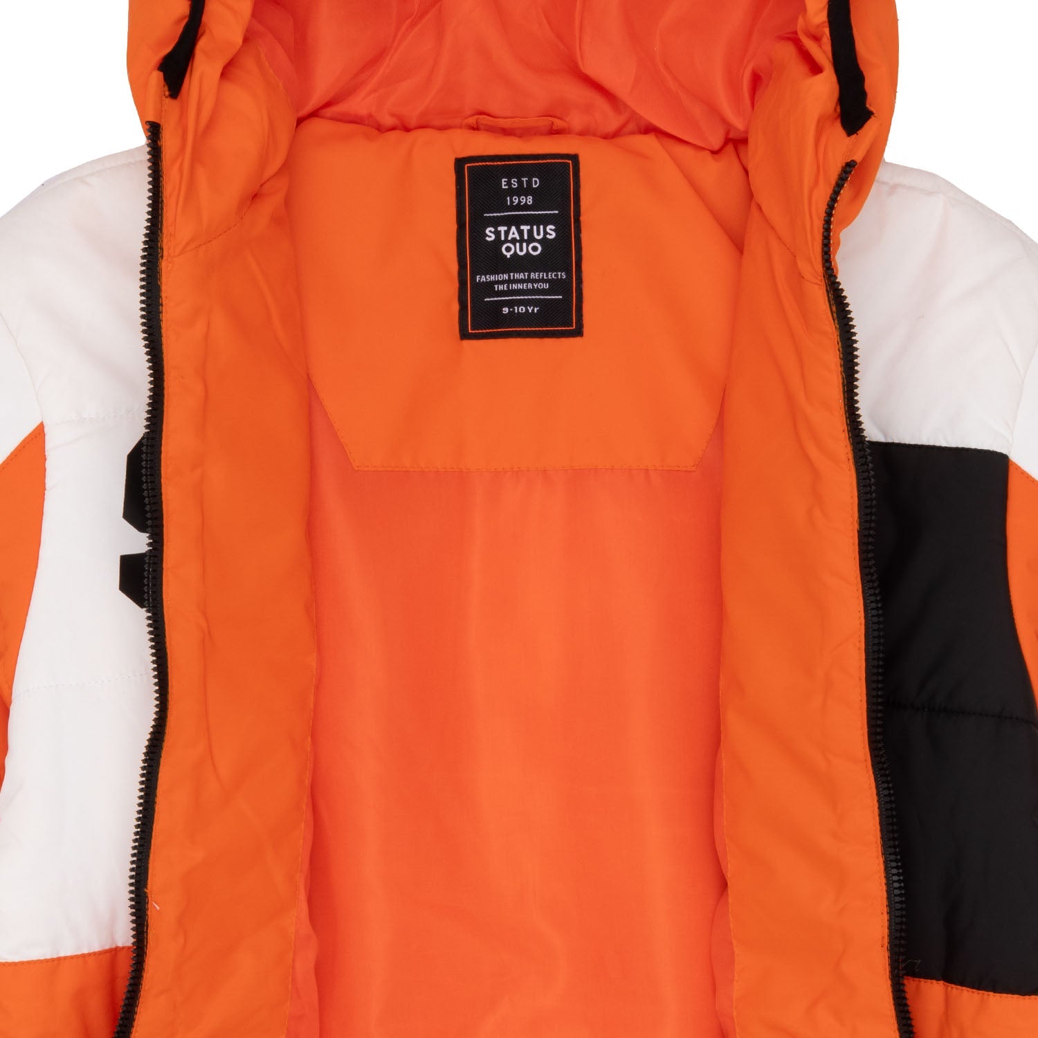 NEON ORANGE/WHITE Jacket With Hooded Neck, Zipper, Full Sleeves