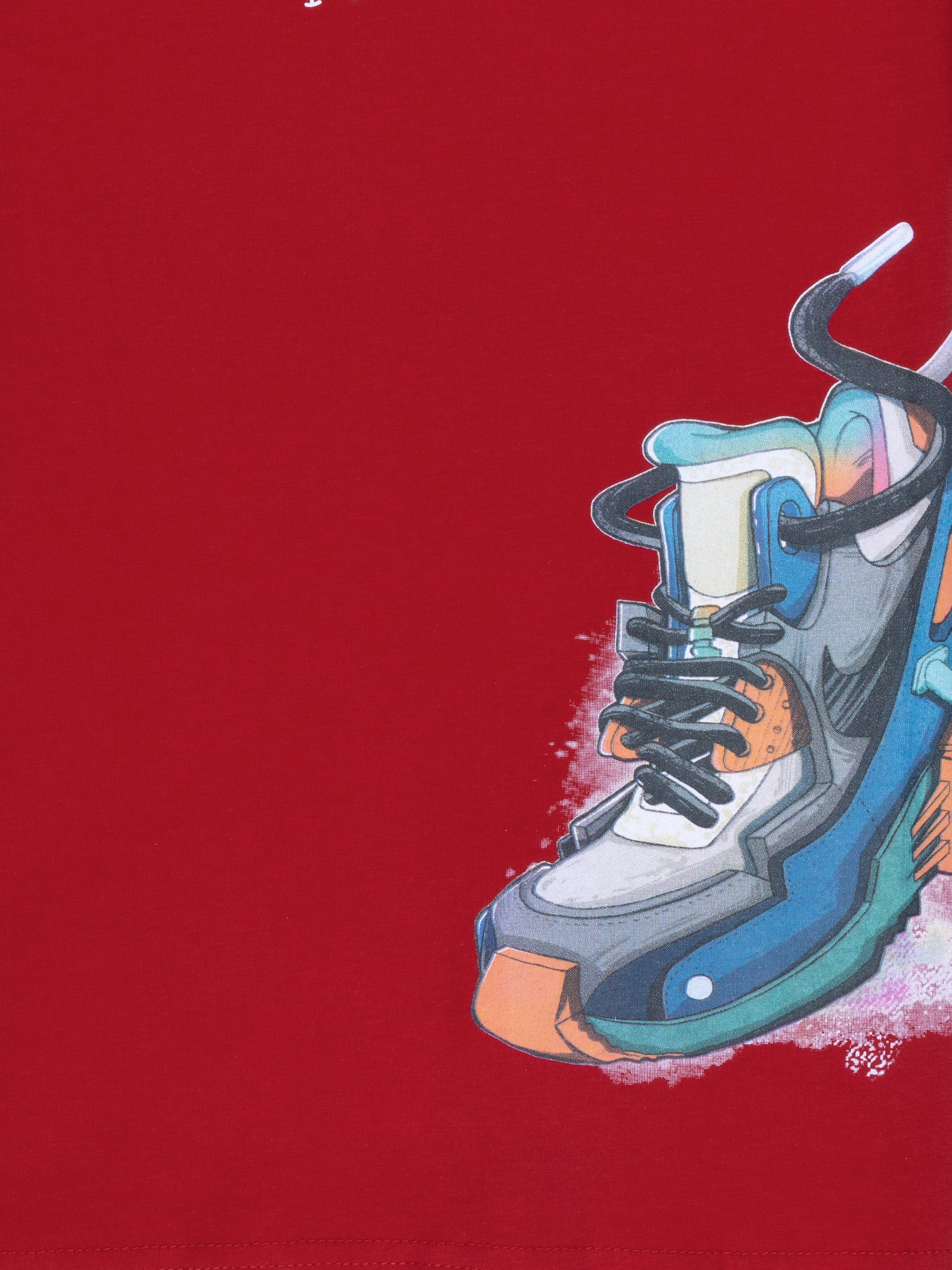 RED Printed T-shirt has Round Neck, Half Sleeves