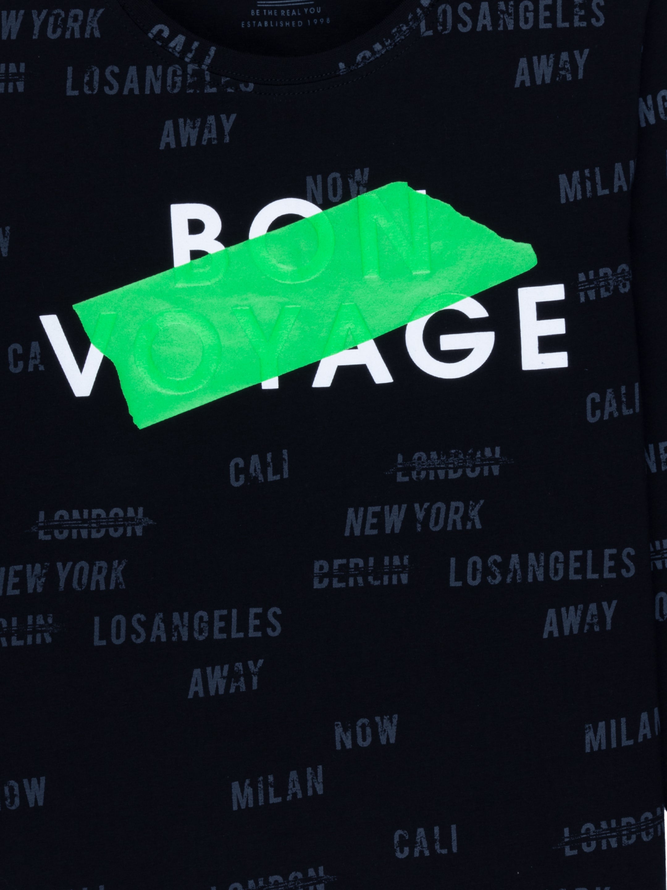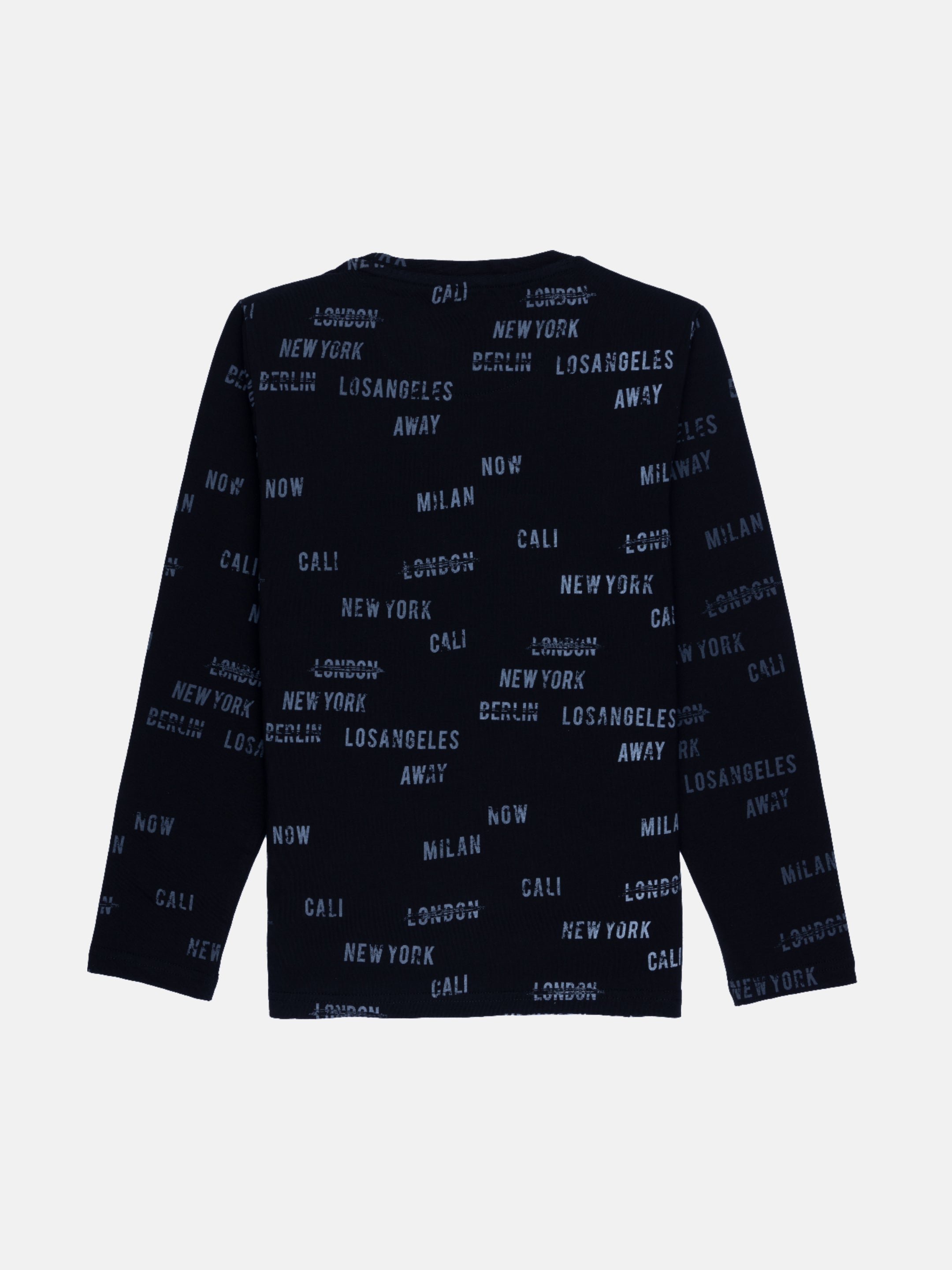 BLACK Printed T-shirt has Round Neck, Full Sleeves