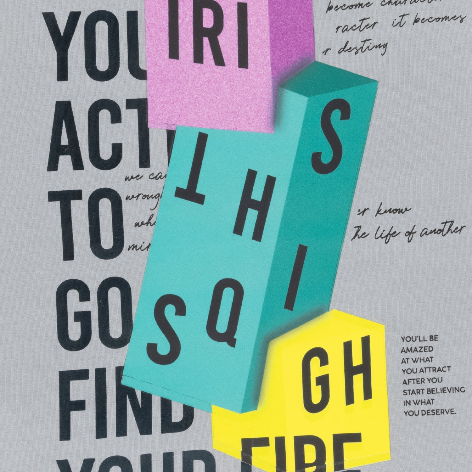 S.Grey Printed T-shirt has Round Neck, HALF SLEEVE