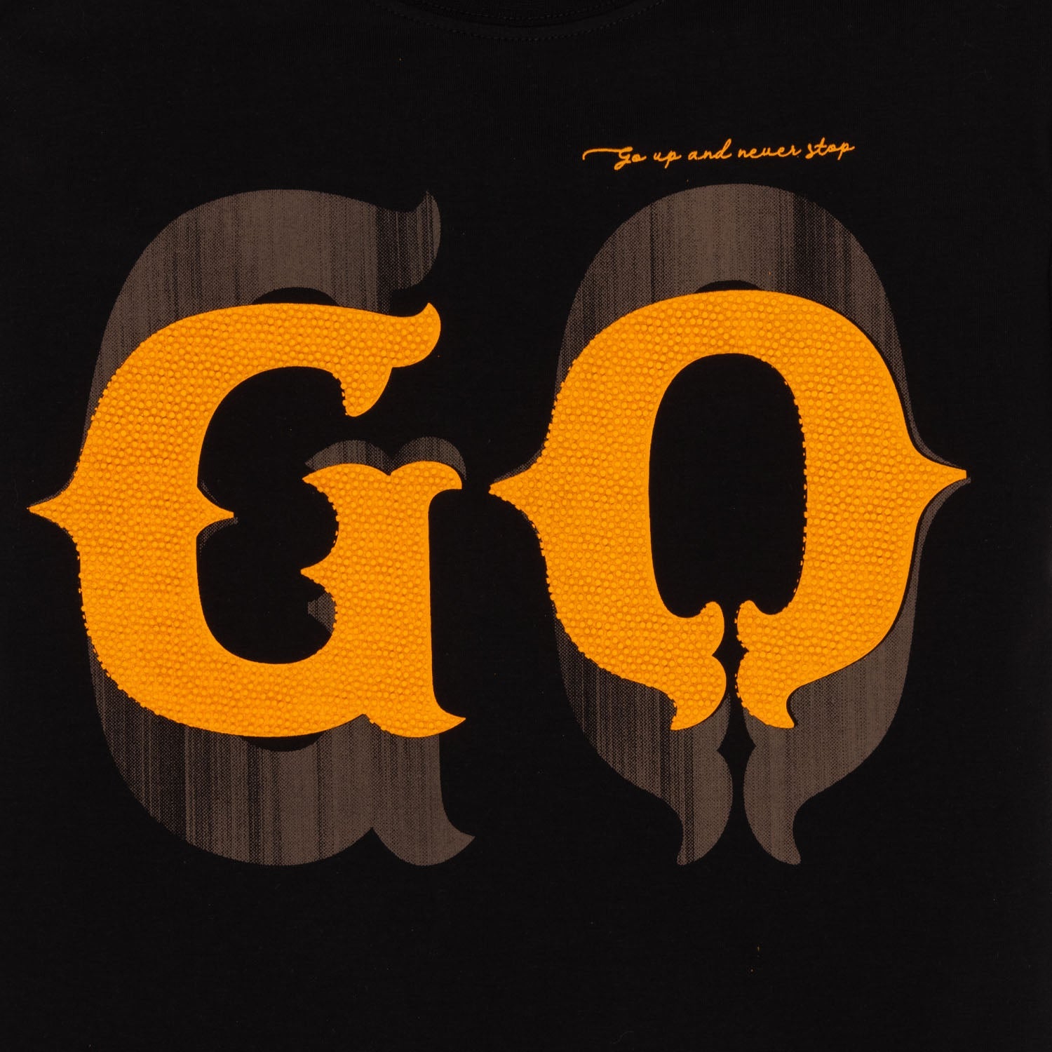 BLACK Printed T-Shirt has Round Neck, Half Sleeves