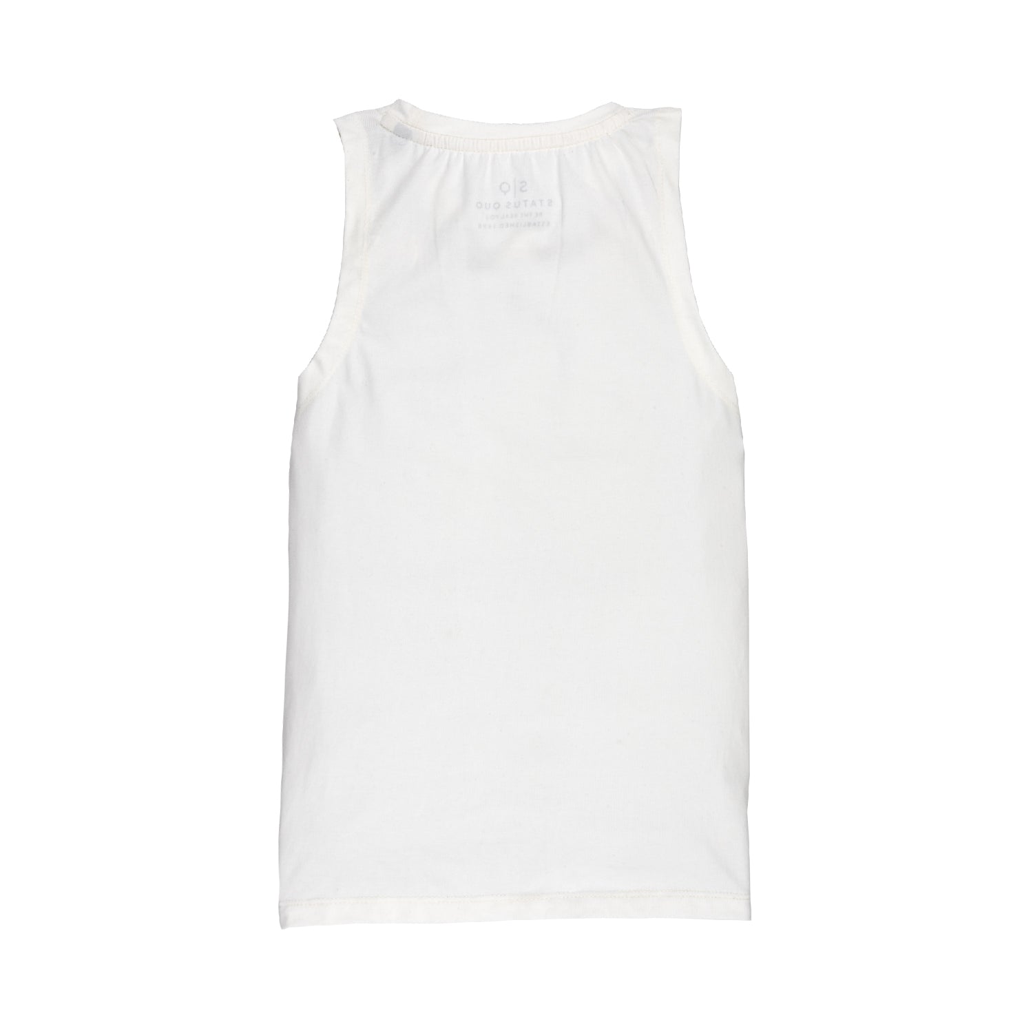 WHITE Printed T-Shirt has Round Neck, Sleeveless