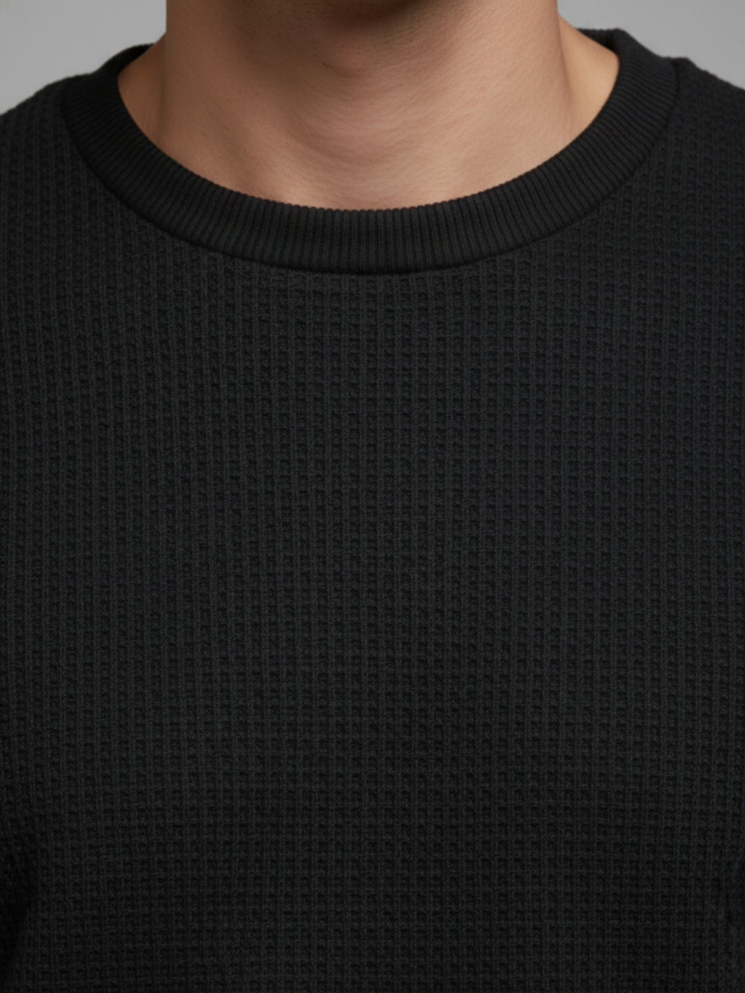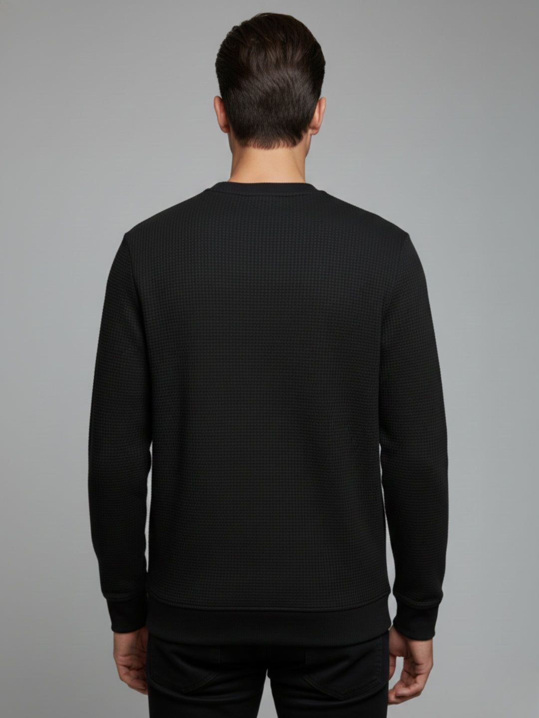 BLACK Men's Solid Textured Round Neck Full Sleeves Sweatshirt
