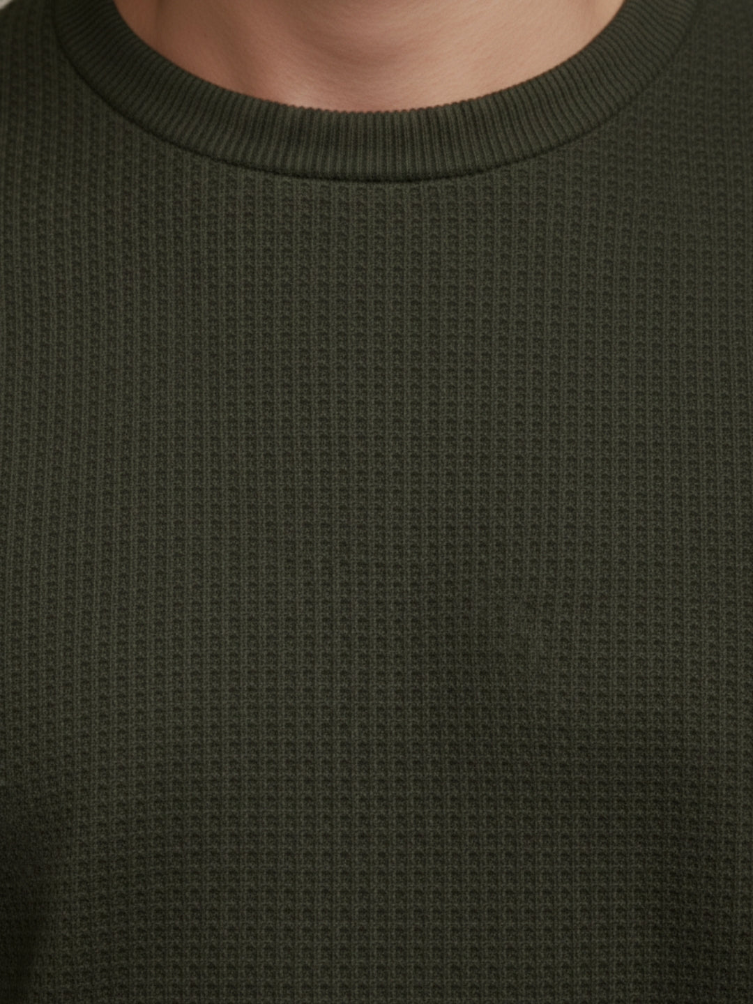 OLIVE Men's Solid Textured Round Neck Full Sleeves Sweatshirt