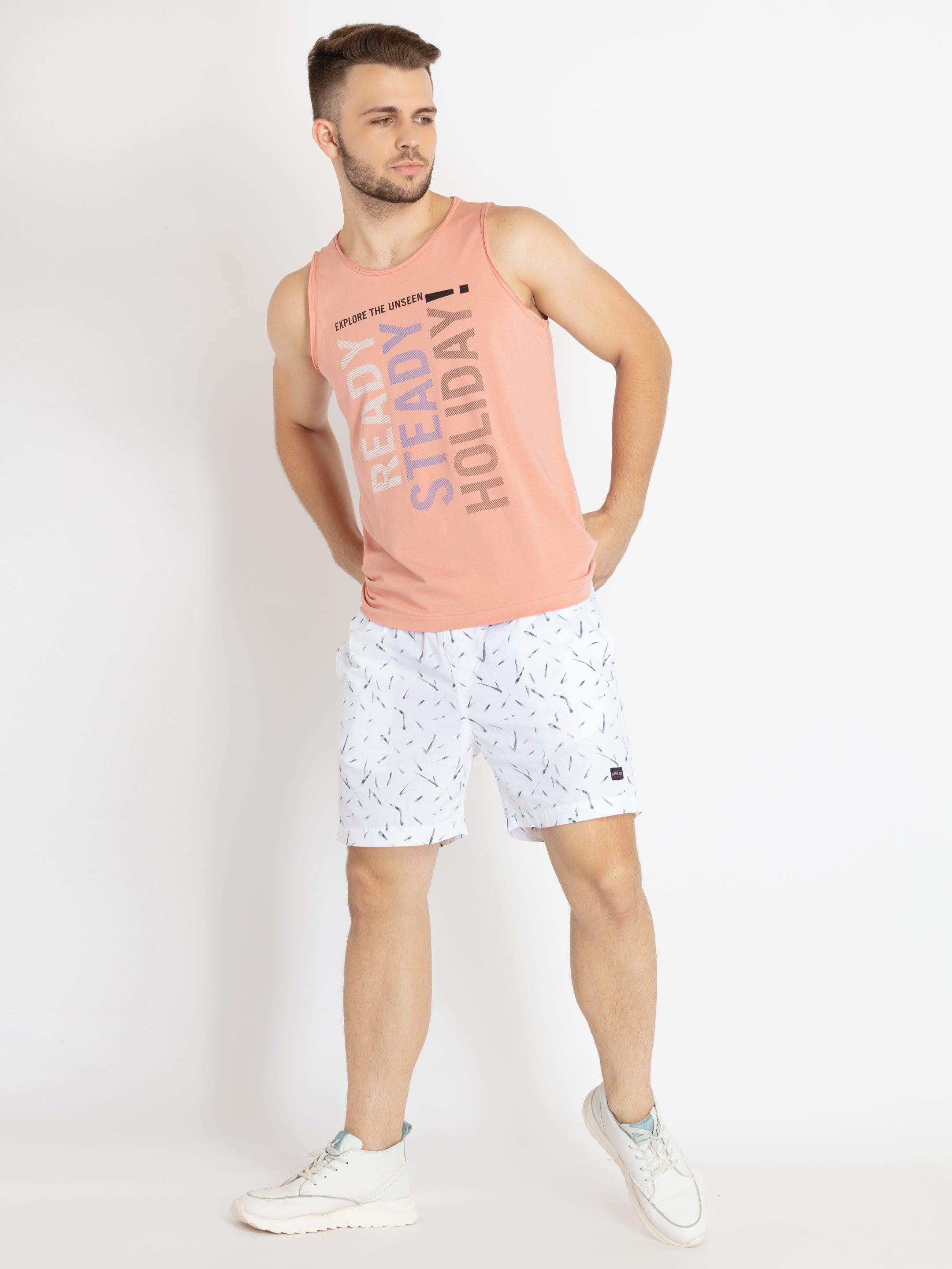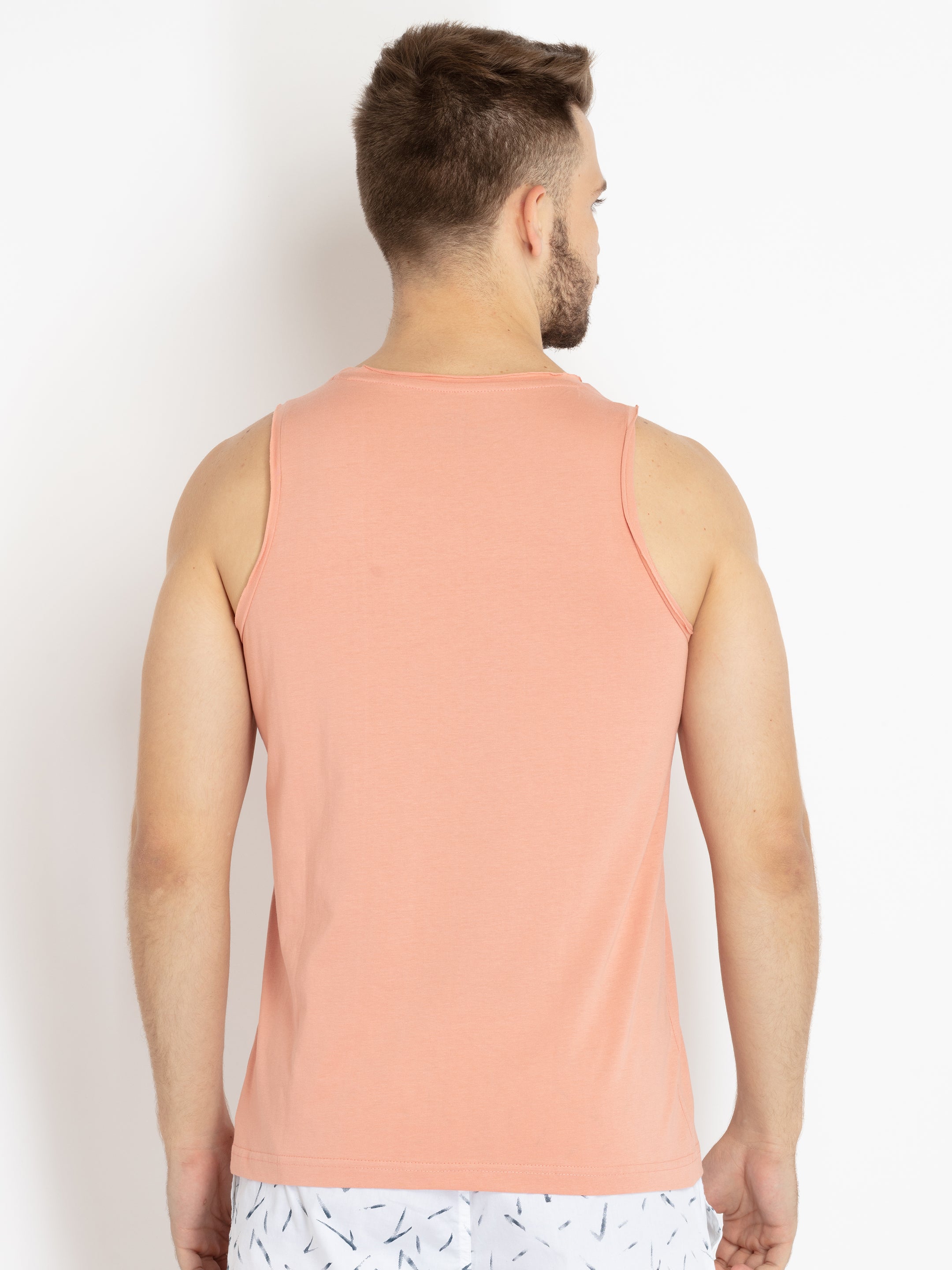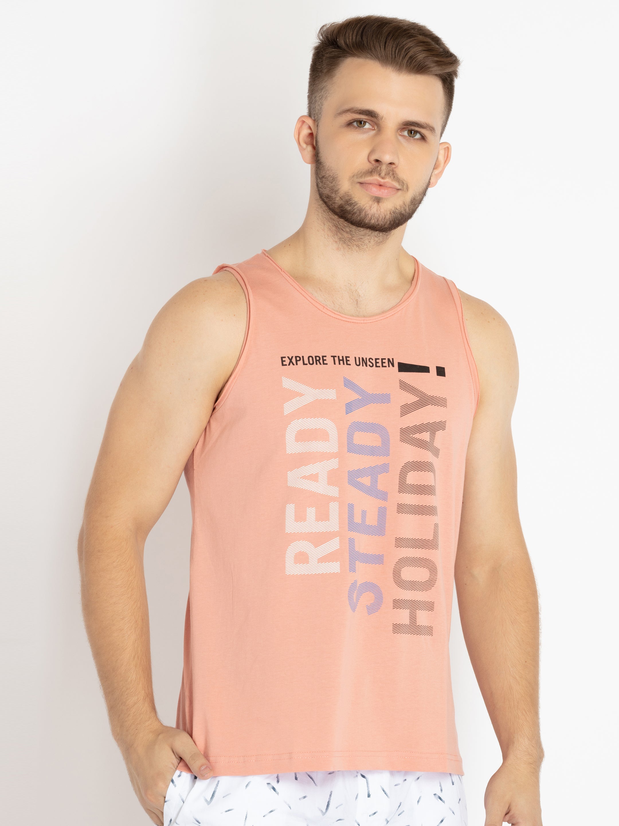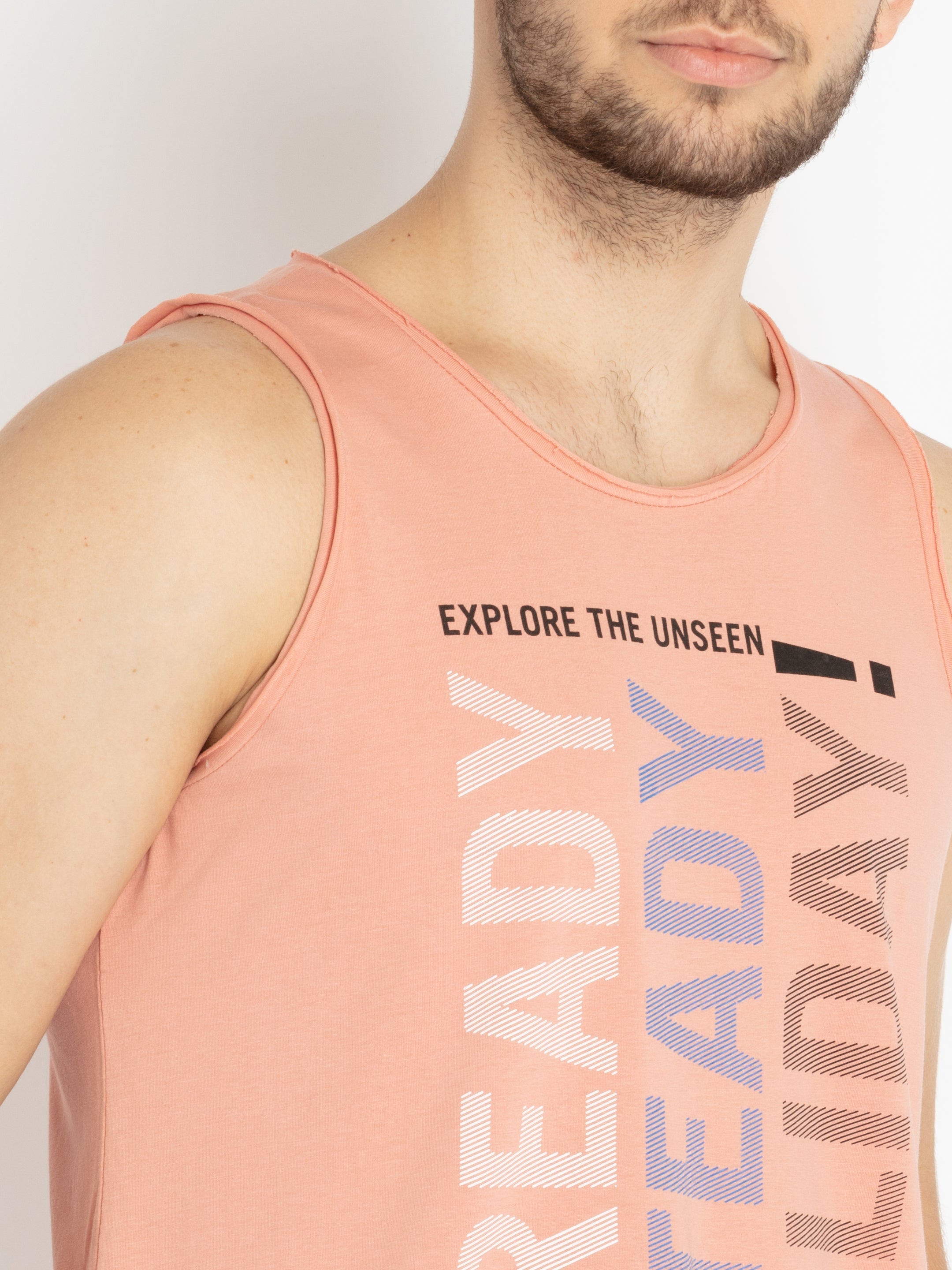 CORAL Round Neck T-Shirt has Front Print, Sleeveless, Regular Fit