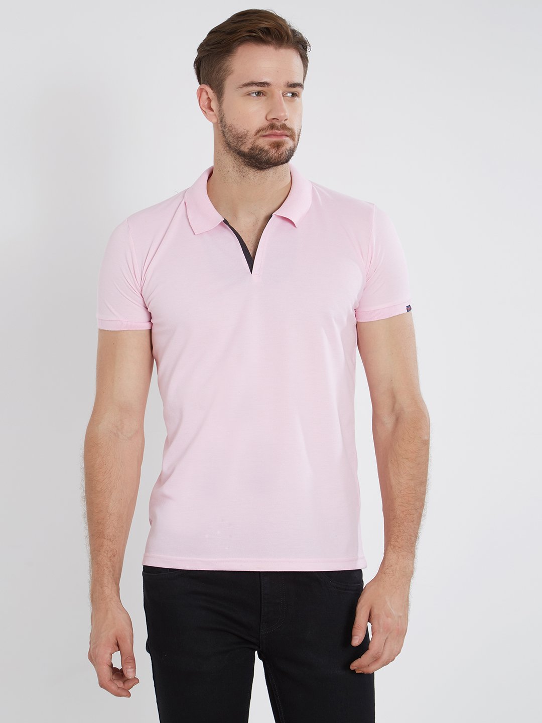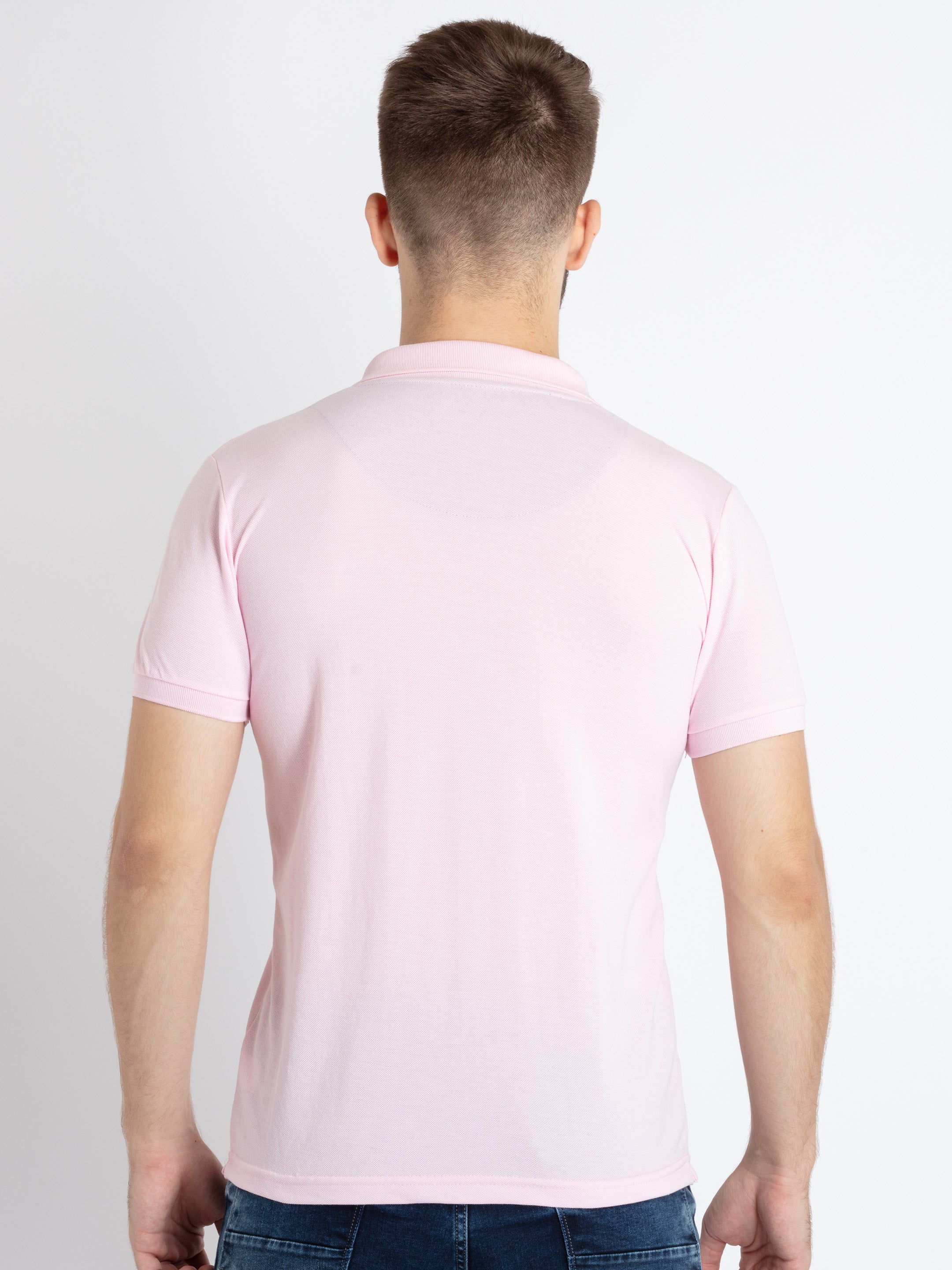 Fairy Tale Pink solid T-shirt, has a polo collar, short sleeves.